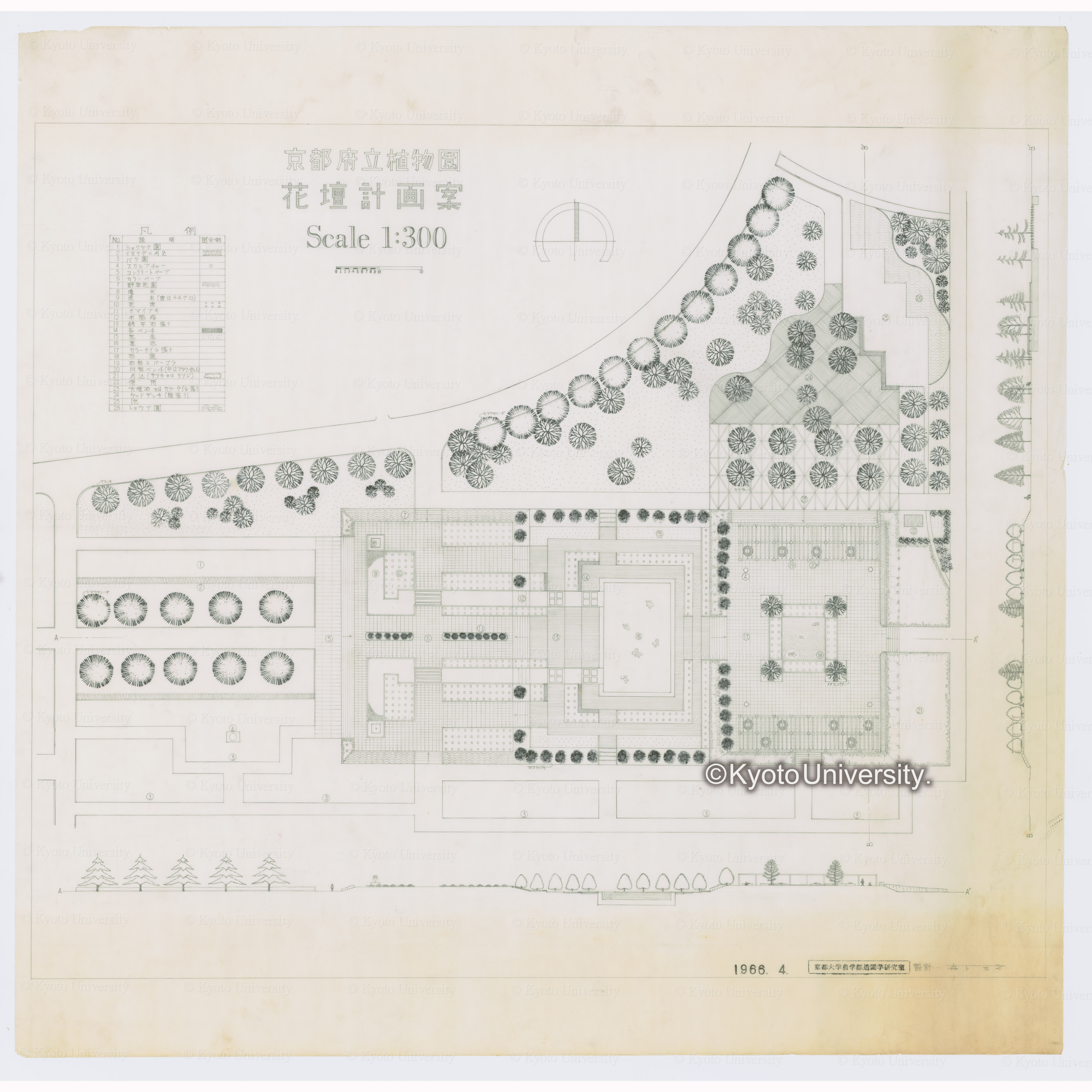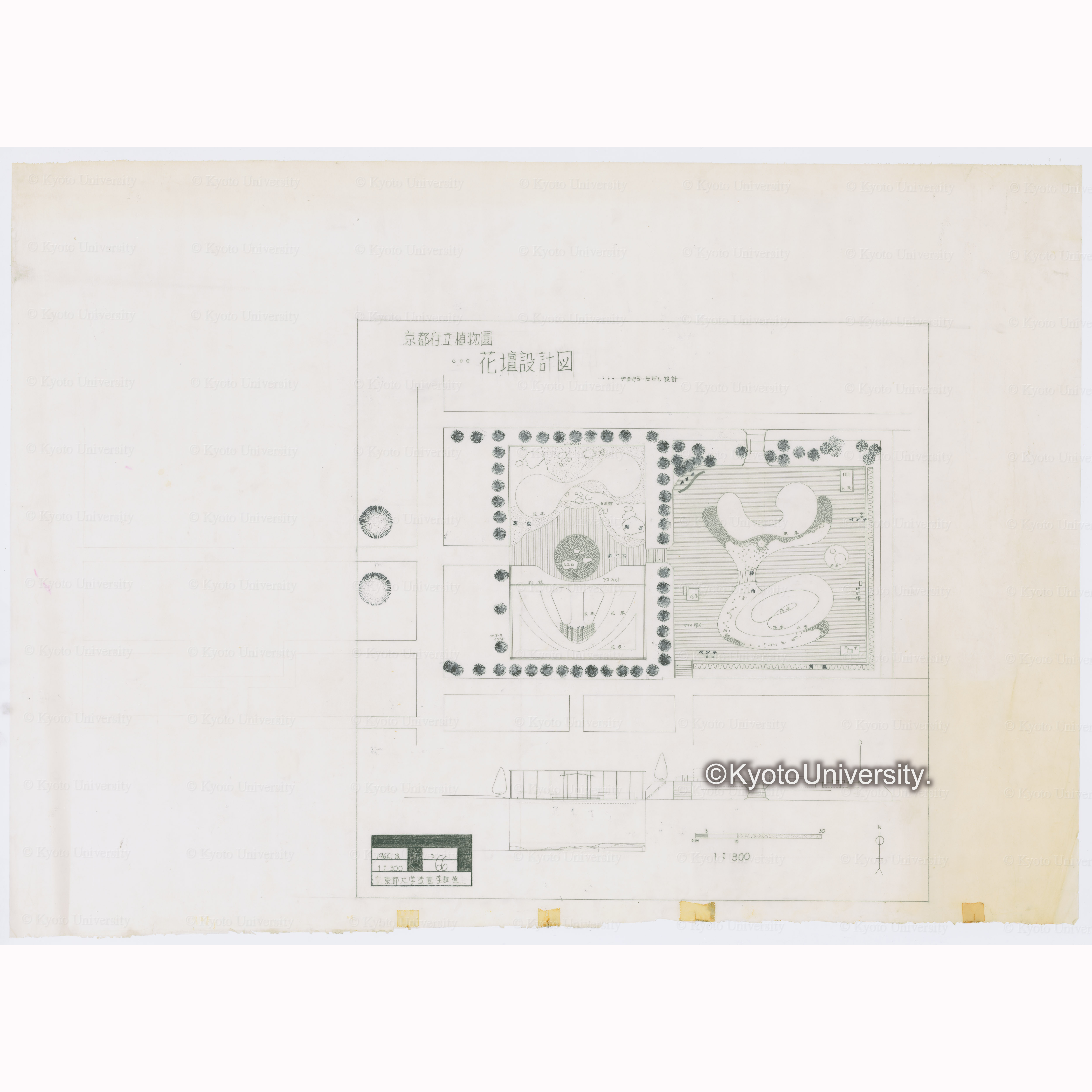 京都府立植物園花壇計画案 Scale1:300 1966.4.京都大学農学部造園学研究室 設計森下元之, 昭和41年4月.