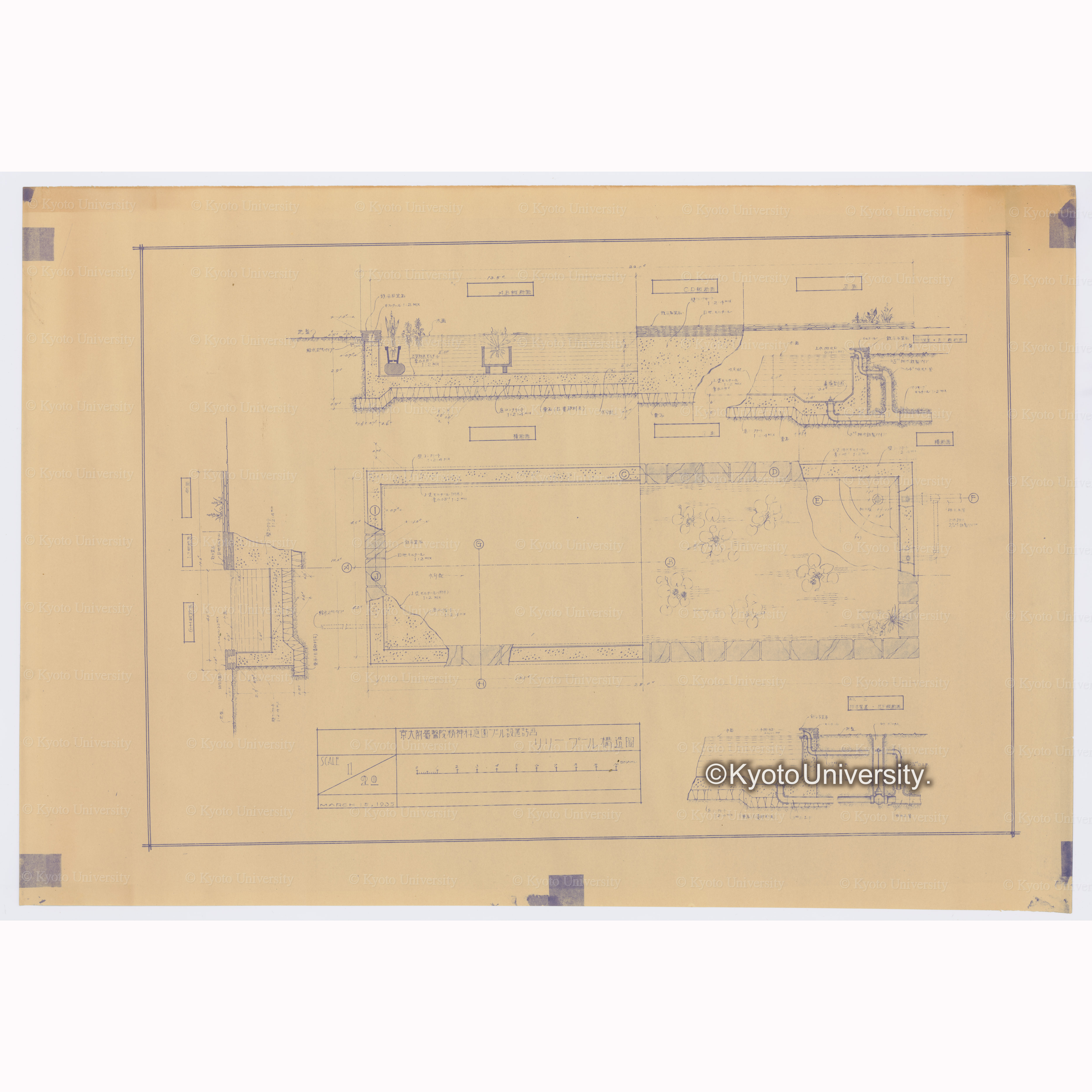 京大附属醫院精神科庭園プール設置計画 リリープール構造図 SCALE 1/20 MARCH 15, 1935, 昭和10年3月15日.