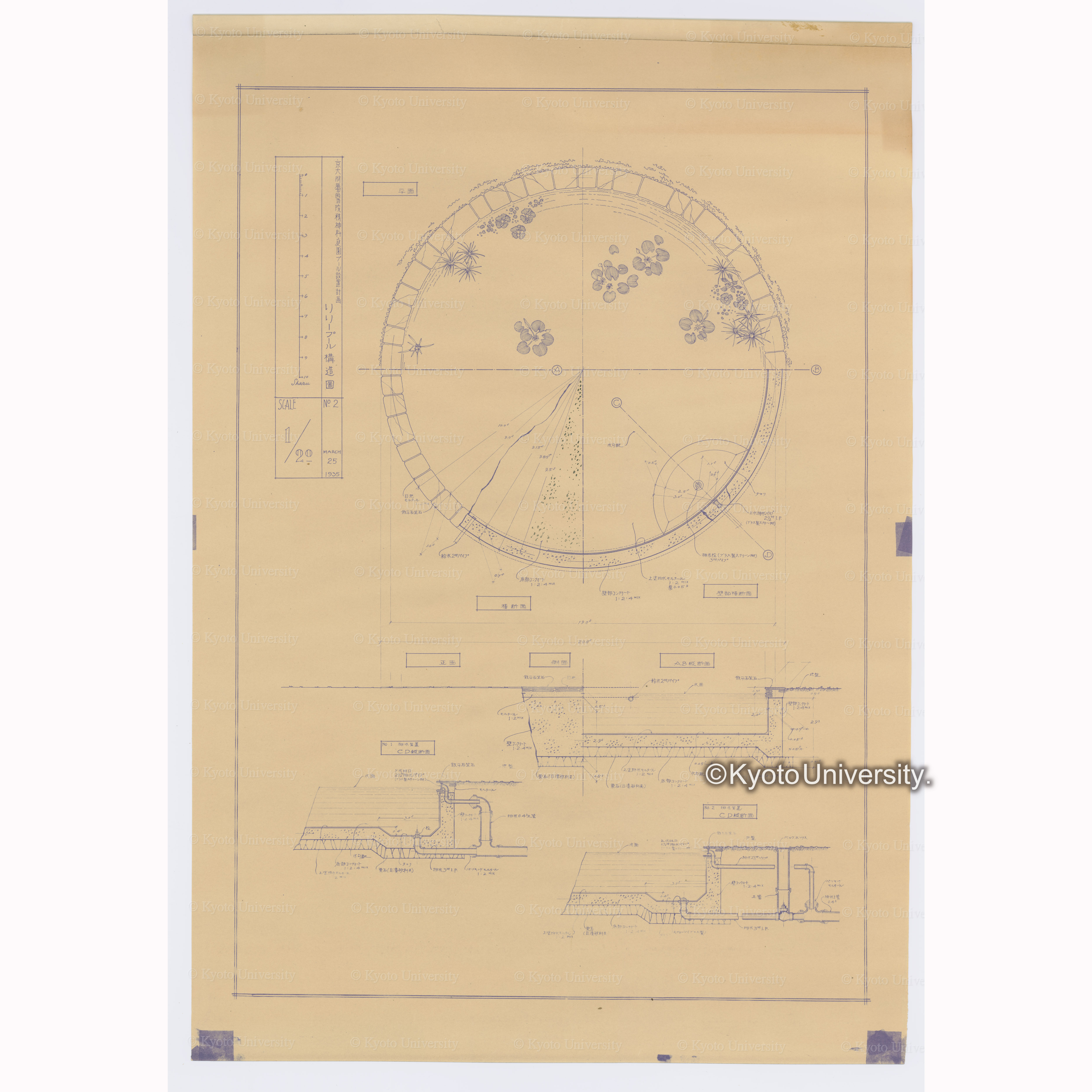 京大附属醫院精神科庭園プール設置計画 リリープール構造図 No.2 SCALE 1/20 MARCH 25 1935, 昭和10年3月15日.