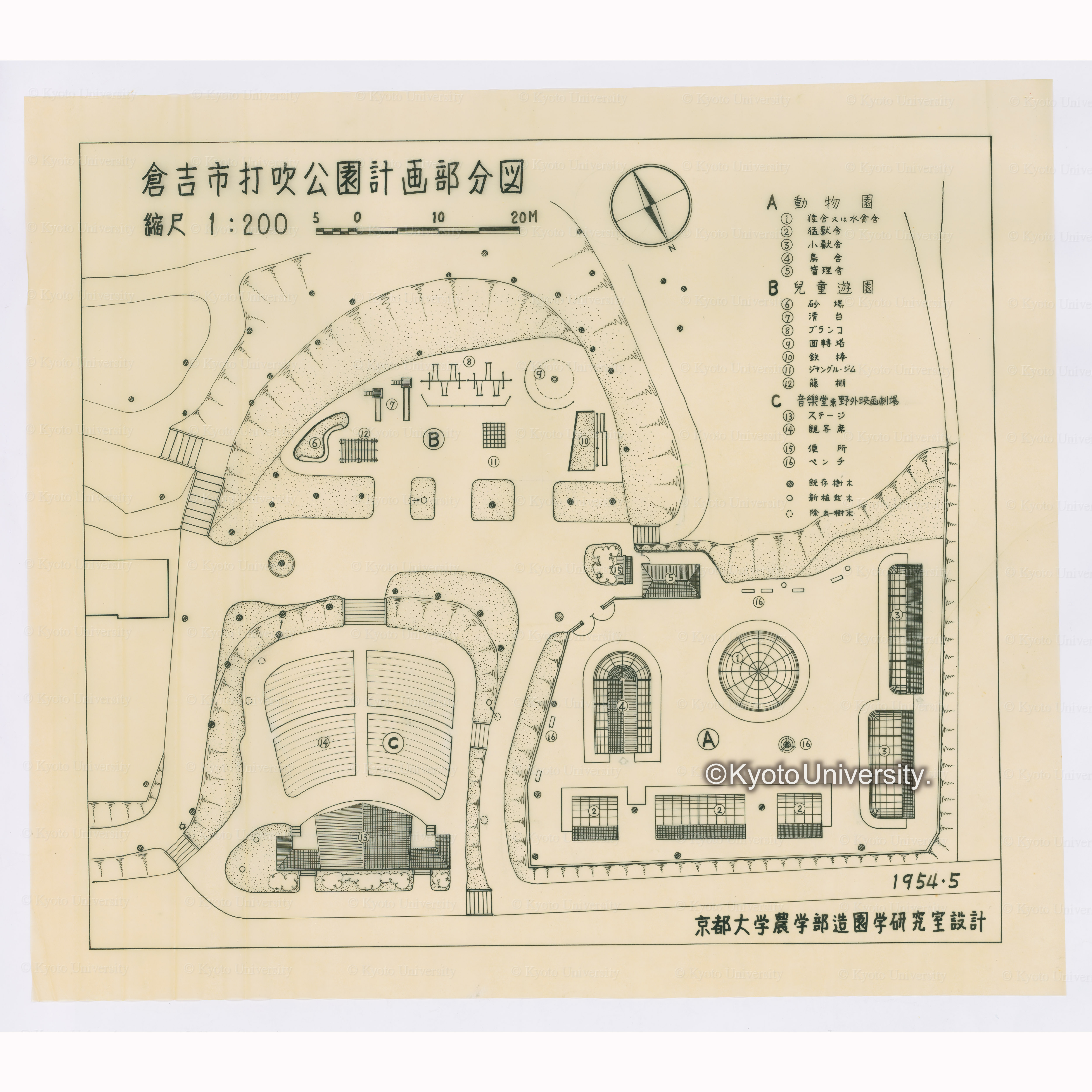倉吉市打吹公園計画部分図 縮尺1:200 1954・5 京都大学農学部造園学研究室設計 (1)