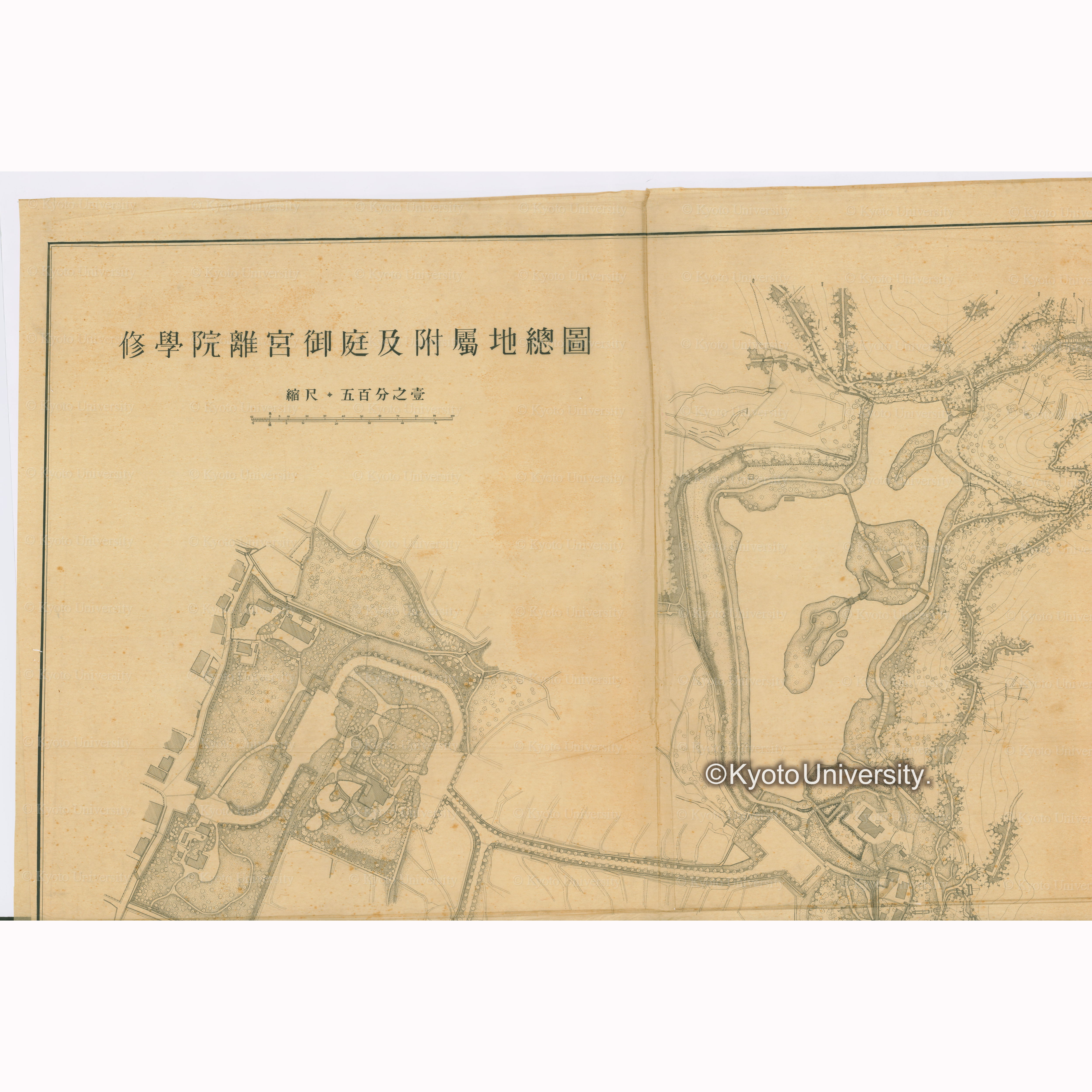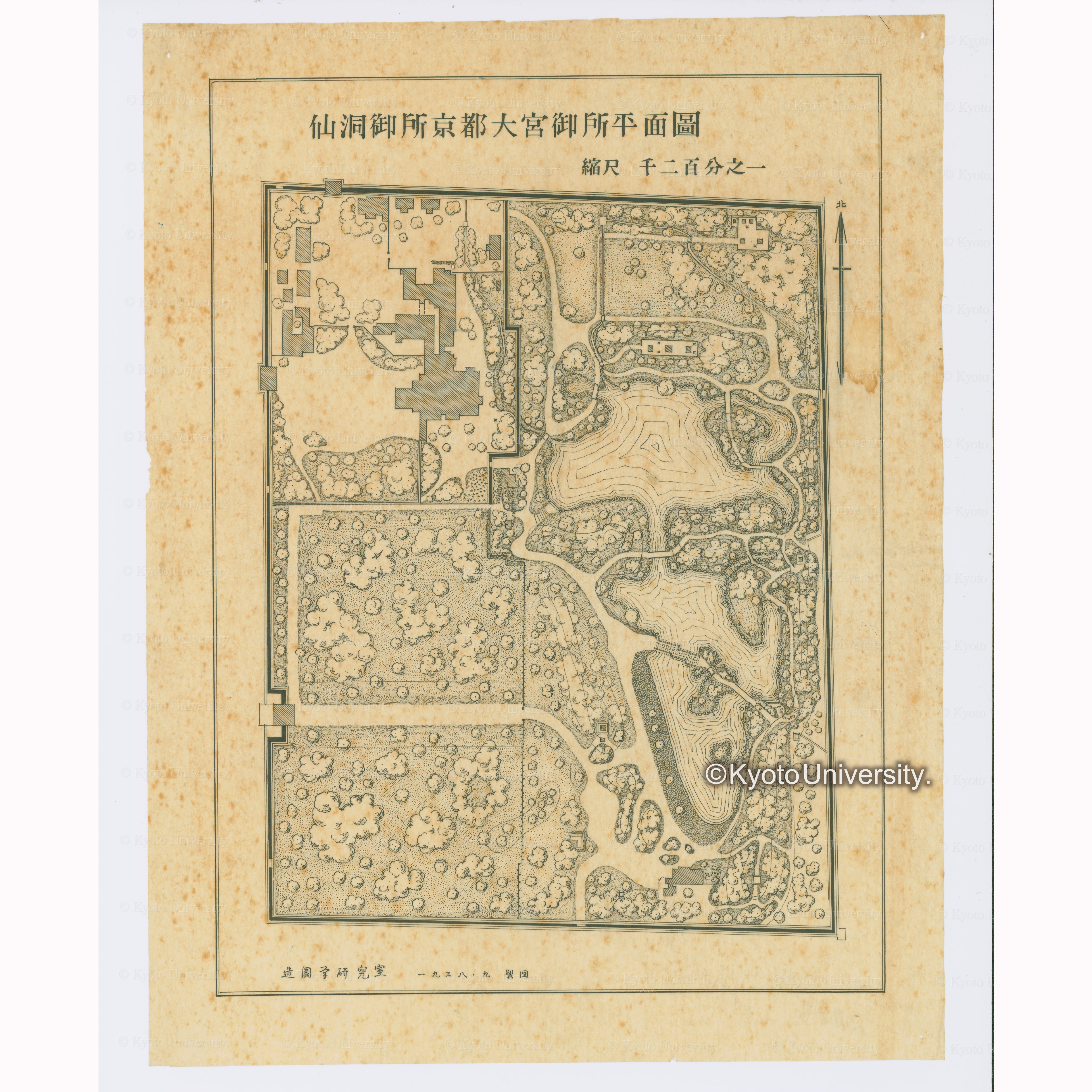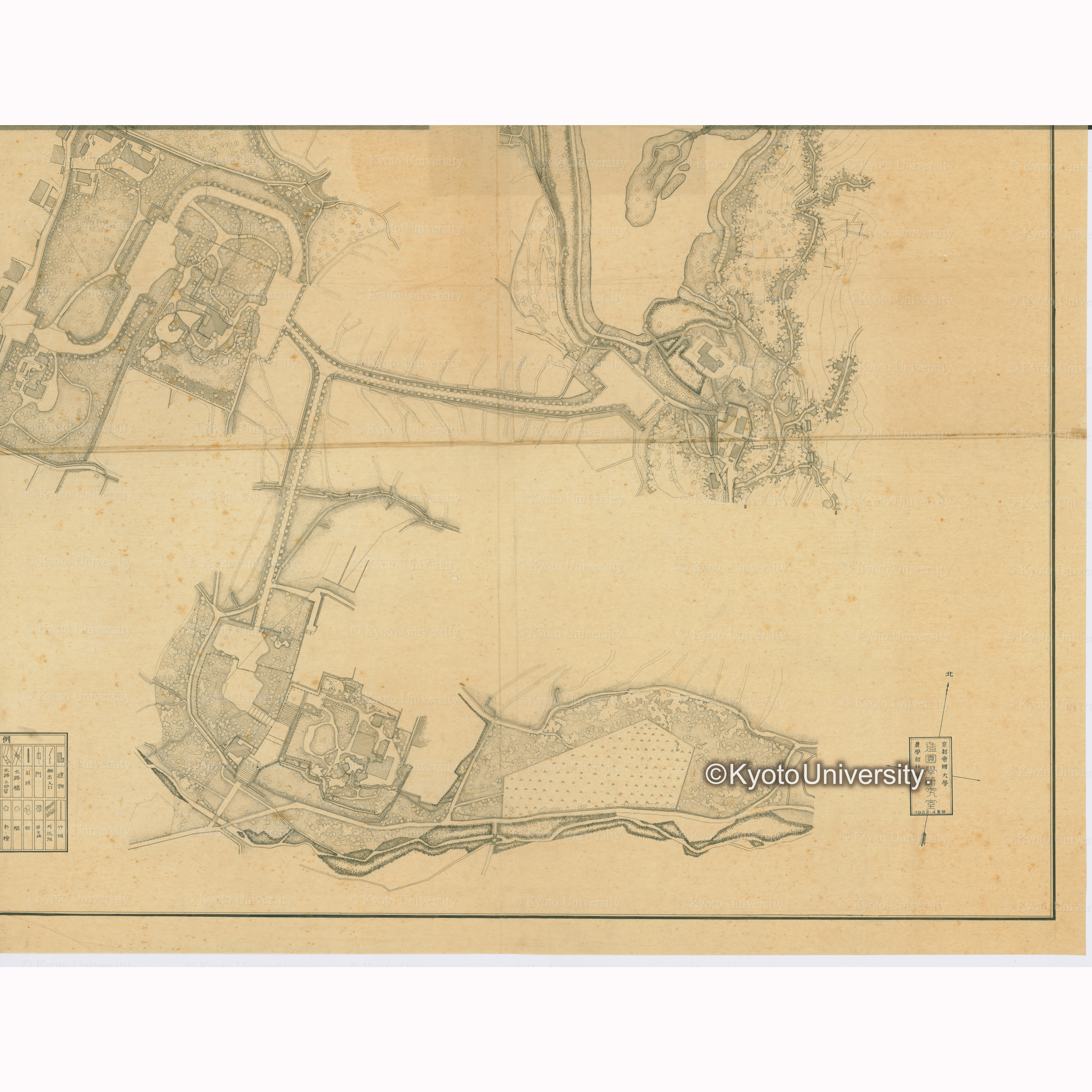 修学院離宮御庭及附属地総図 縮尺・五百分の一 京都帝国大学 造園学研究室 農学部林学科 1938-4製図, 昭和13年4月