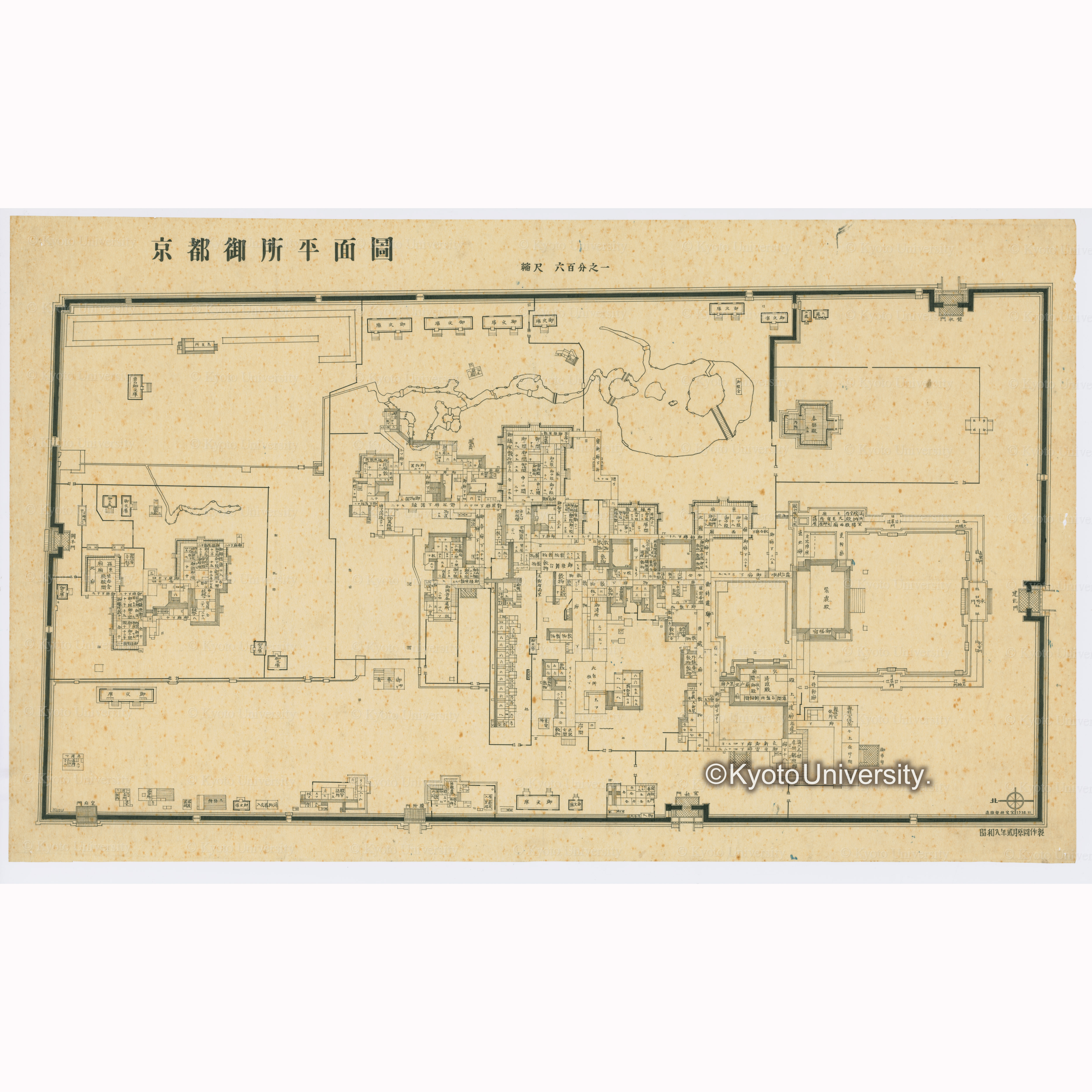 京都御所平面図 縮尺六百分之一 昭和八年二月元図作成 造園学研究室1938.11., 昭和8年(1933)2月~昭和13年(1938)11月.