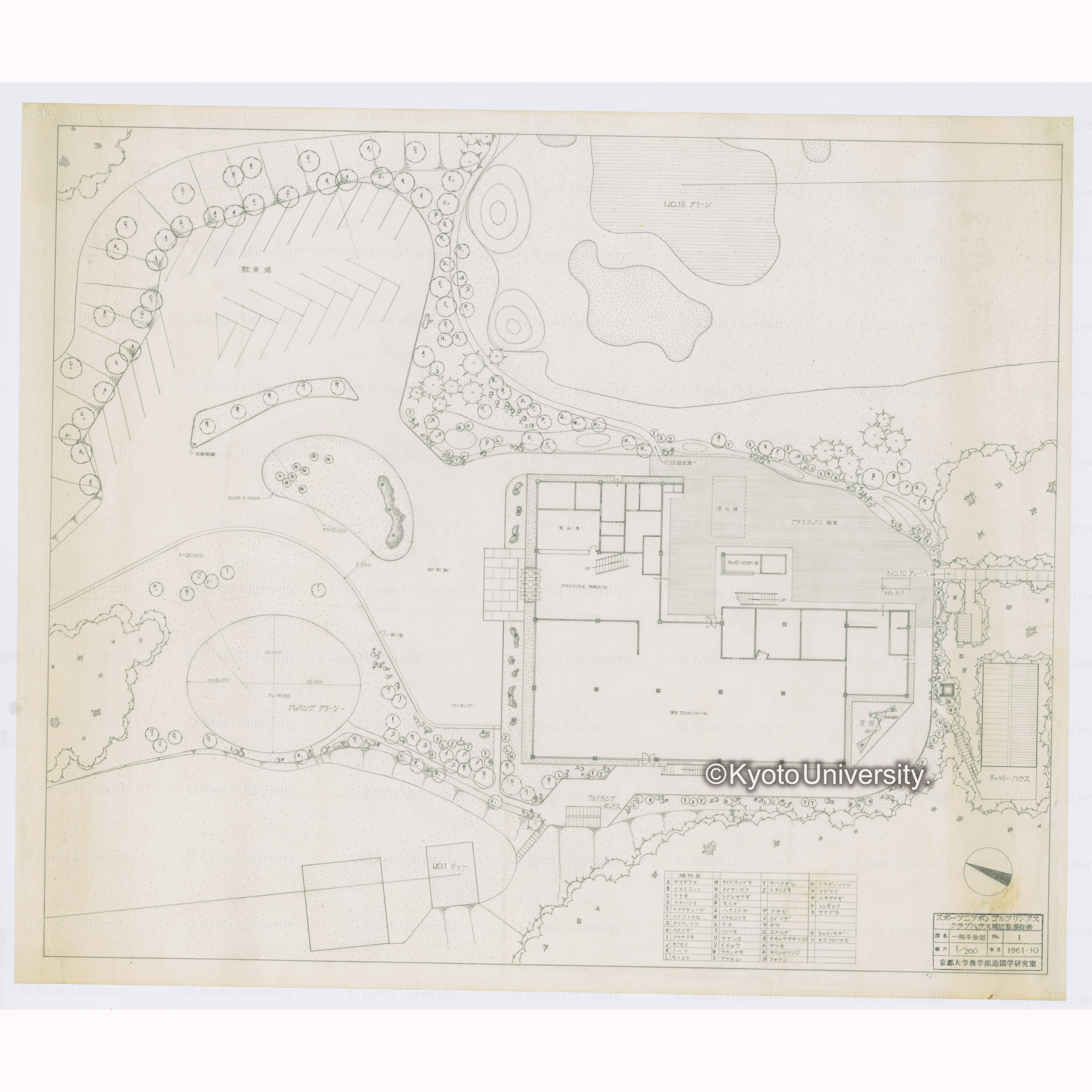 スポーツニッポンゴルフリンクス クラブハウス周辺整備計画 一般平面図 No.1 1/200 1961・10 京都大学農学部造園学研究室, 昭和36年10月.