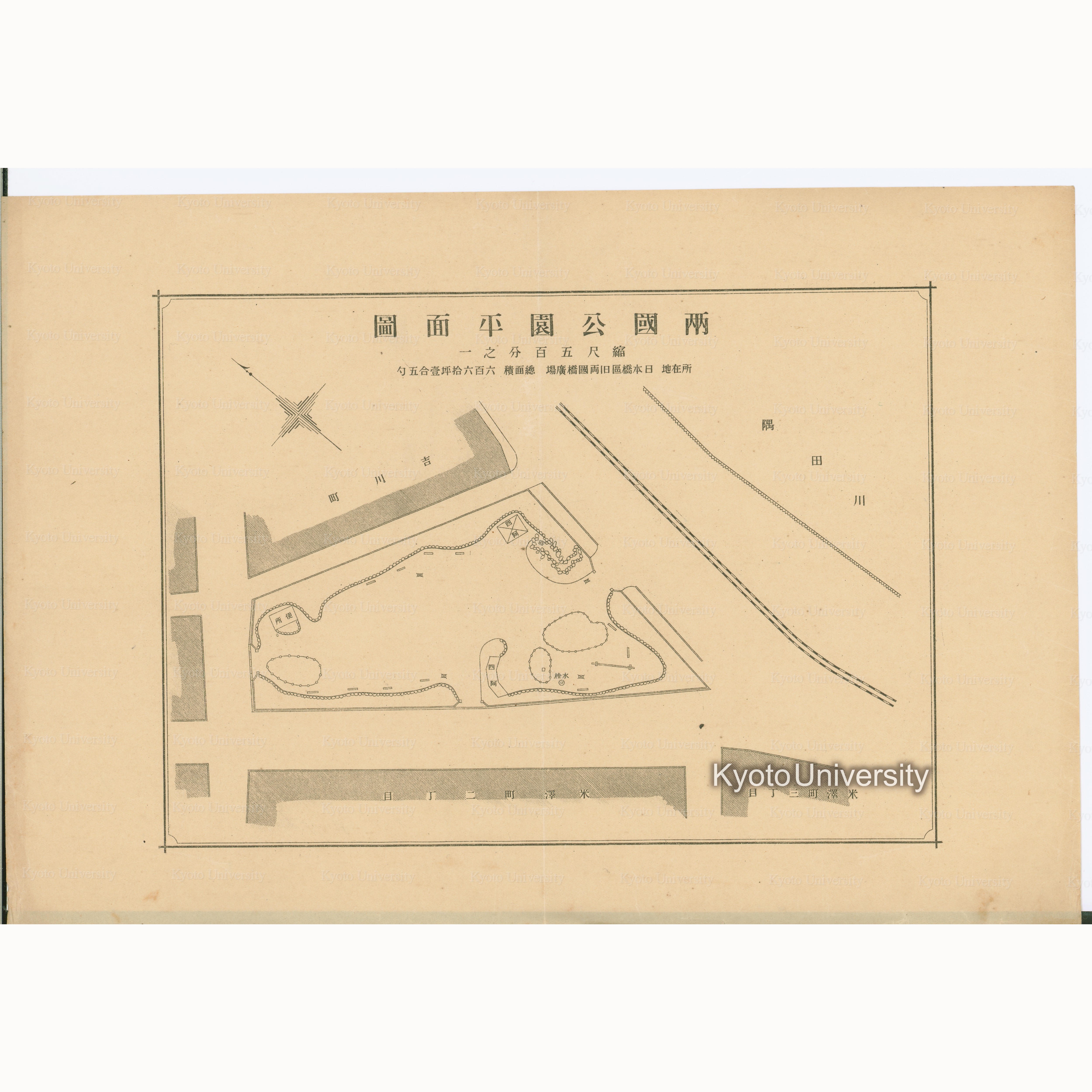 両国公園平面図 縮尺五百分之一 所在地日本橋区旧両国橋広場 総面積六百六十坪一合五勺 (1)