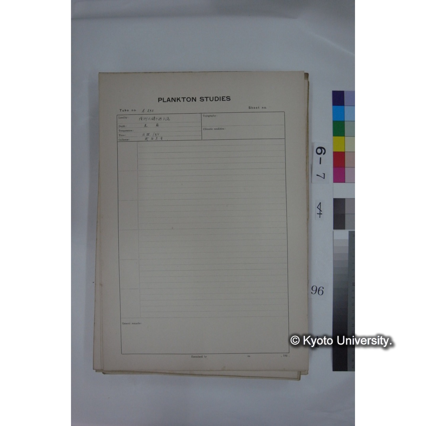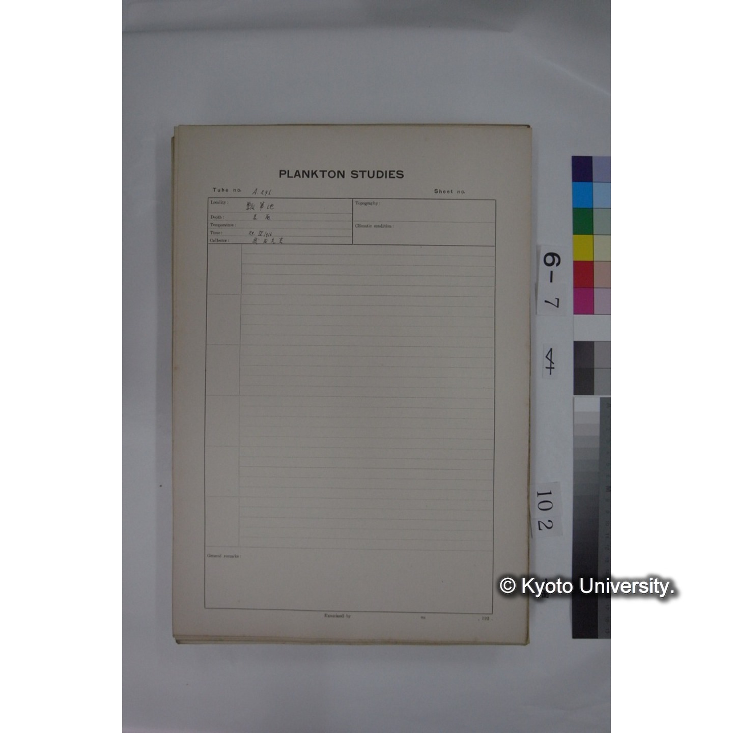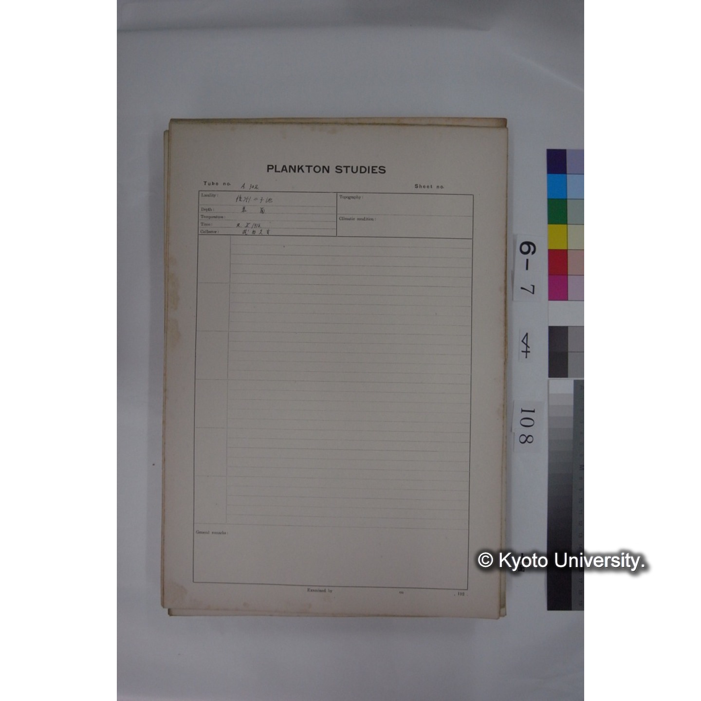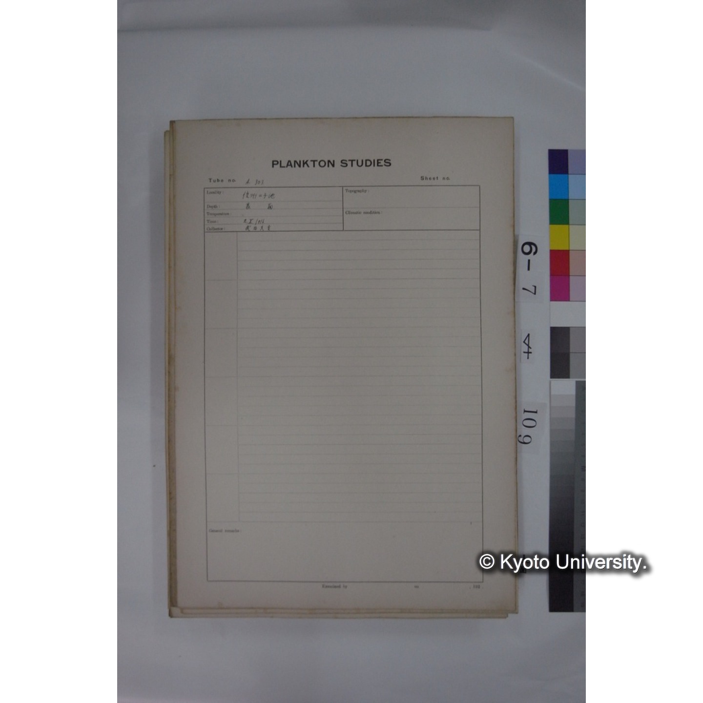 プランクトン標本調査カード (国内各地,採取データのみ) (109)