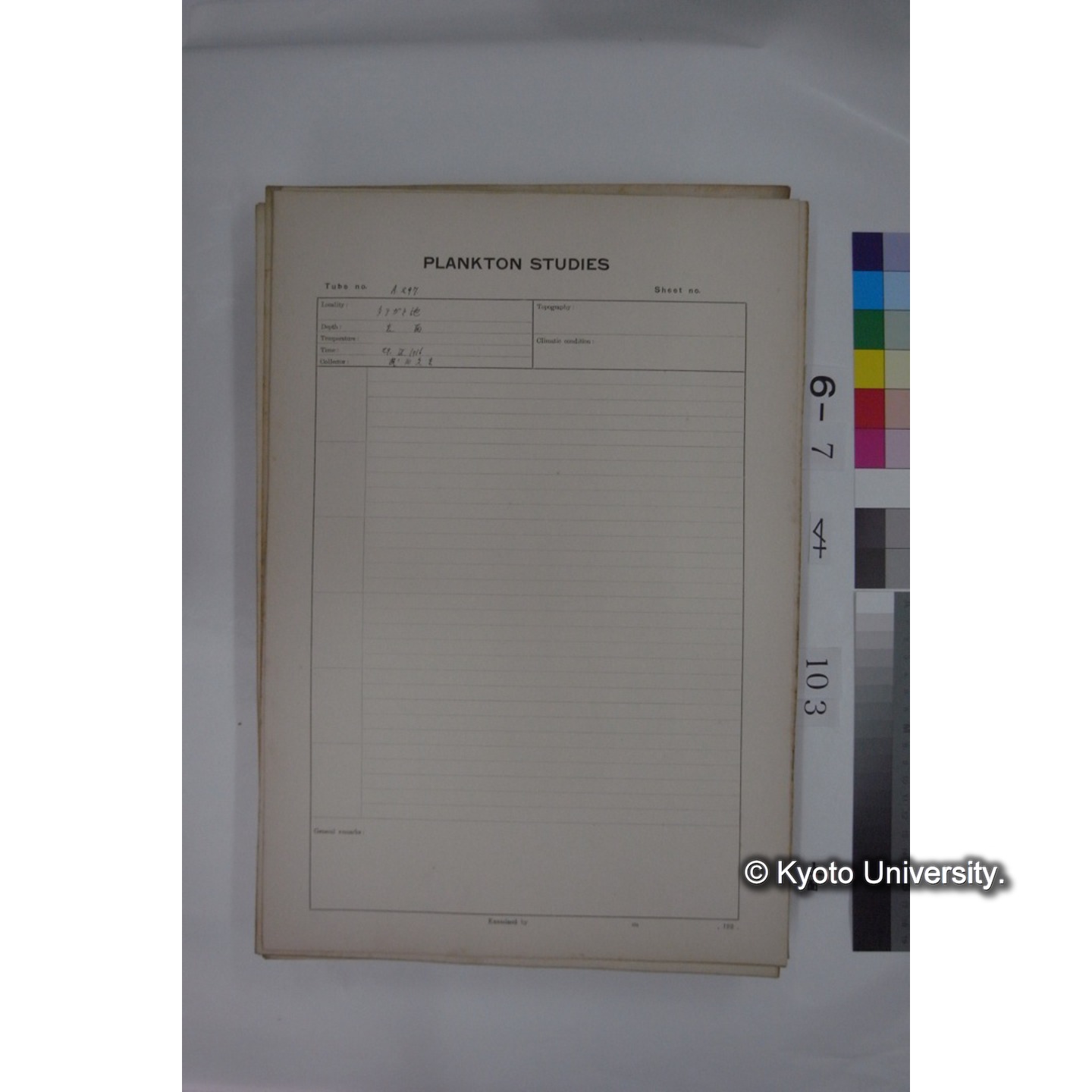 プランクトン標本調査カード (国内各地,採取データのみ) (103)