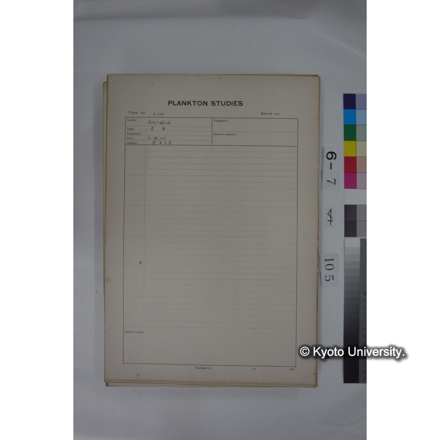プランクトン標本調査カード (国内各地,採取データのみ) (105)