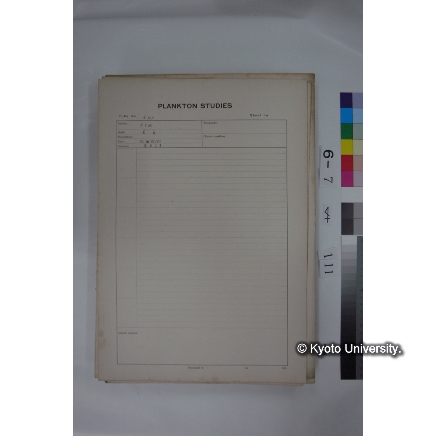 プランクトン標本調査カード (国内各地,採取データのみ) (111)