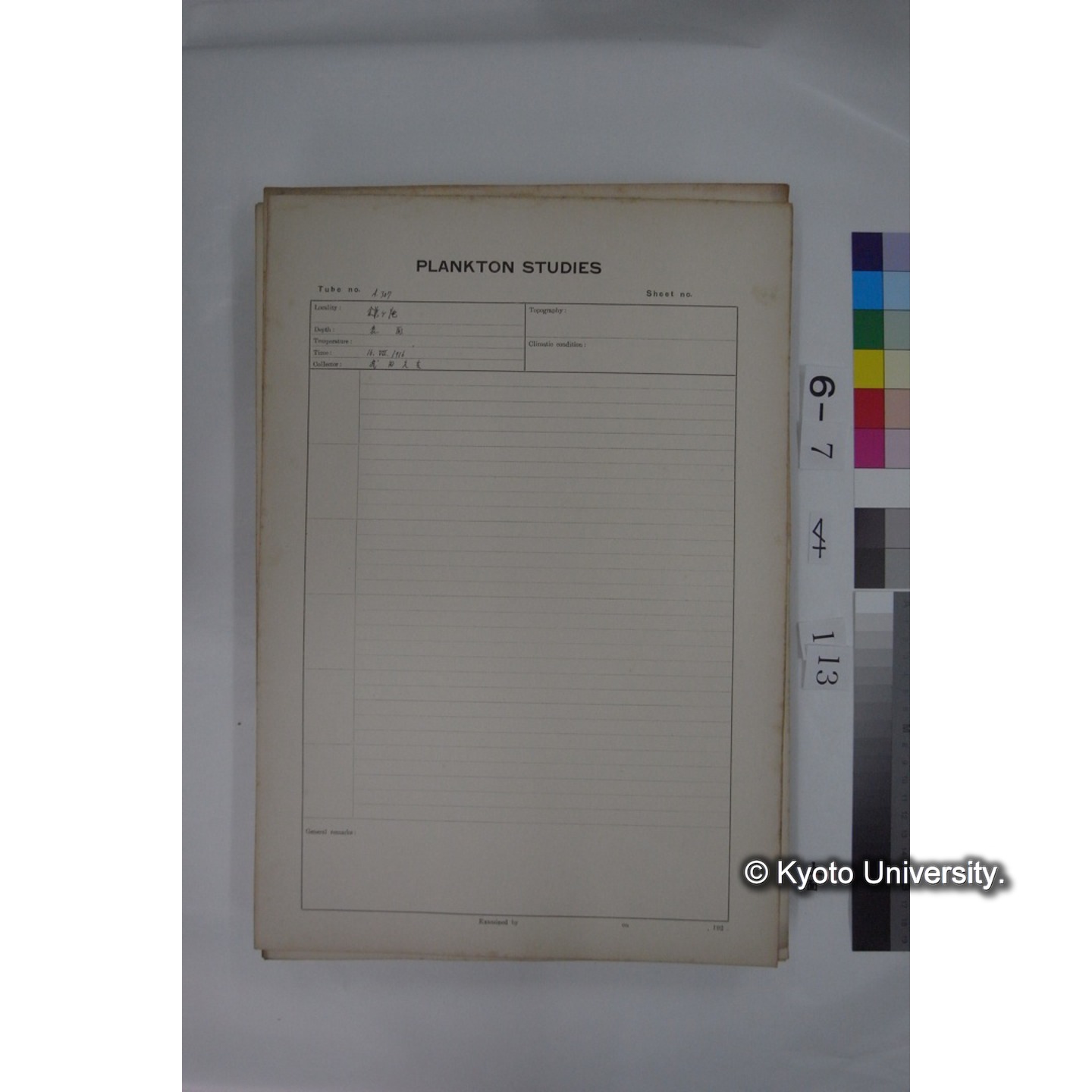 プランクトン標本調査カード (国内各地,採取データのみ) (113)