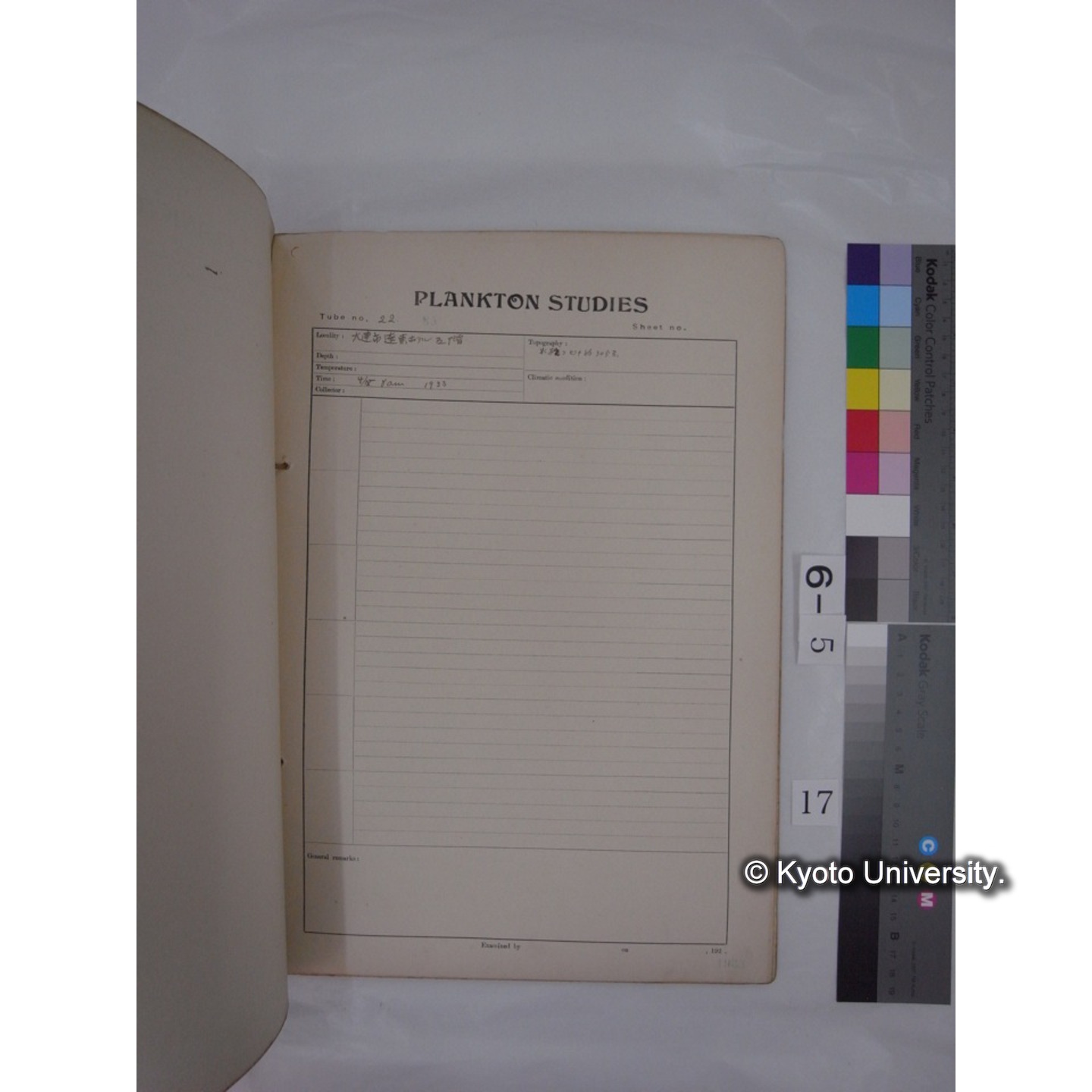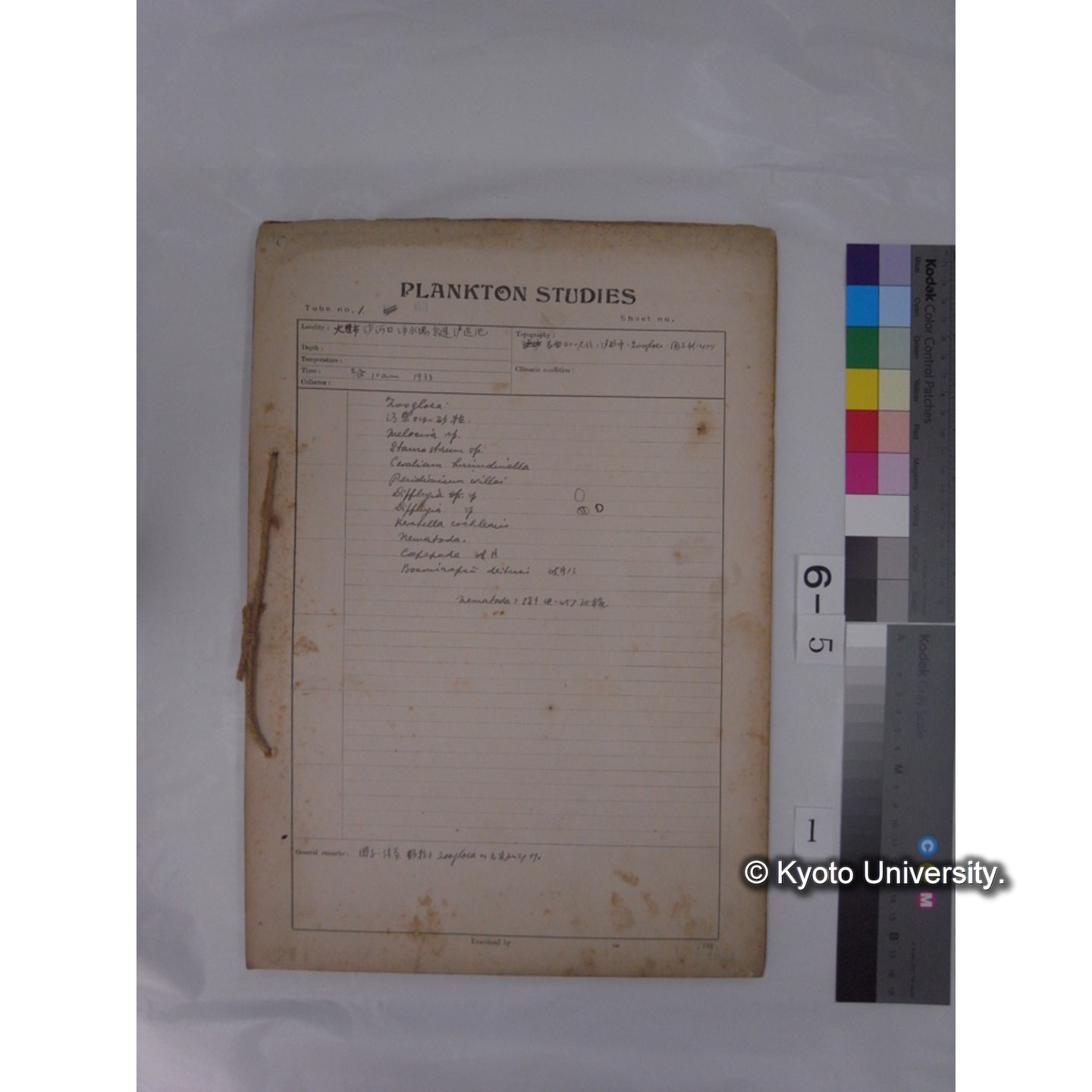 プランクトン標本調査カード (昭和8年,満州調査時採集標本) (1)