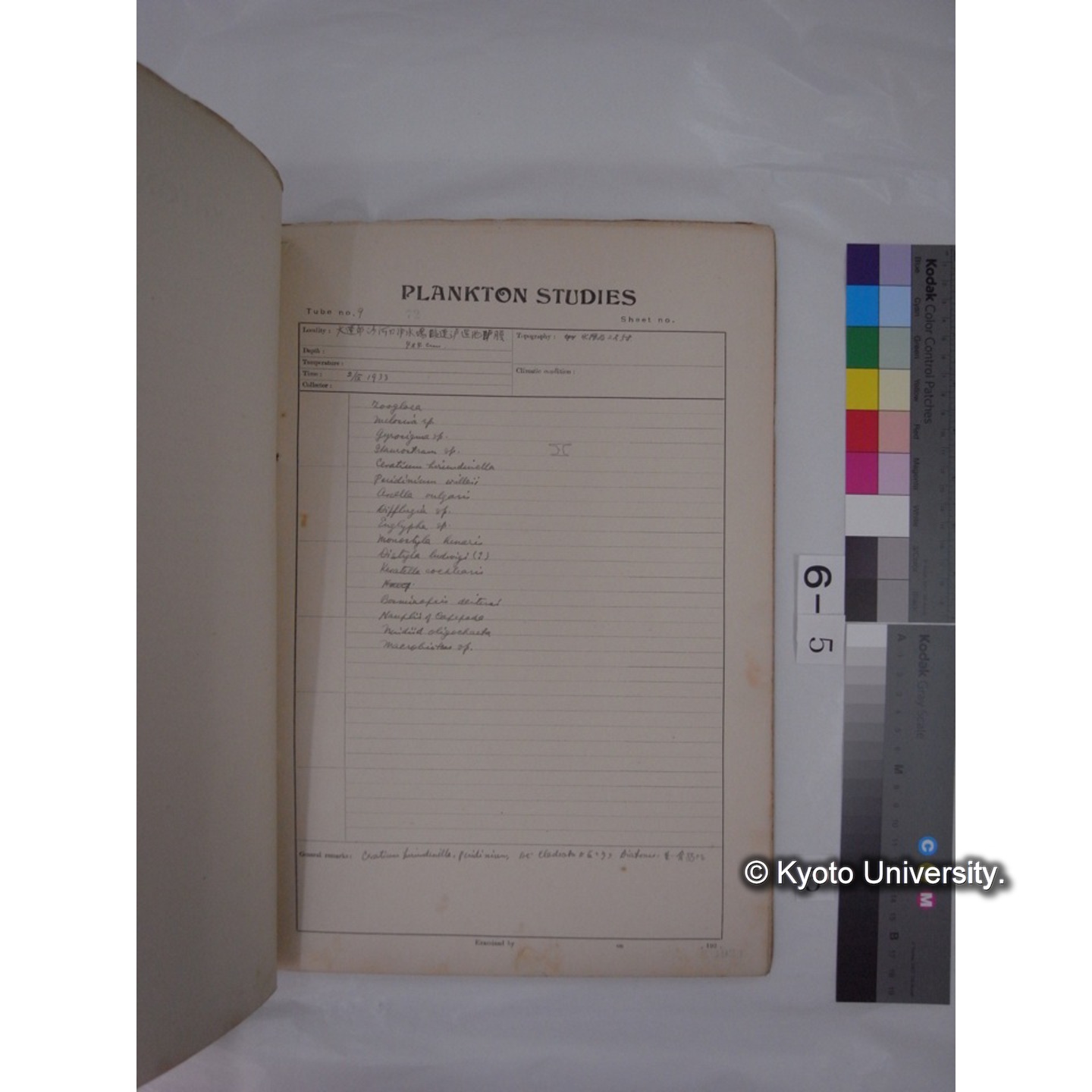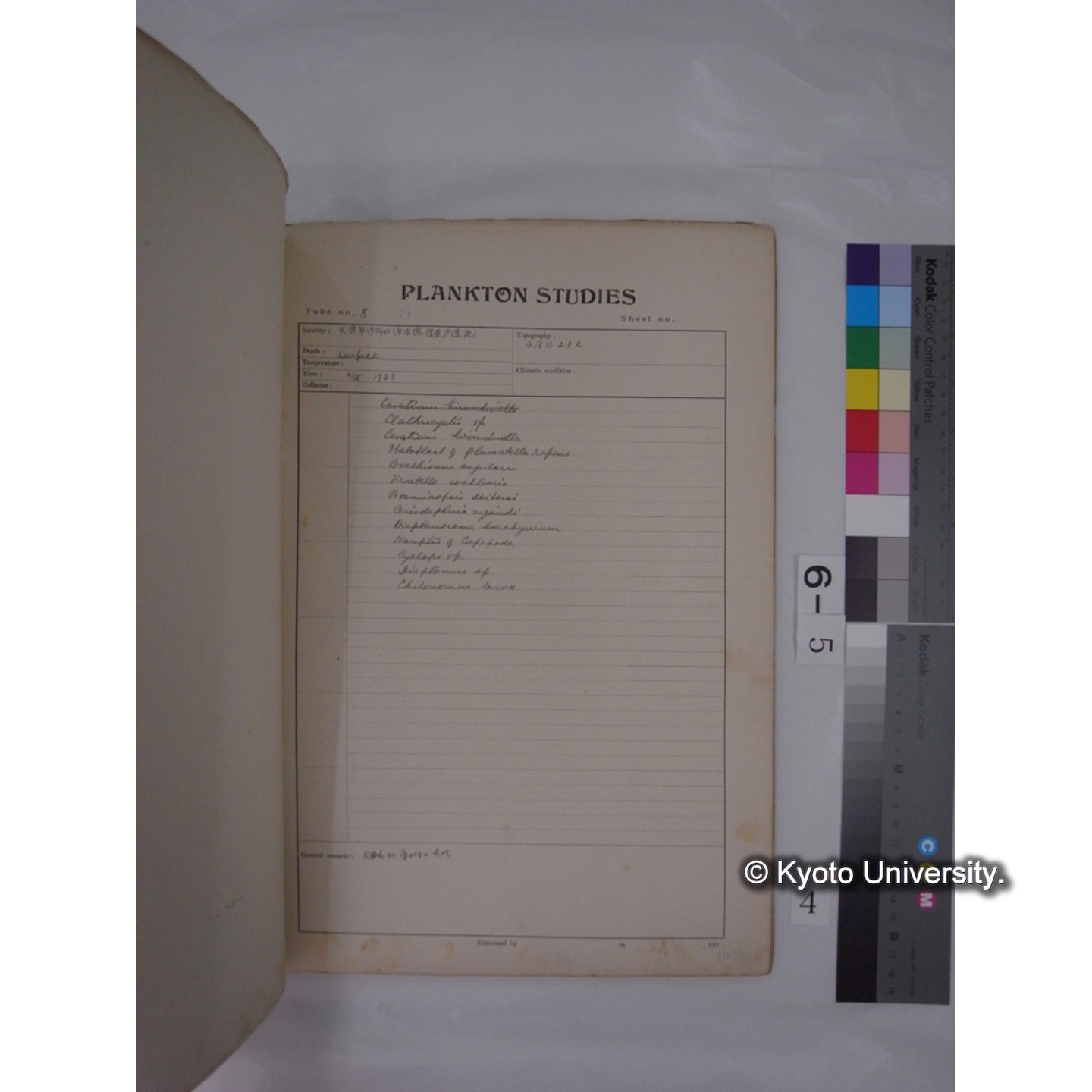 プランクトン標本調査カード (昭和8年,満州調査時採集標本) (5)