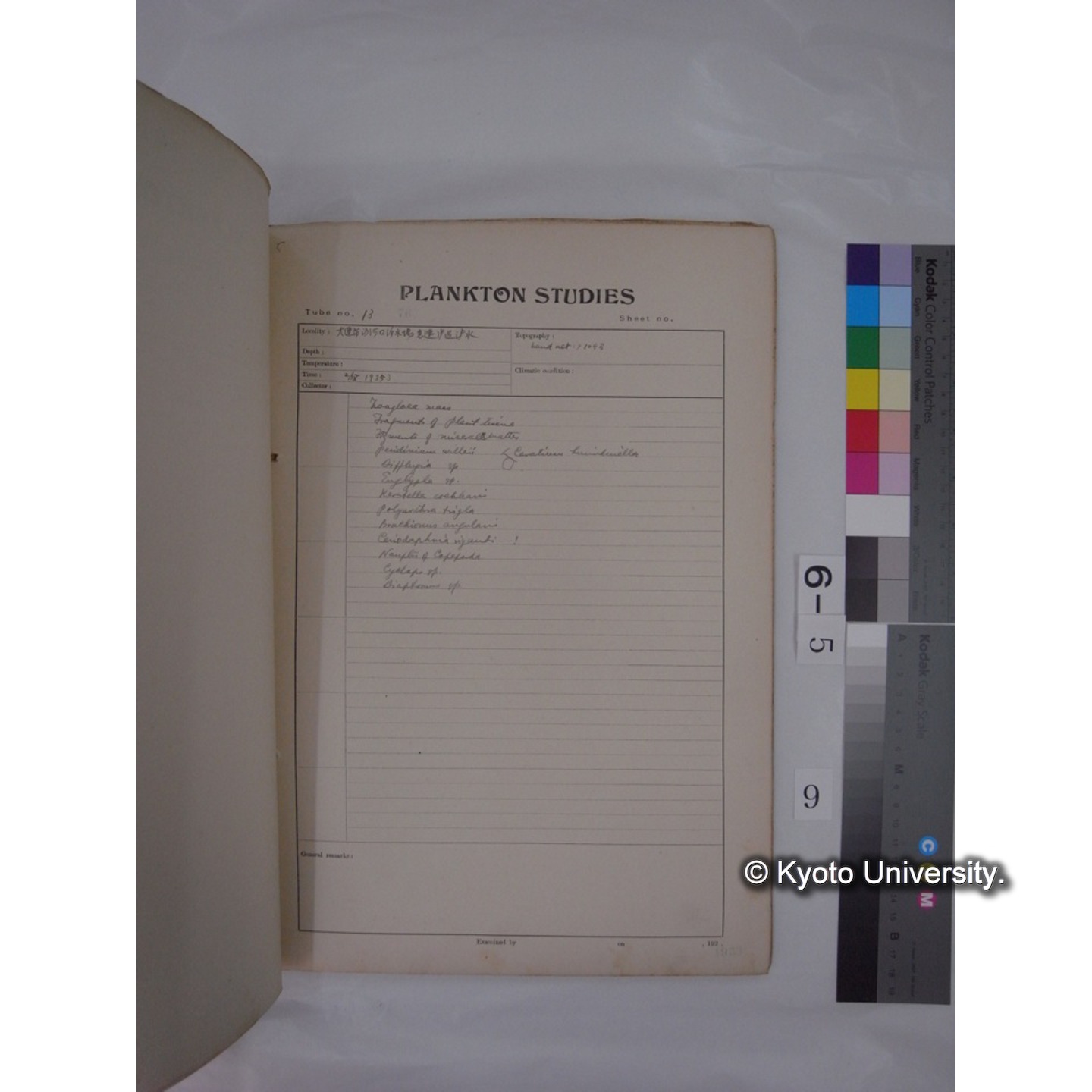 プランクトン標本調査カード (昭和8年,満州調査時採集標本) (9)