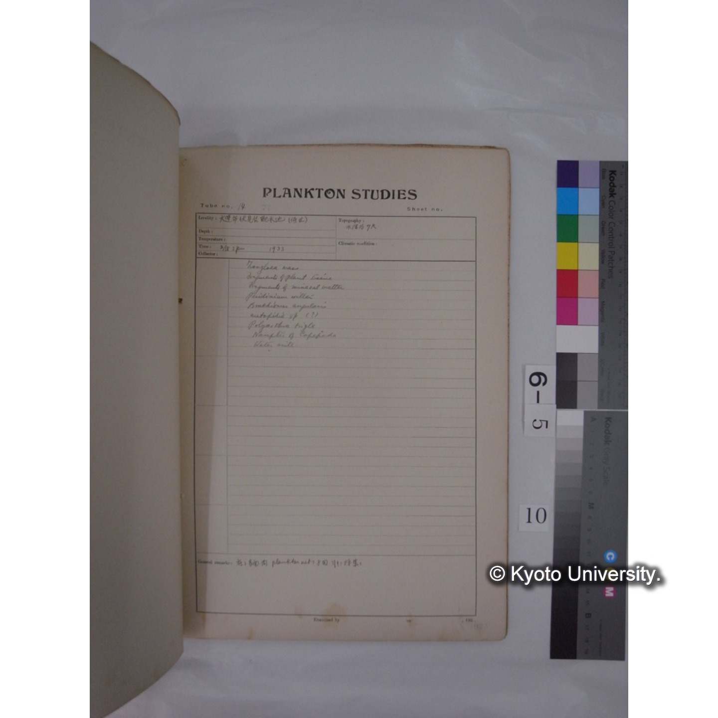 プランクトン標本調査カード (昭和8年,満州調査時採集標本) (10)