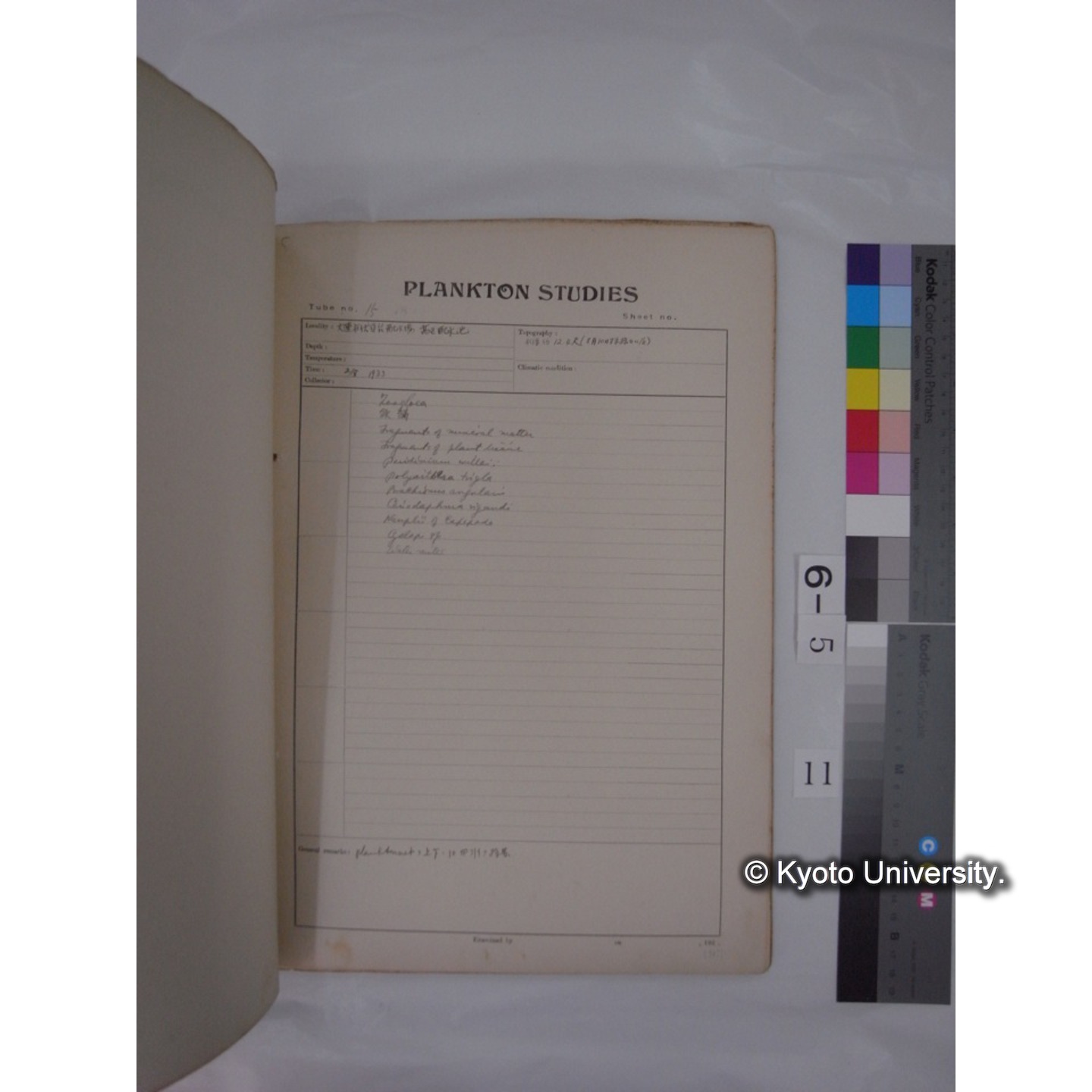 プランクトン標本調査カード (昭和8年,満州調査時採集標本) (11)