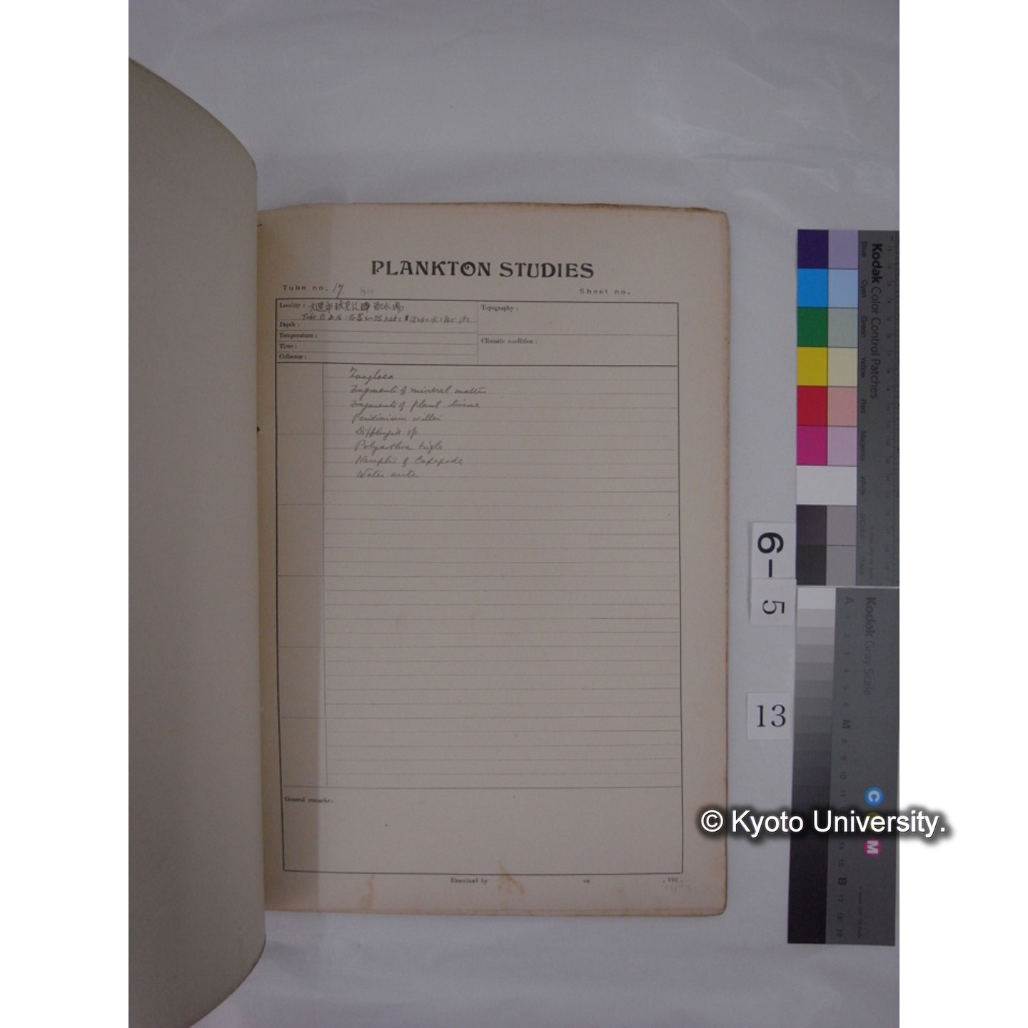 プランクトン標本調査カード (昭和8年,満州調査時採集標本) (13)