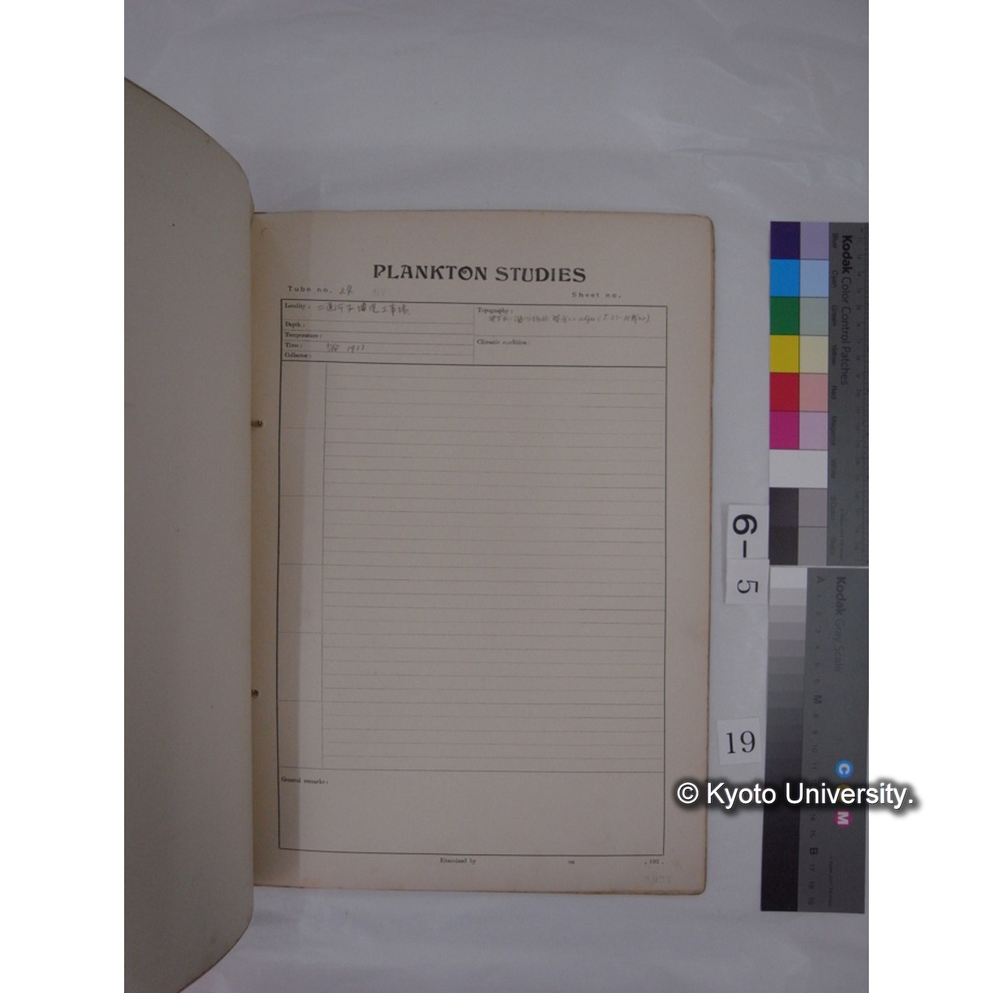 プランクトン標本調査カード (昭和8年,満州調査時採集標本) (19)