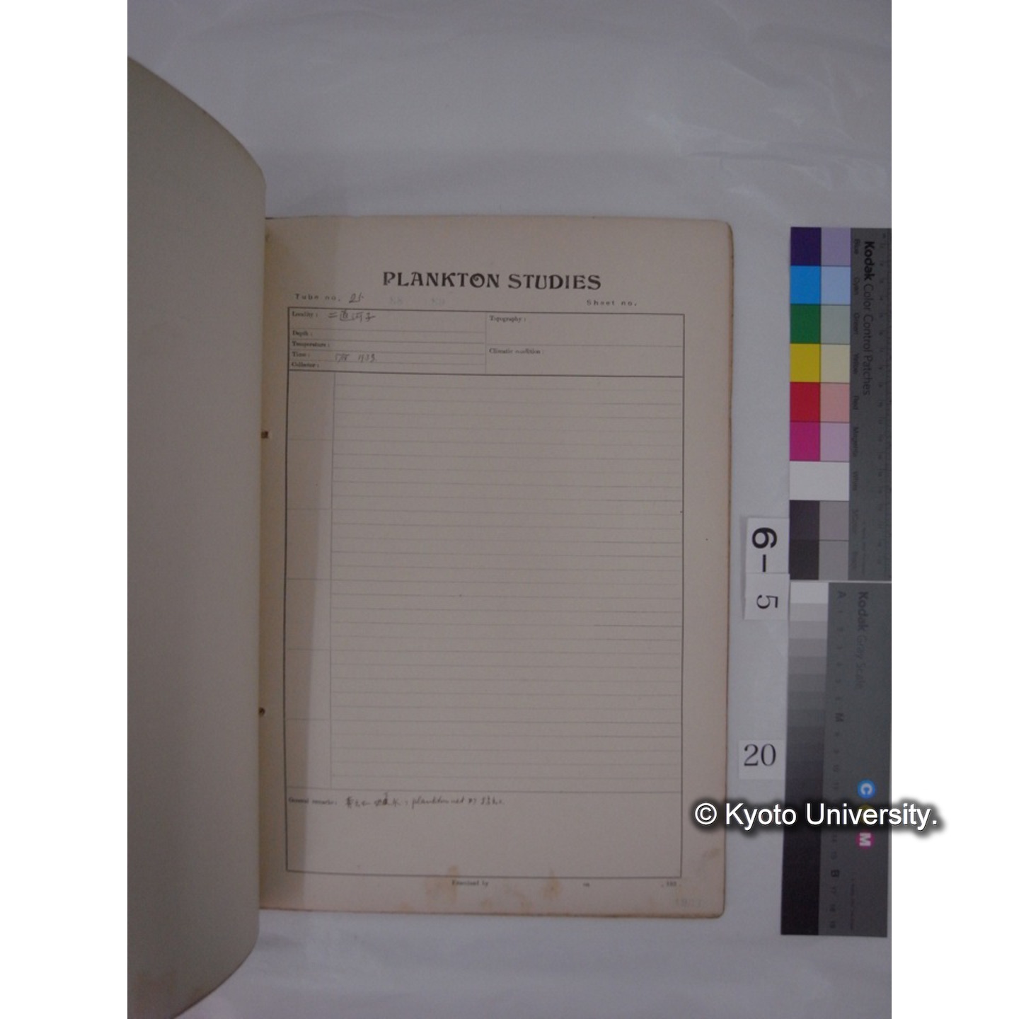 プランクトン標本調査カード (昭和8年,満州調査時採集標本) (20)