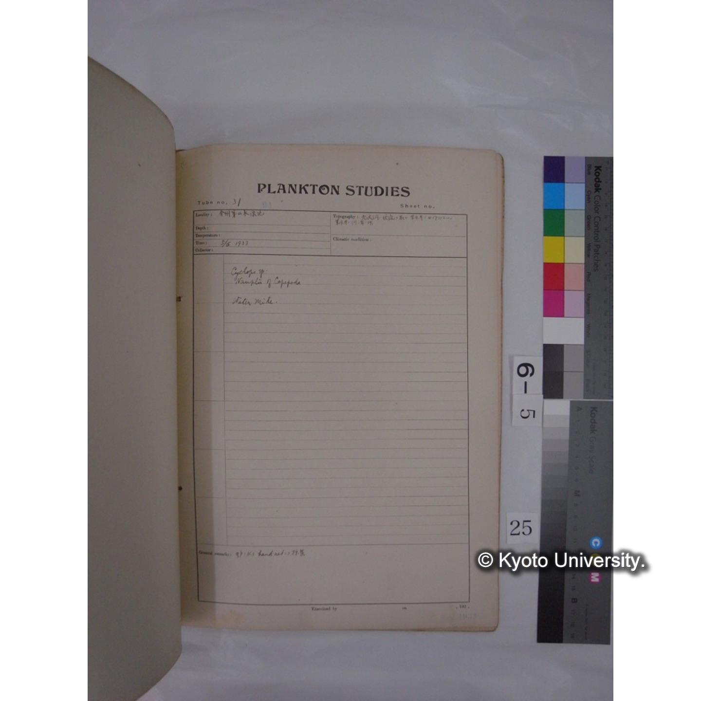 プランクトン標本調査カード (昭和8年,満州調査時採集標本) (25)