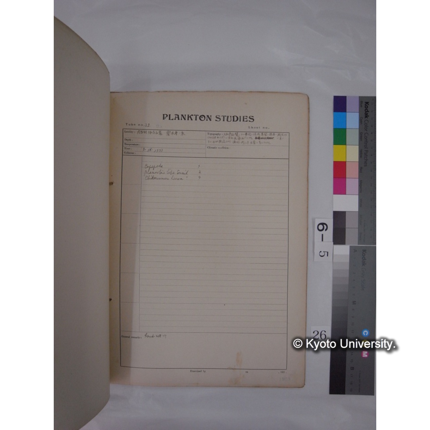 プランクトン標本調査カード (昭和8年,満州調査時採集標本) (26)