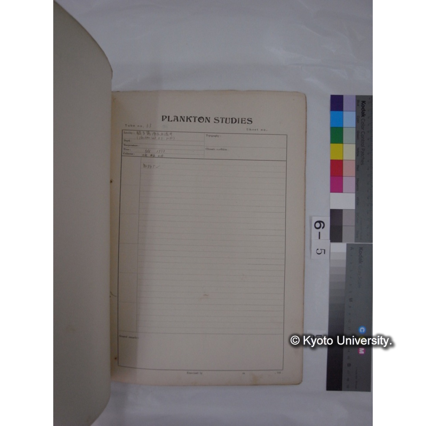 プランクトン標本調査カード (昭和8年,満州調査時採集標本) (33)