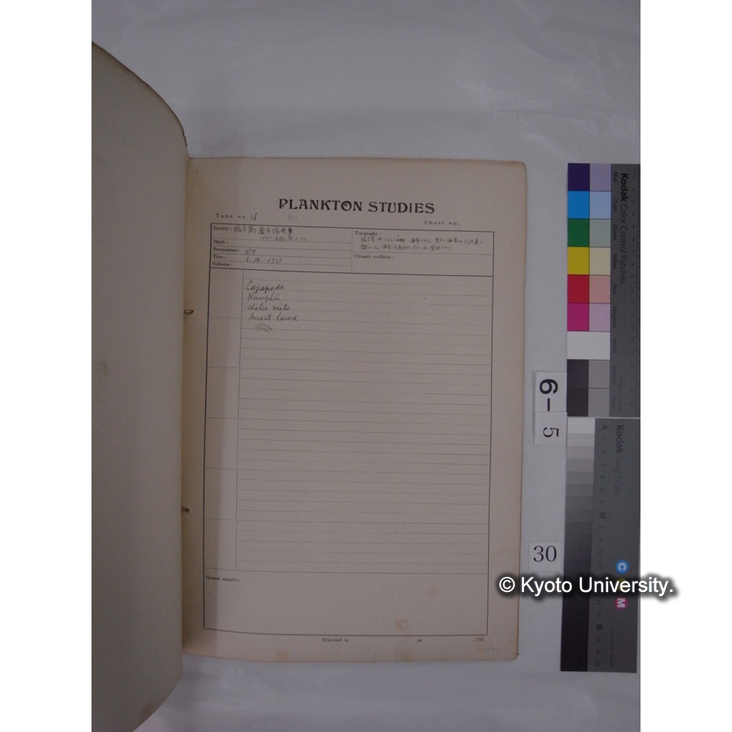 プランクトン標本調査カード (昭和8年,満州調査時採集標本) (6)
