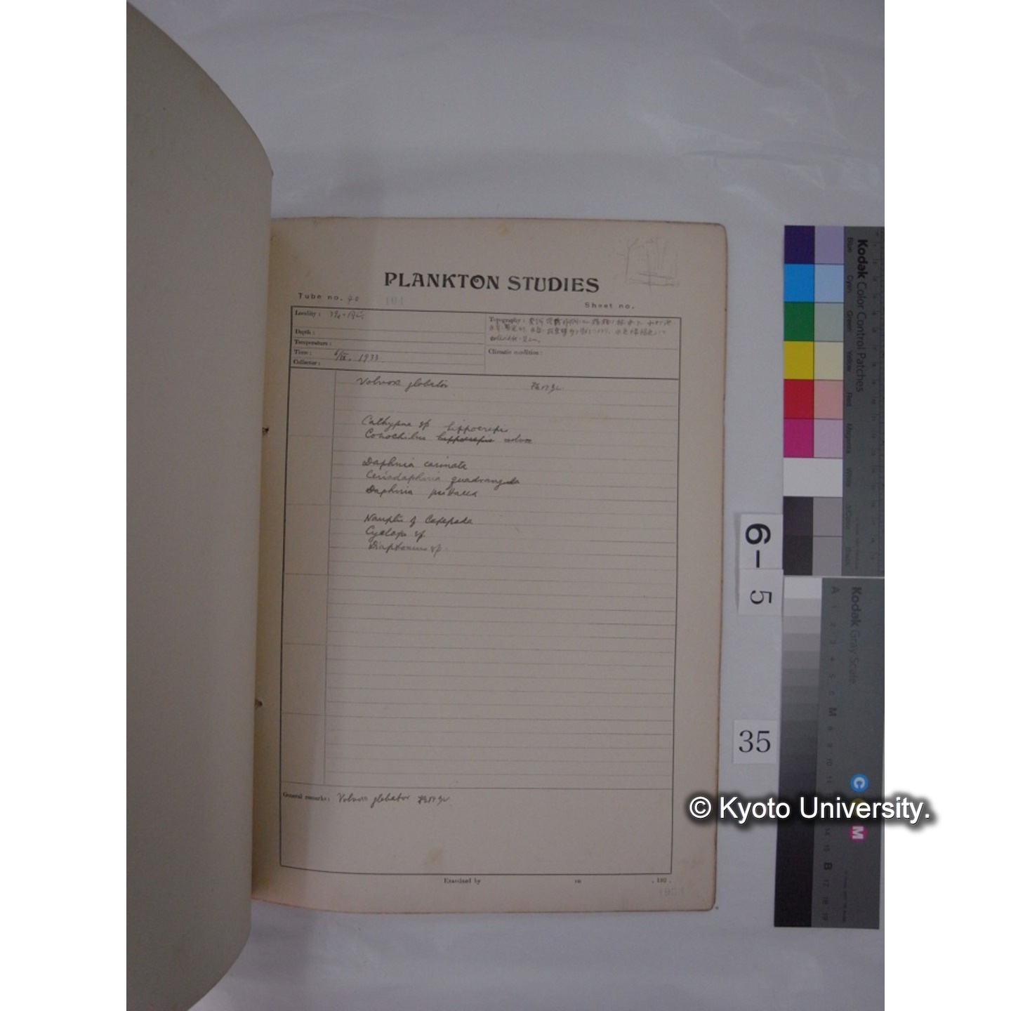 プランクトン標本調査カード (昭和8年,満州調査時採集標本) (35)