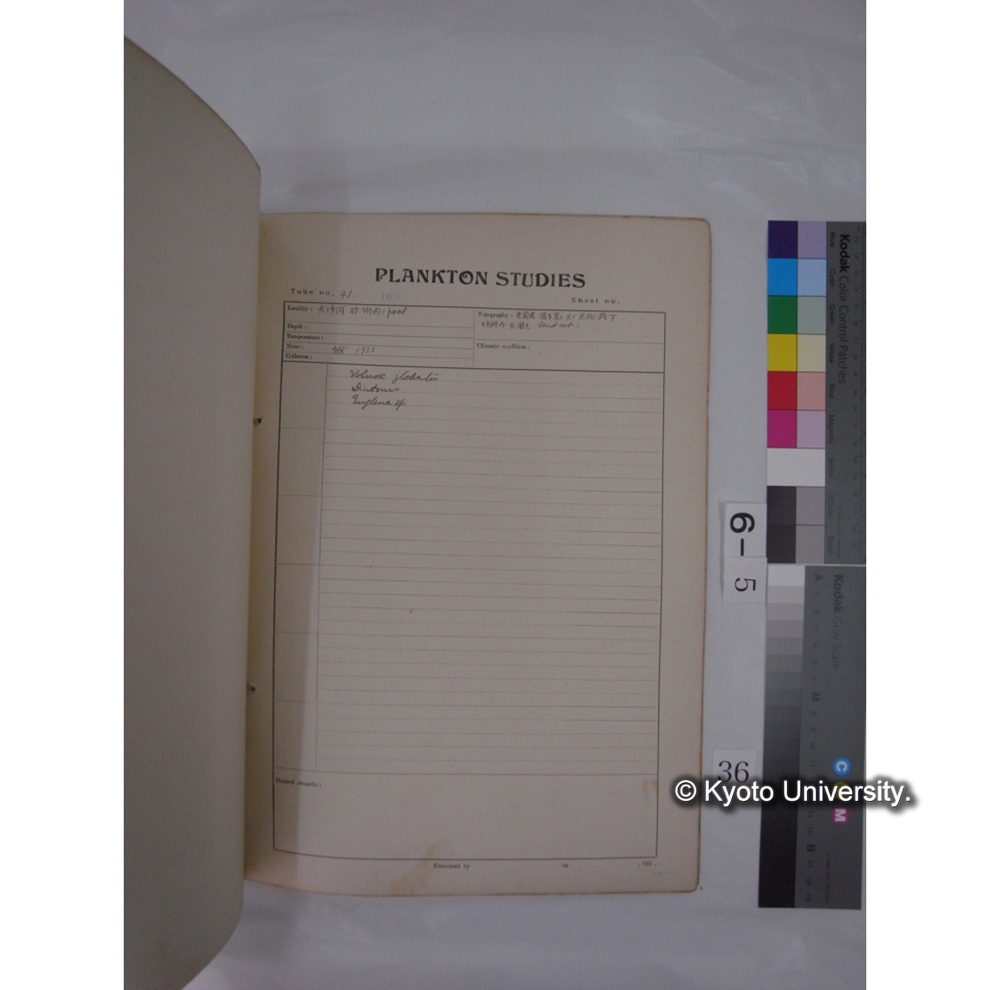 プランクトン標本調査カード (昭和8年,満州調査時採集標本) (36)