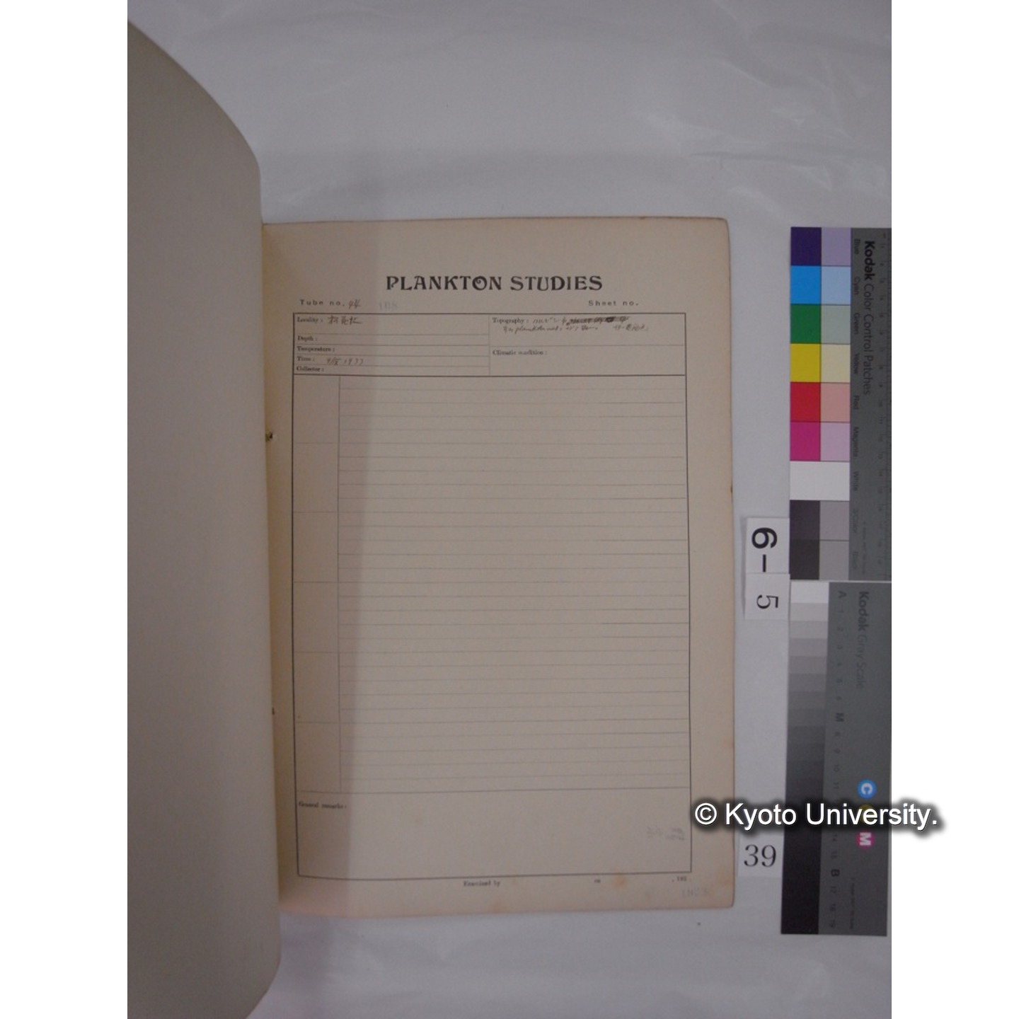 プランクトン標本調査カード (昭和8年,満州調査時採集標本) (39)