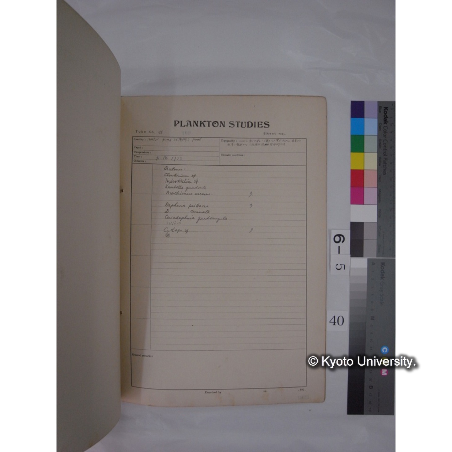 プランクトン標本調査カード (昭和8年,満州調査時採集標本) (40)