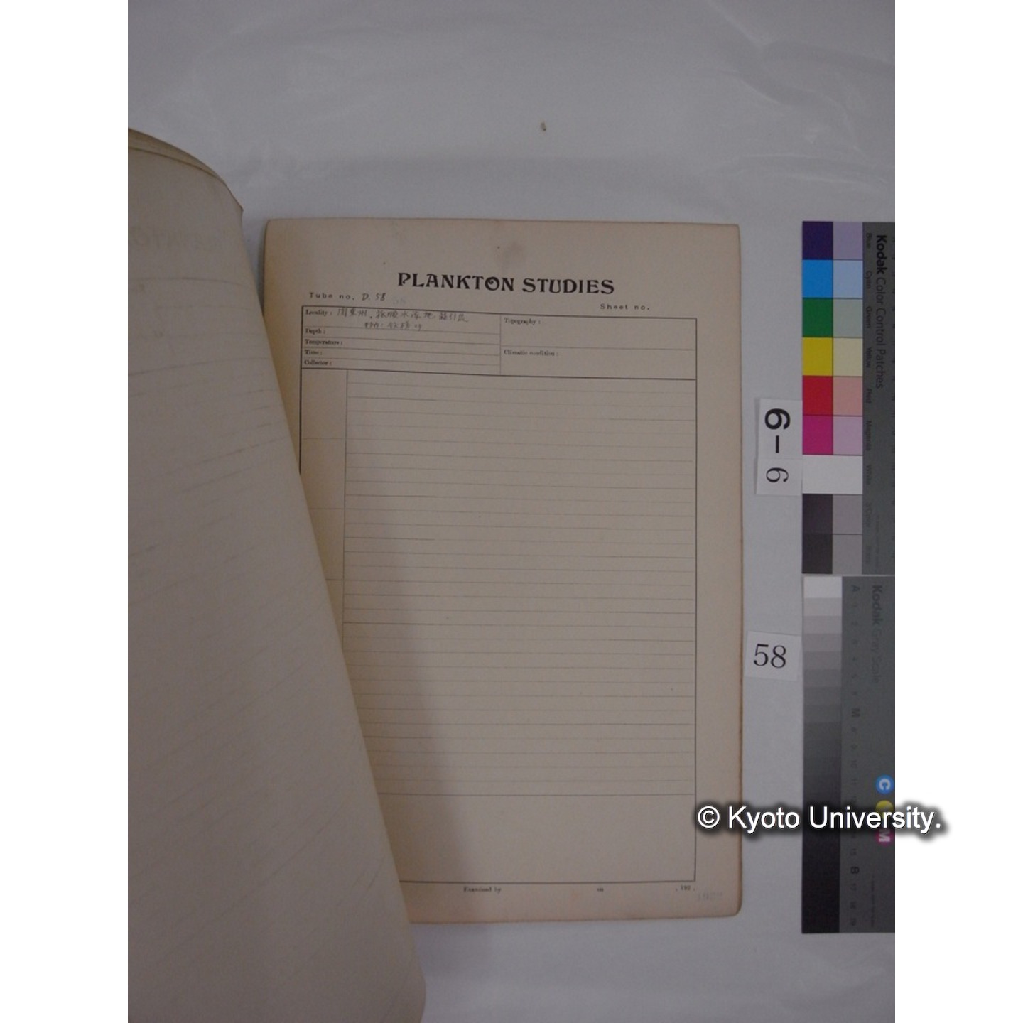 プランクトン標本調査カード (昭和7年,満州調査時採集標本) (58)