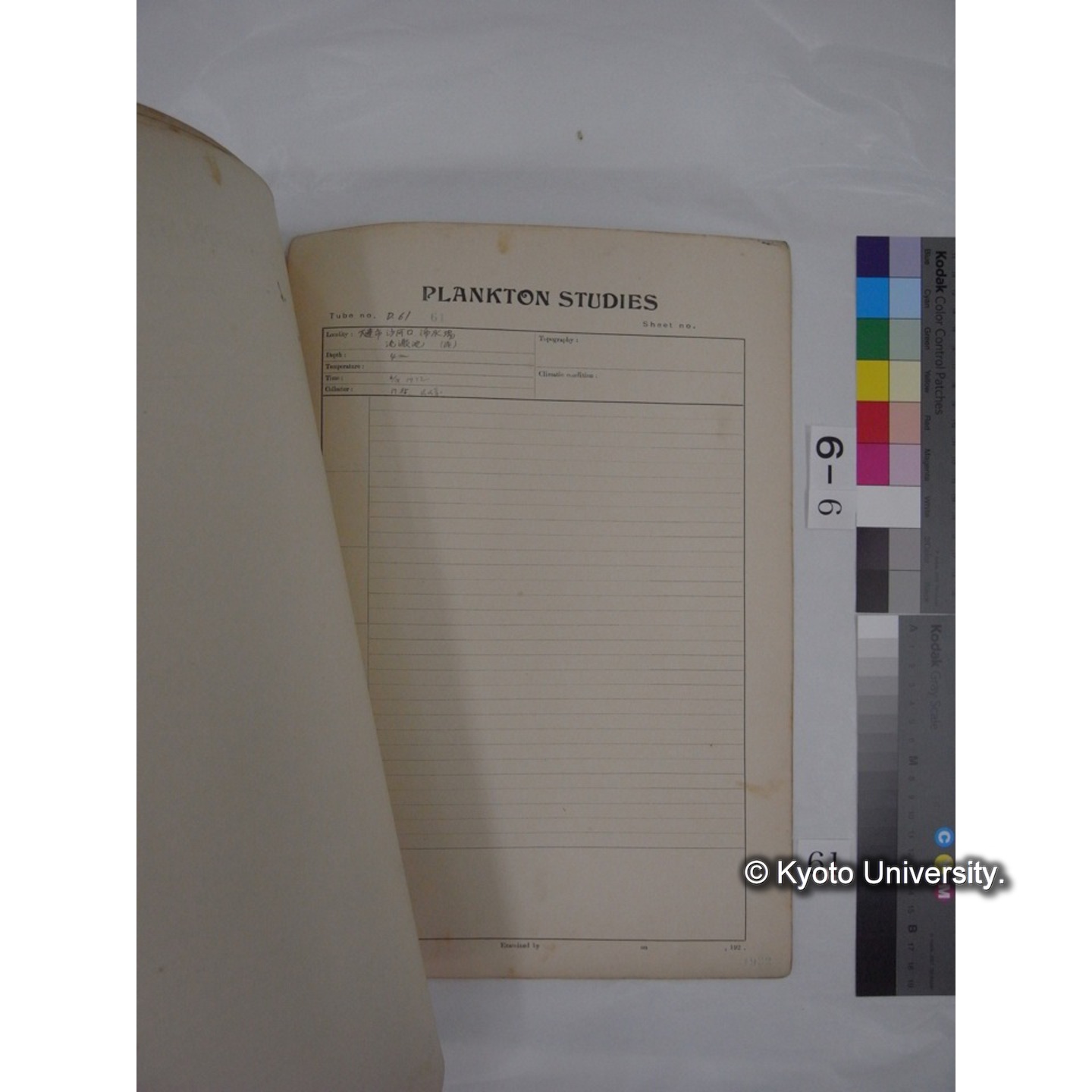 プランクトン標本調査カード (昭和7年,満州調査時採集標本) (61)