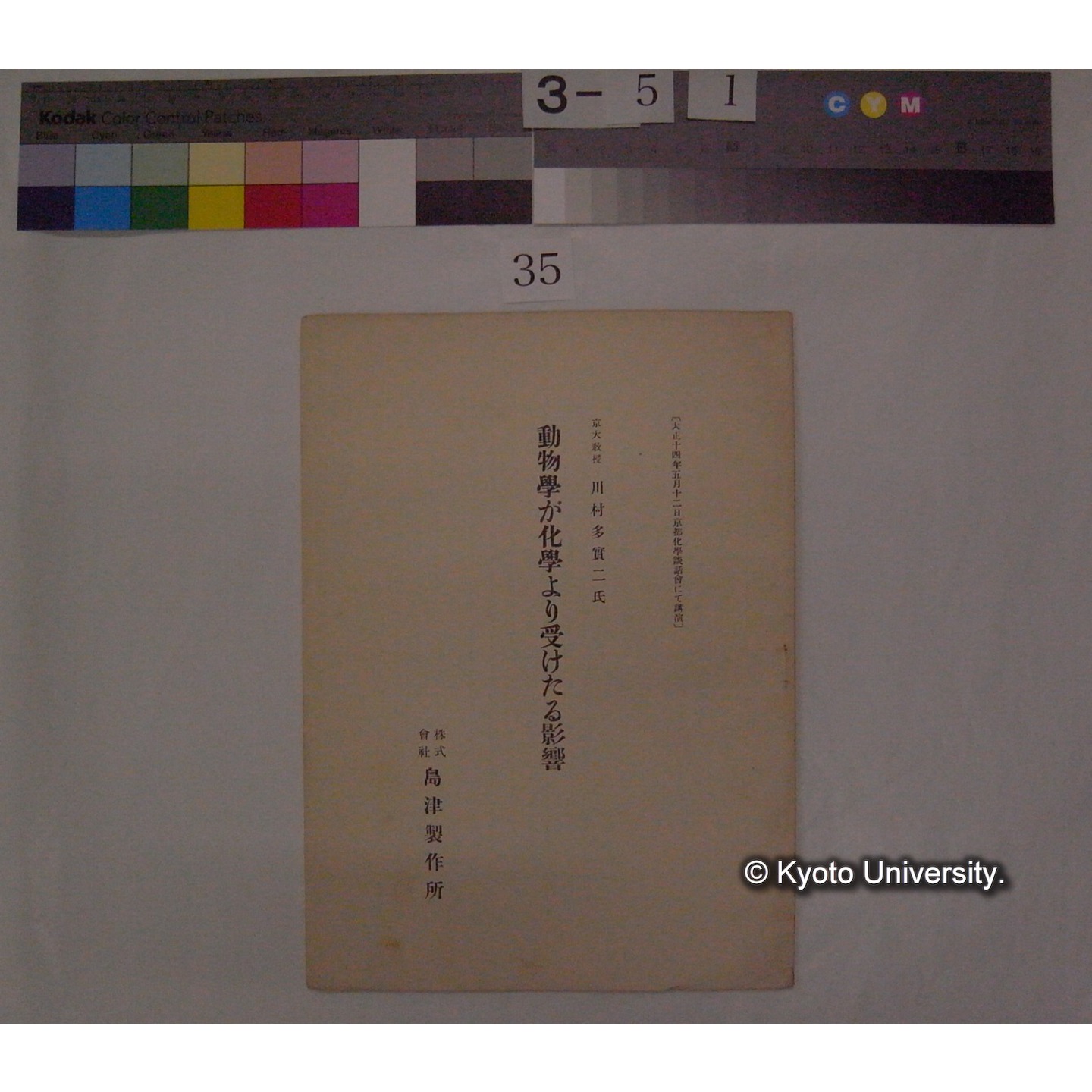 動物学が化学より受けたる影響 / 川村多實二 (大正14年5月12日京都化学談話会にて講演) (1)
