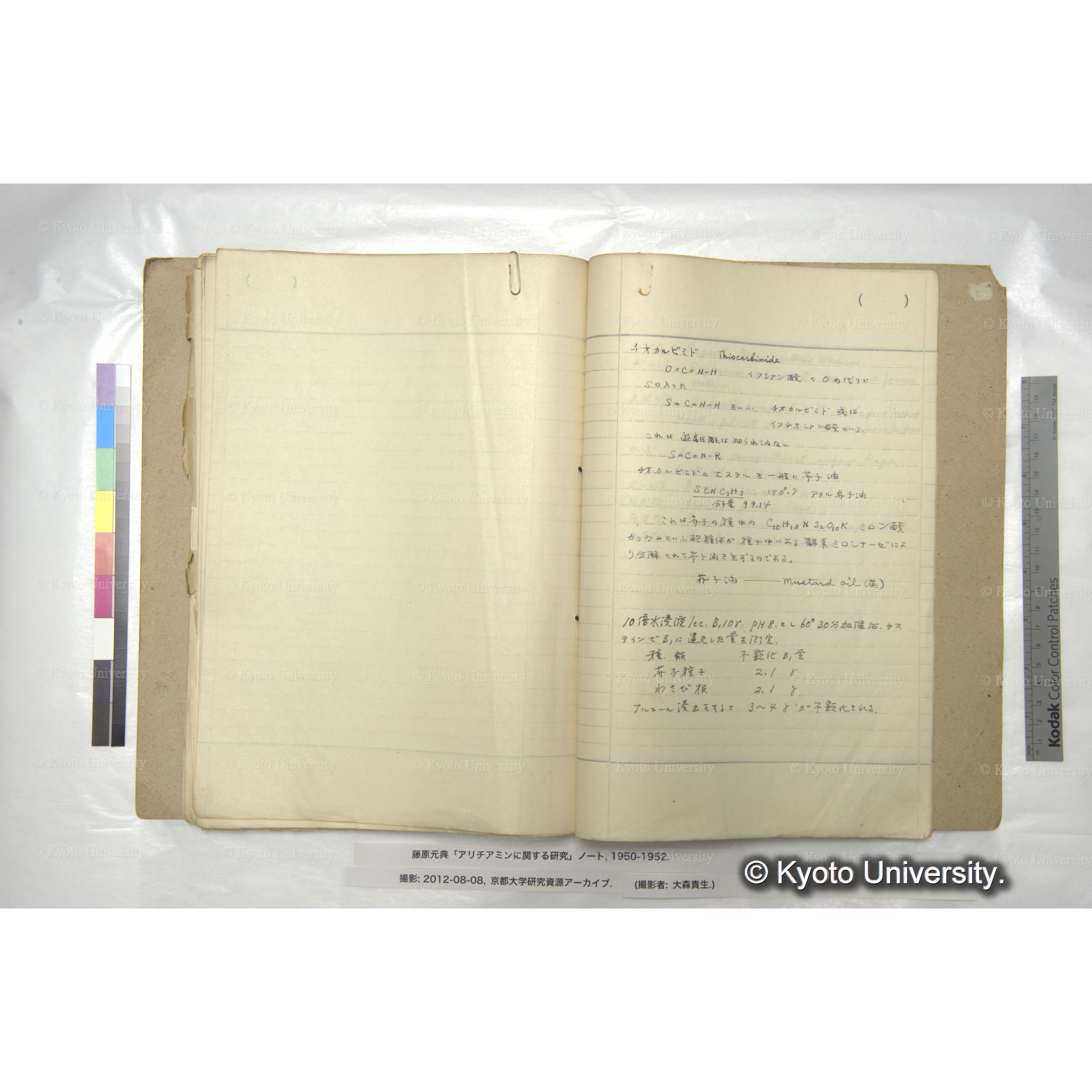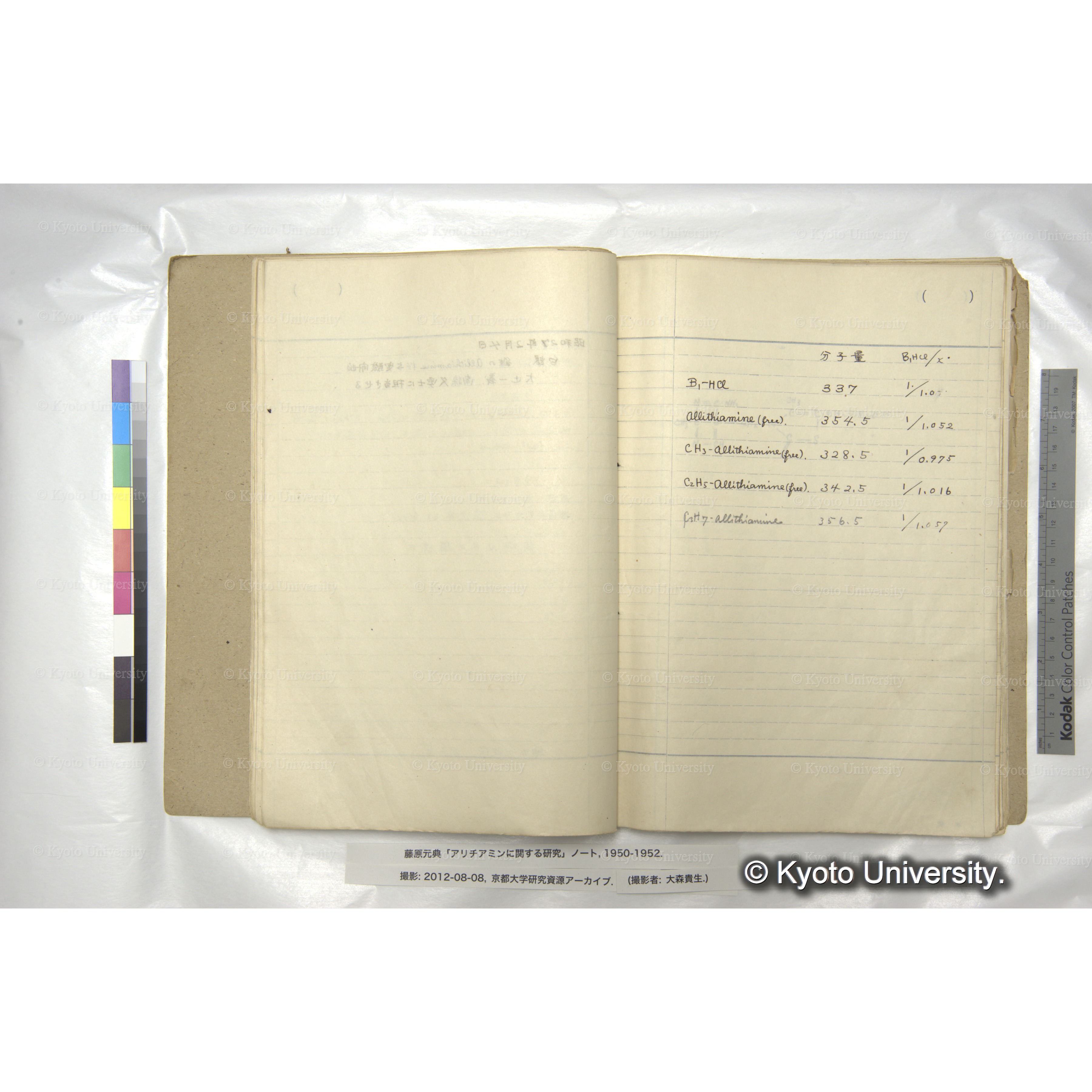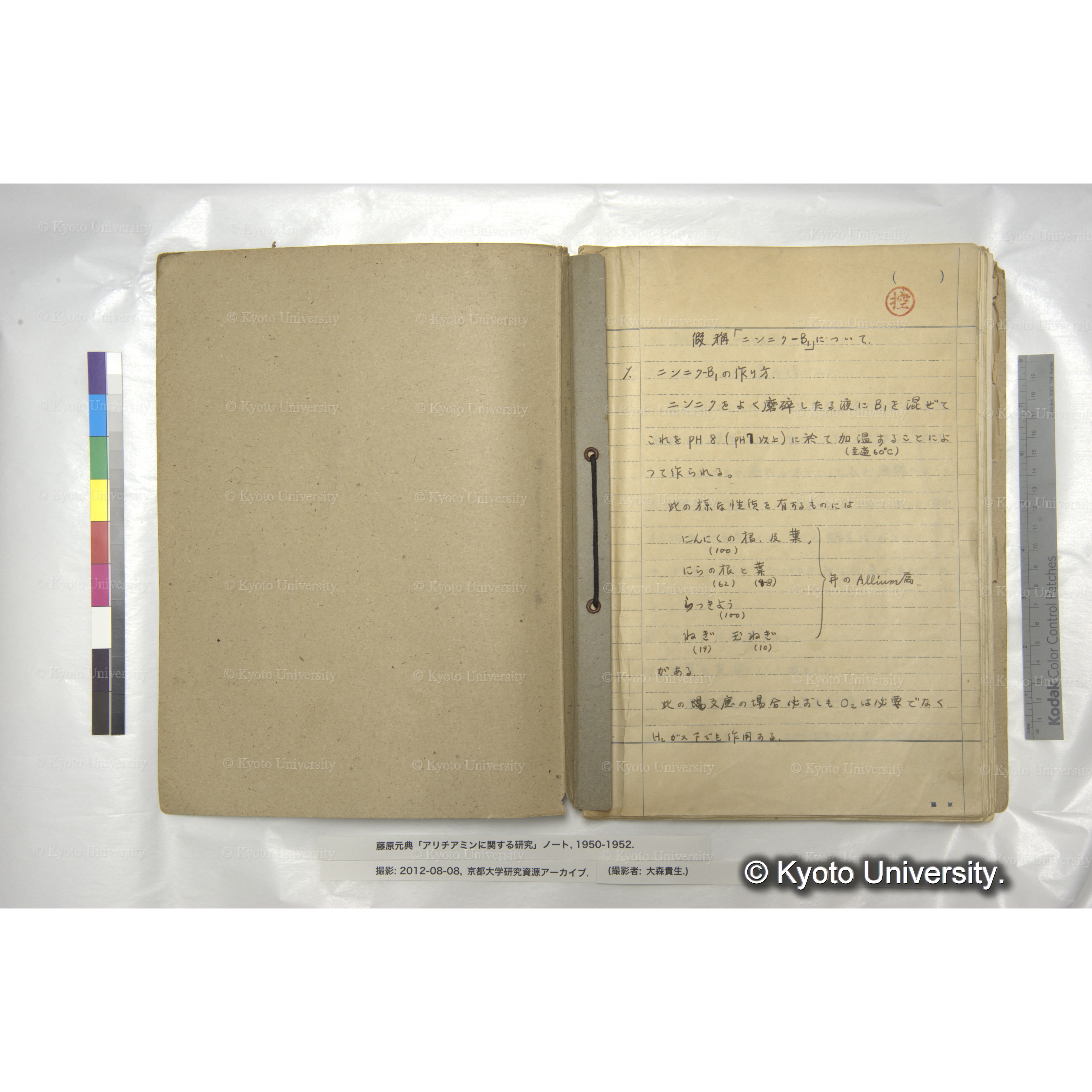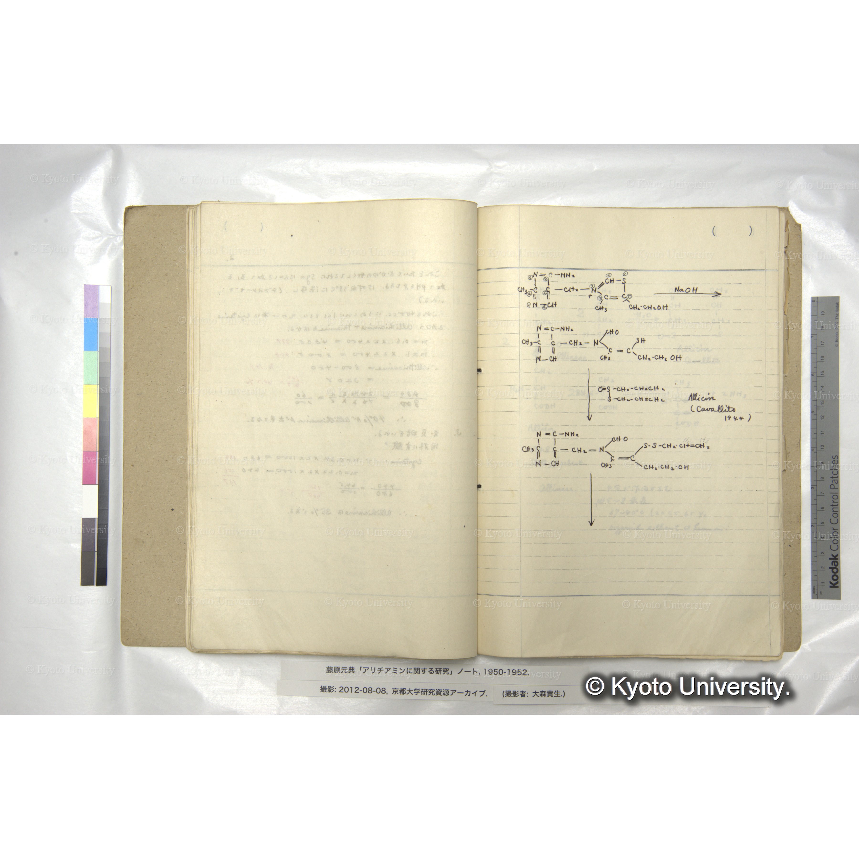 藤原元典「アリチアミンに関する研究」ノートおよび関係資料, 1950-ca.1998. Fujiwara (Motonori) Papers: Research Notebook on Allithiamine and Related Materials, 1950-ca.1998.