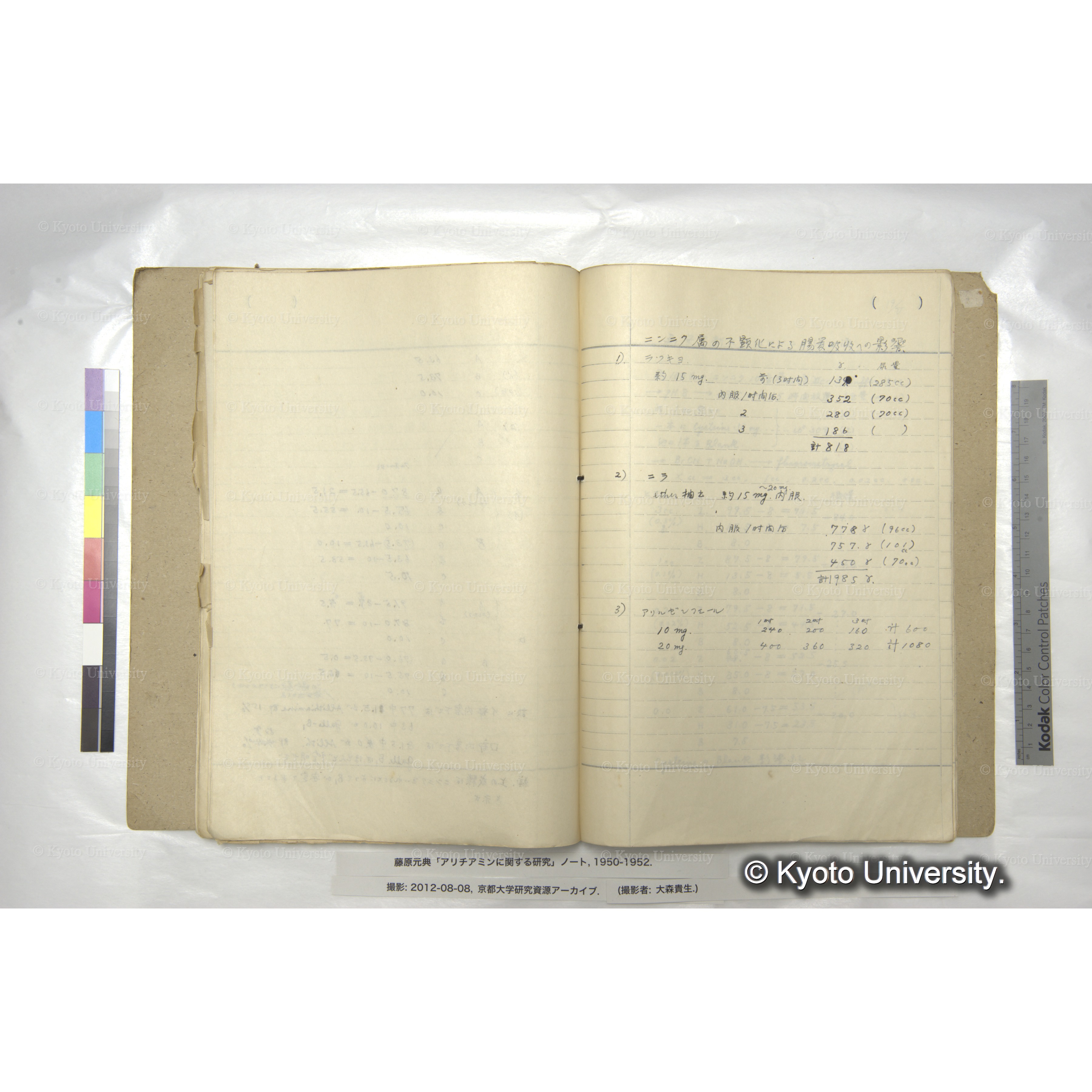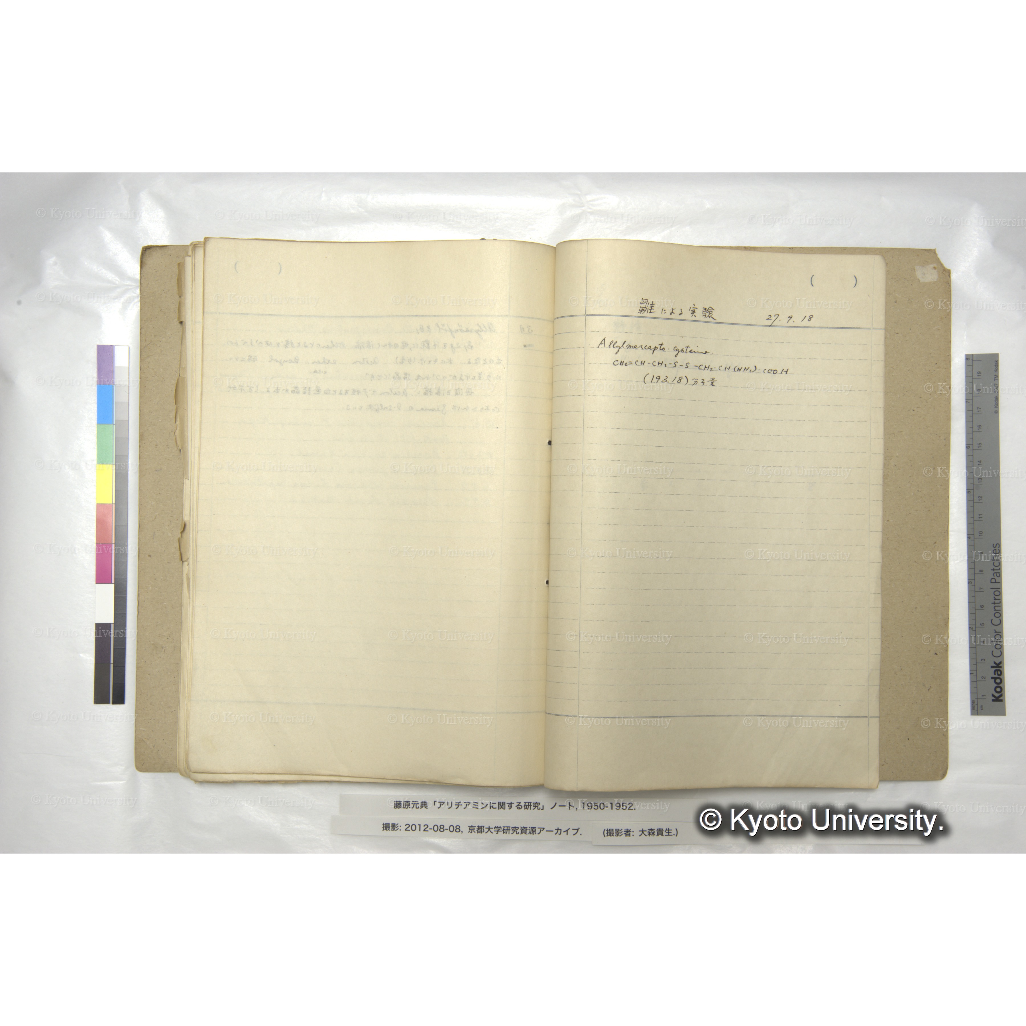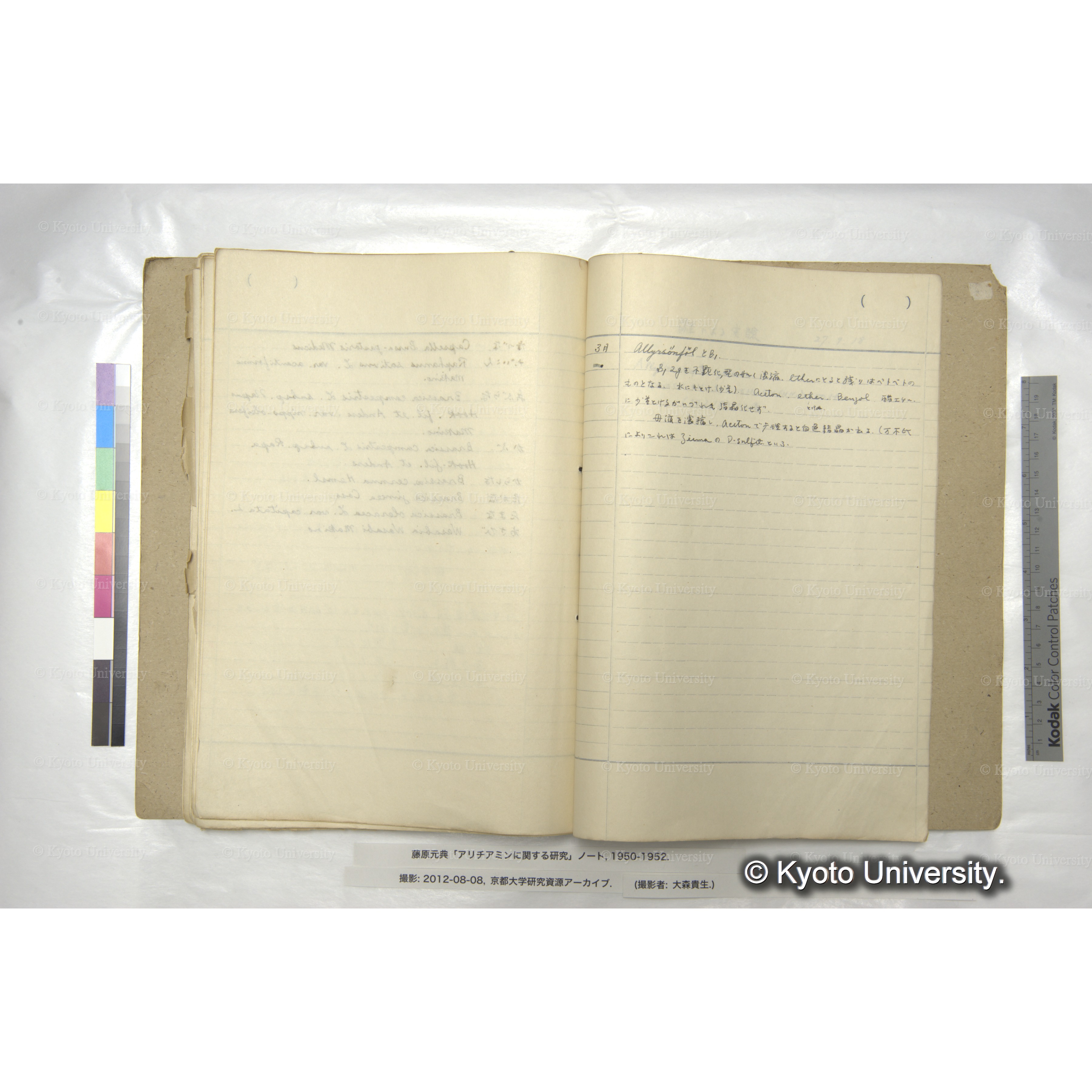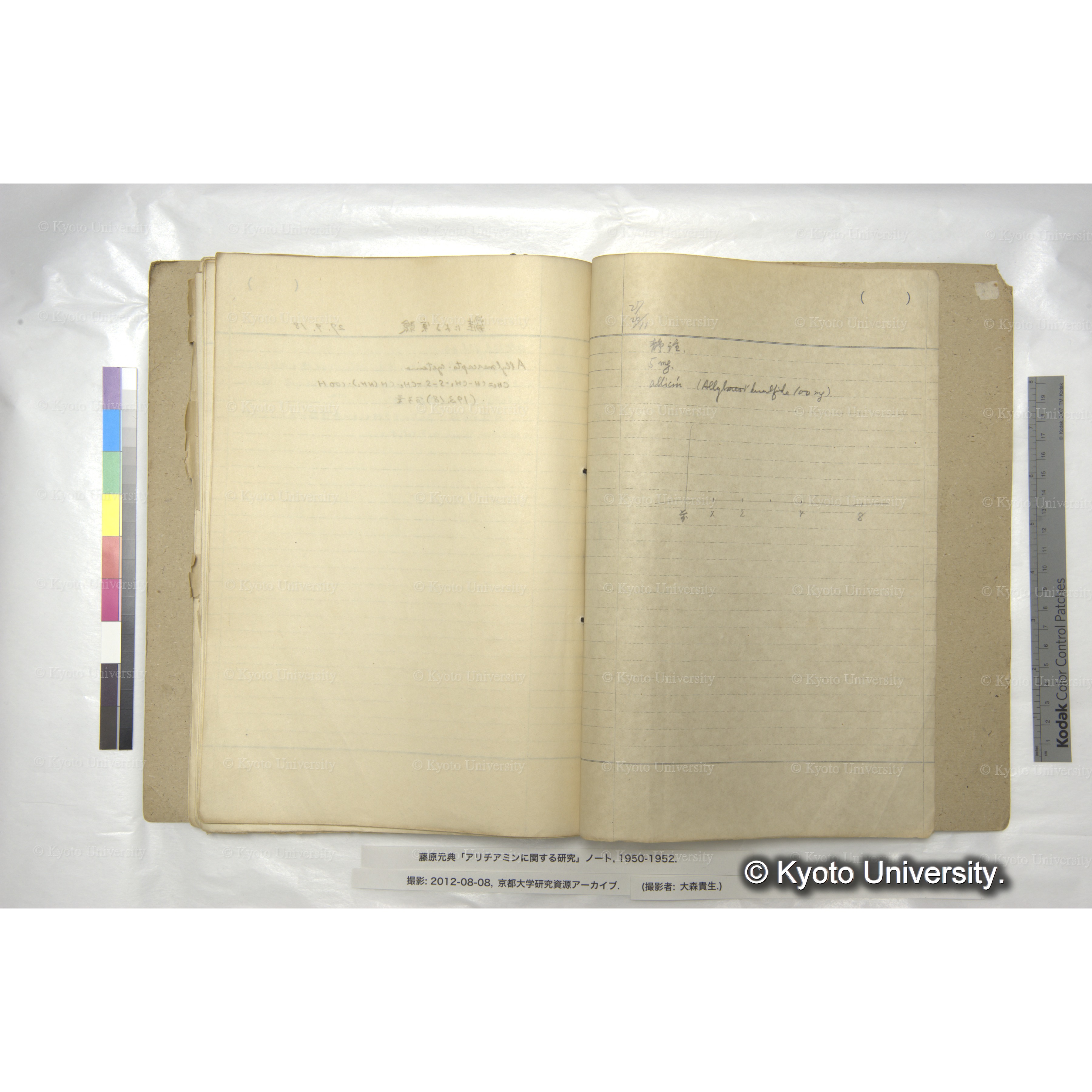 藤原元典「アリチアミンに関する研究」ノートおよび関係資料, 1950-ca.1998. Fujiwara (Motonori) Papers: Research Notebook on Allithiamine and Related Materials, 1950-ca.1998.