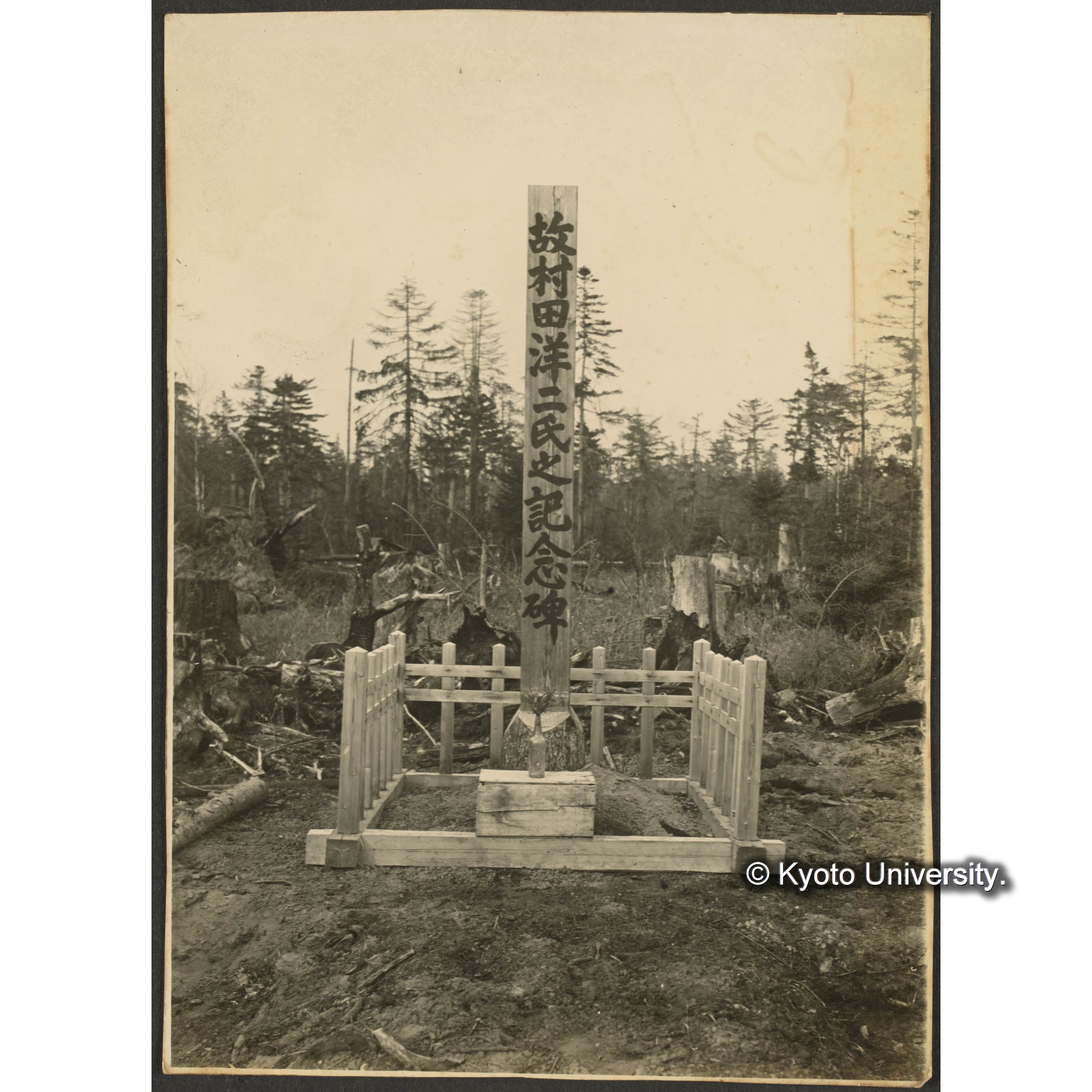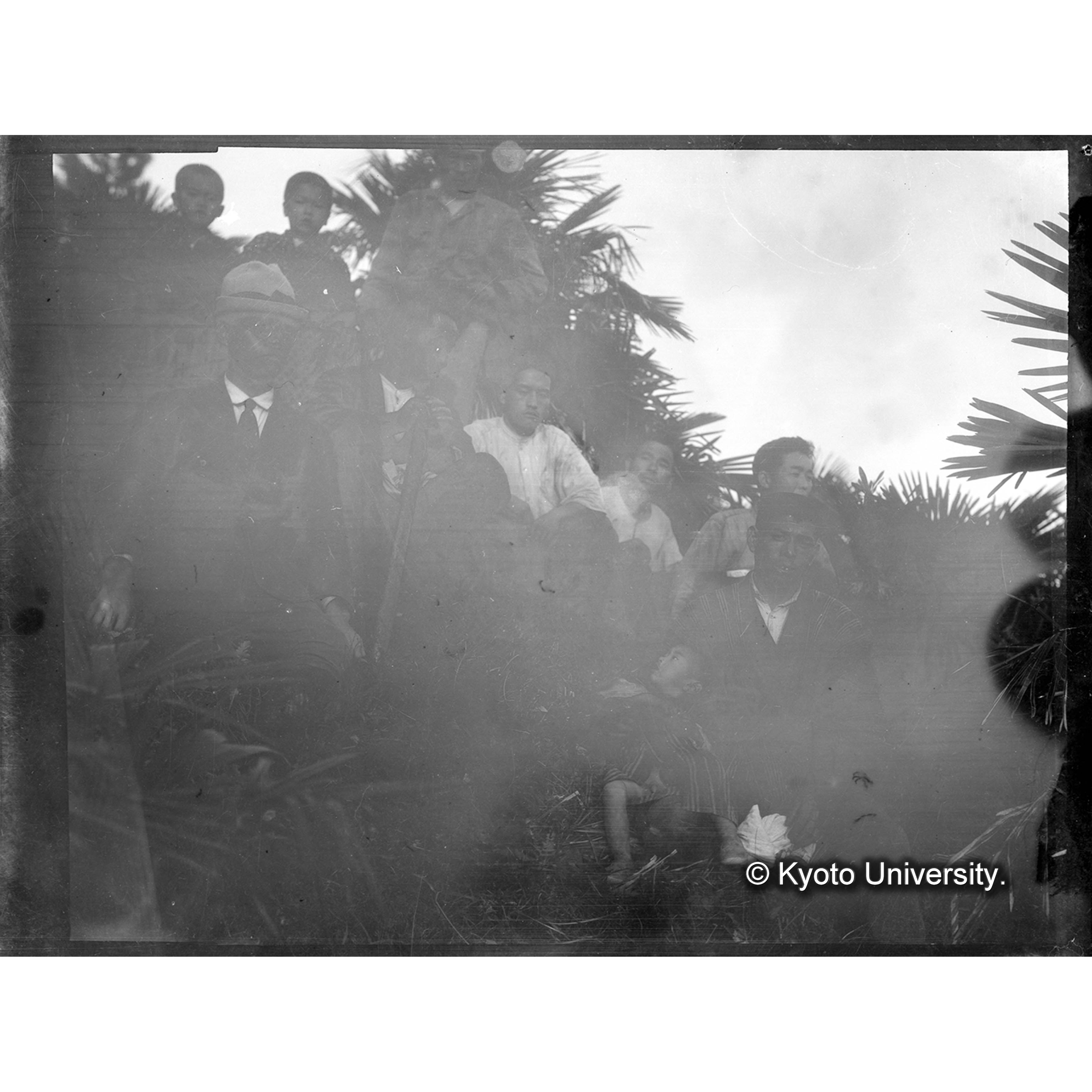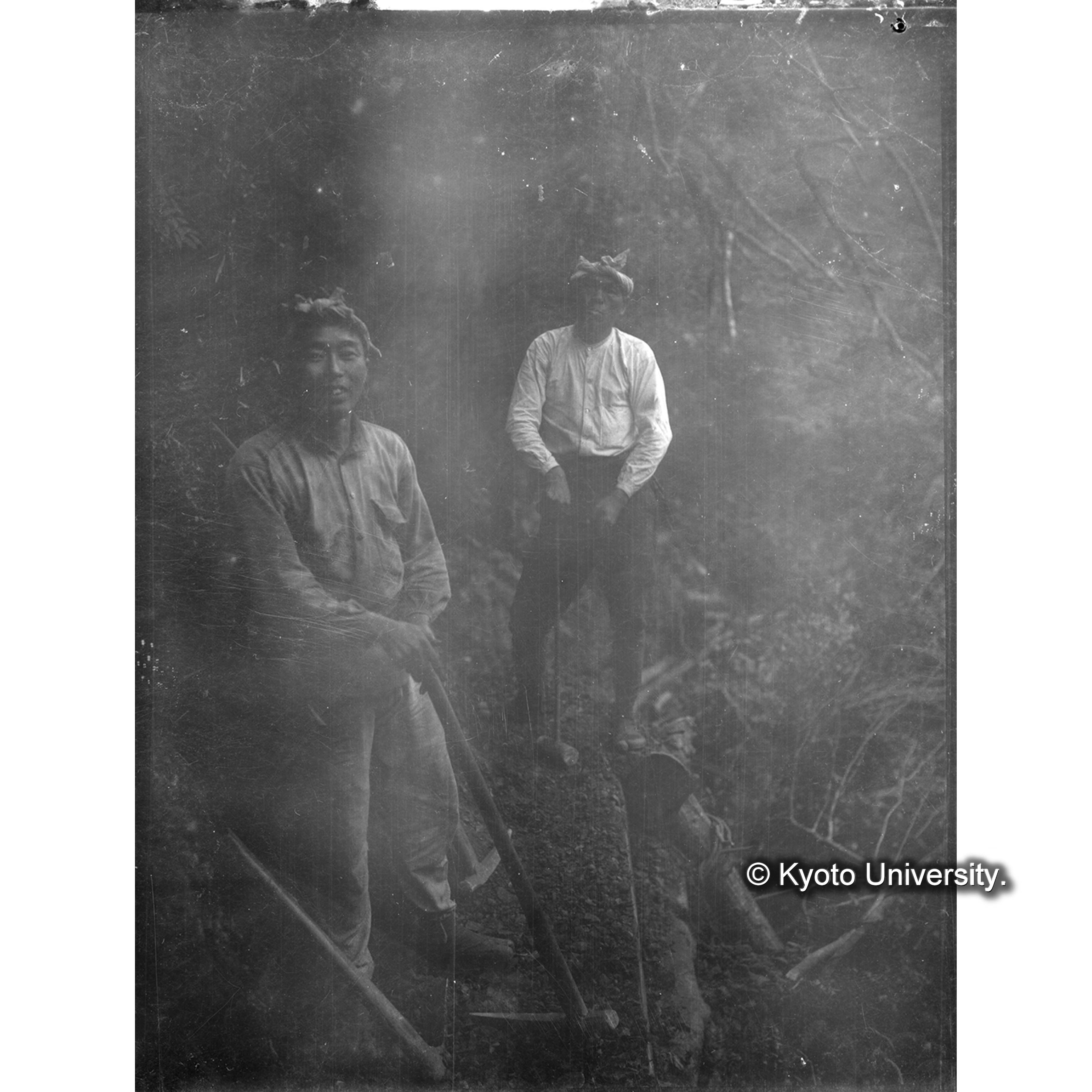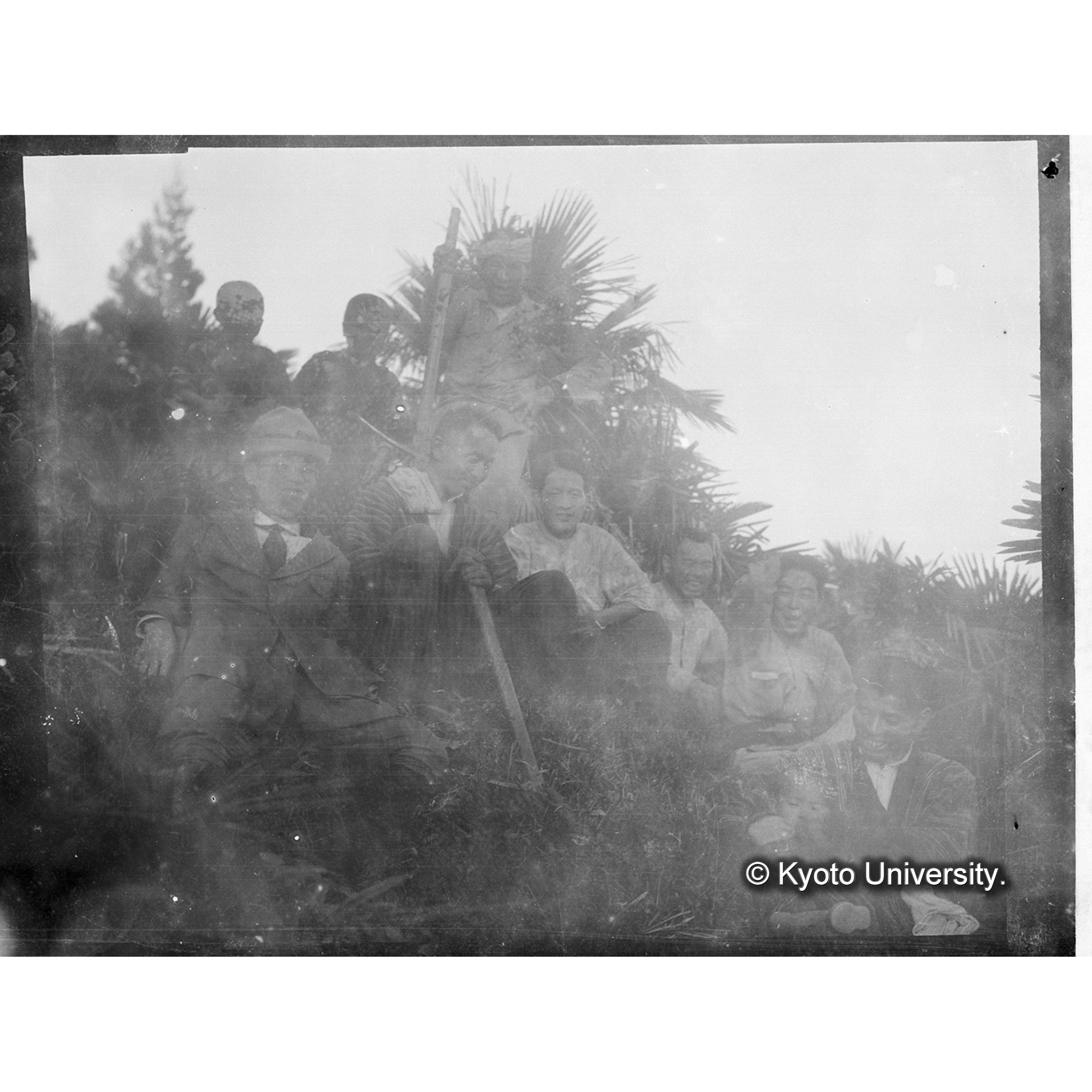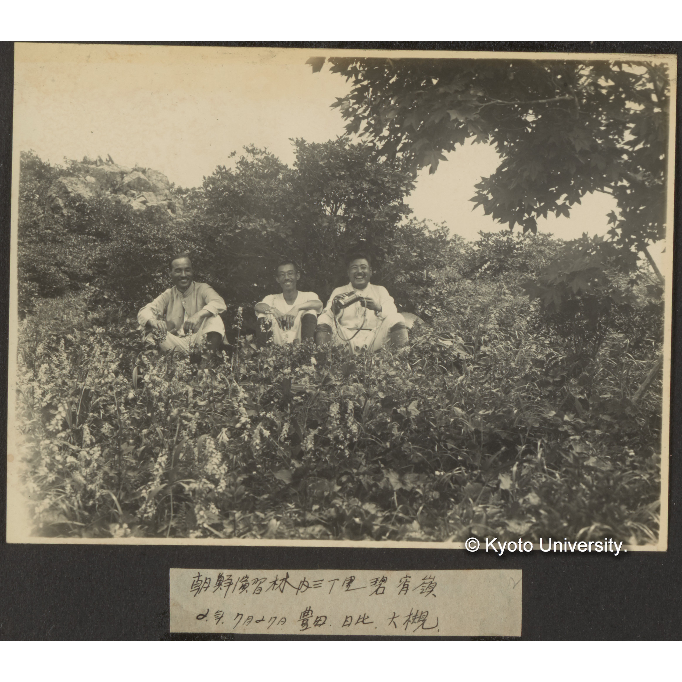 〔写真欠損〕朝鮮演習林内三丁里碧宵峰 2年7月27日 豊田〔三郎〕、日比〔昌〕、大槻 (1)