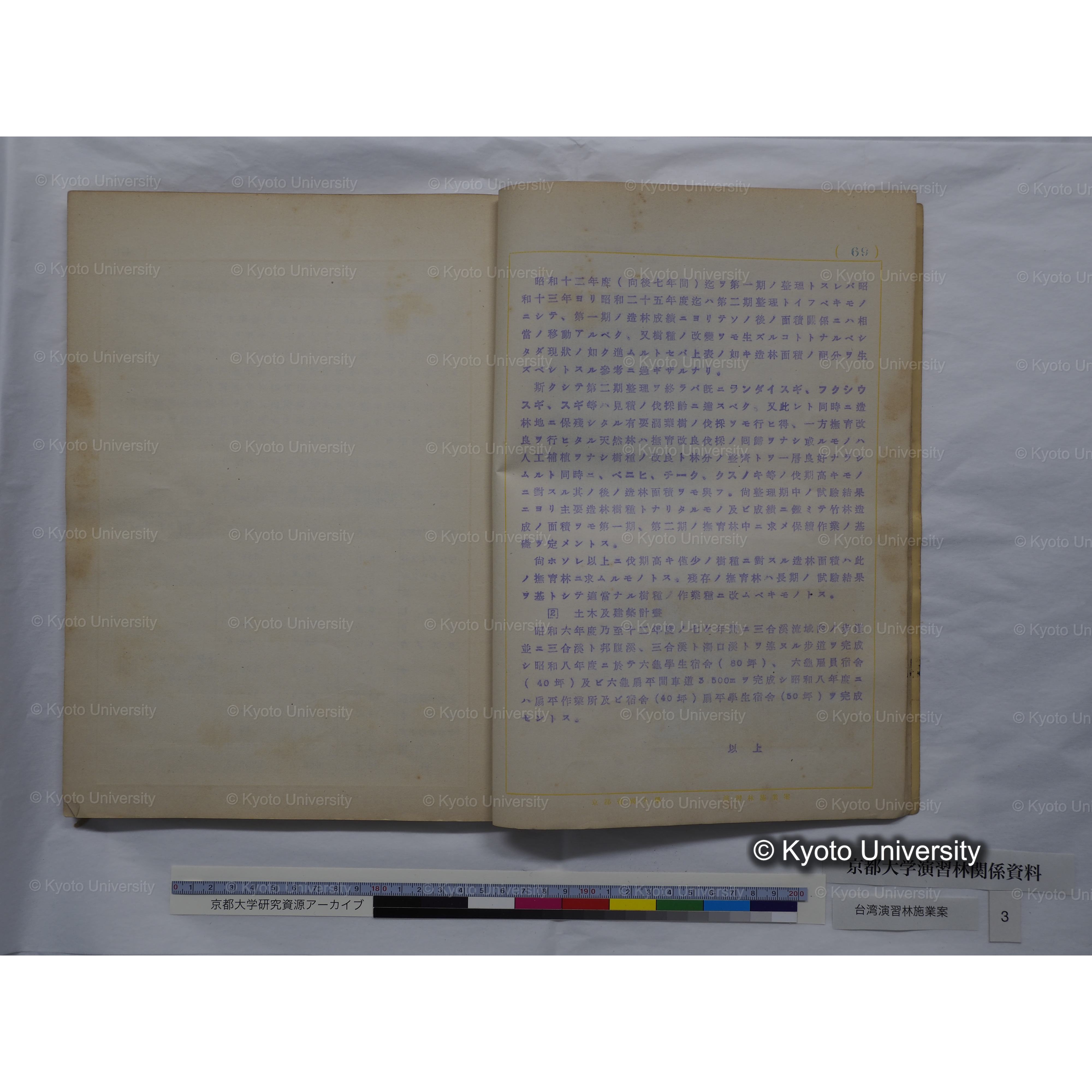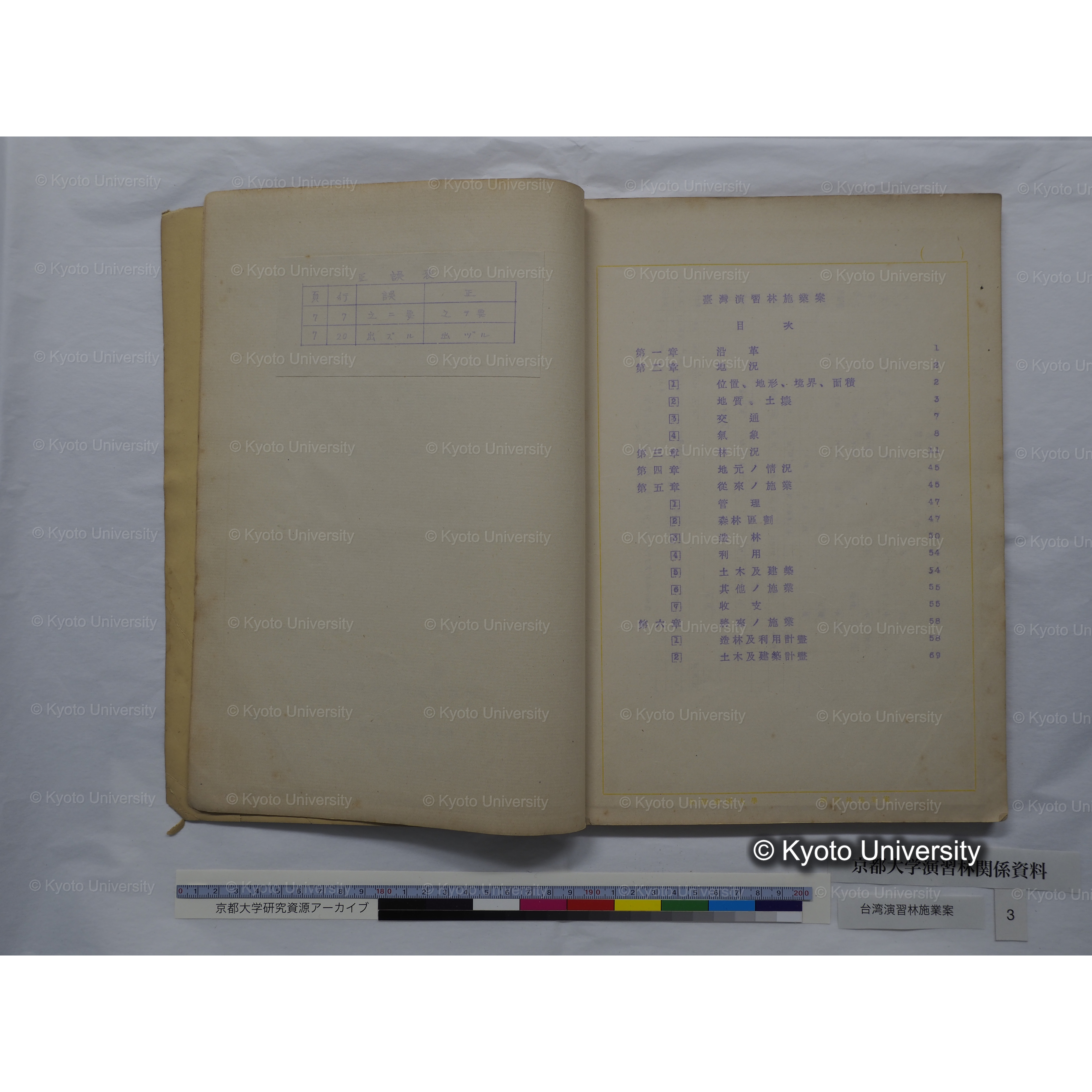 京都大学演習林関係資料, 1928-1986. Kyoto University Forests Collection, 1928-1986.