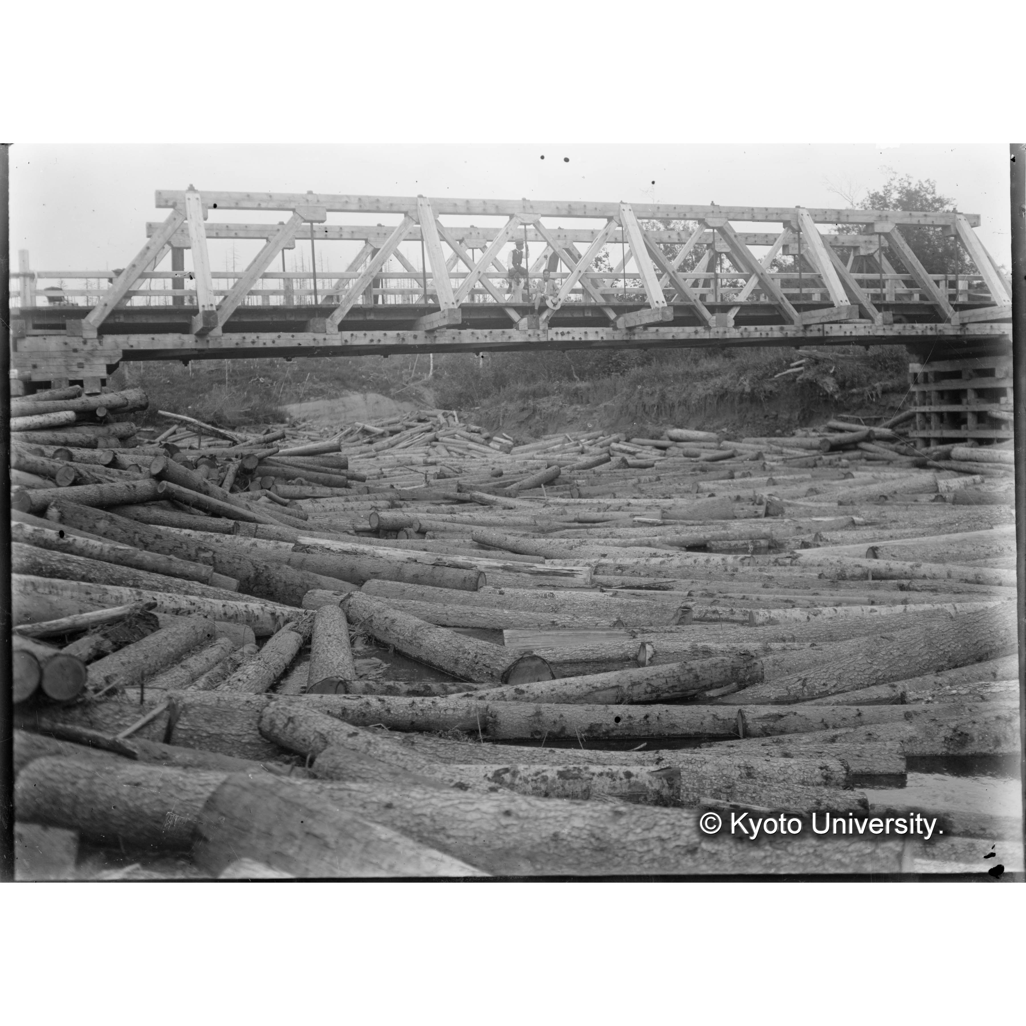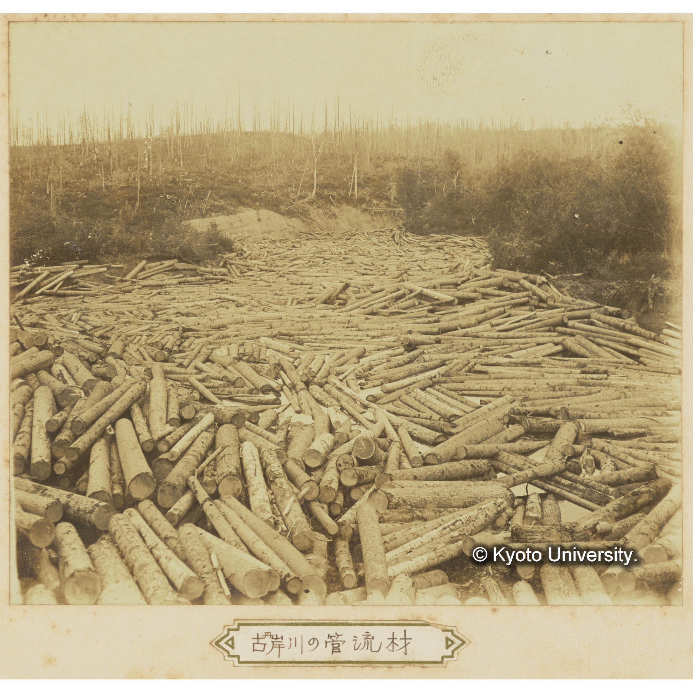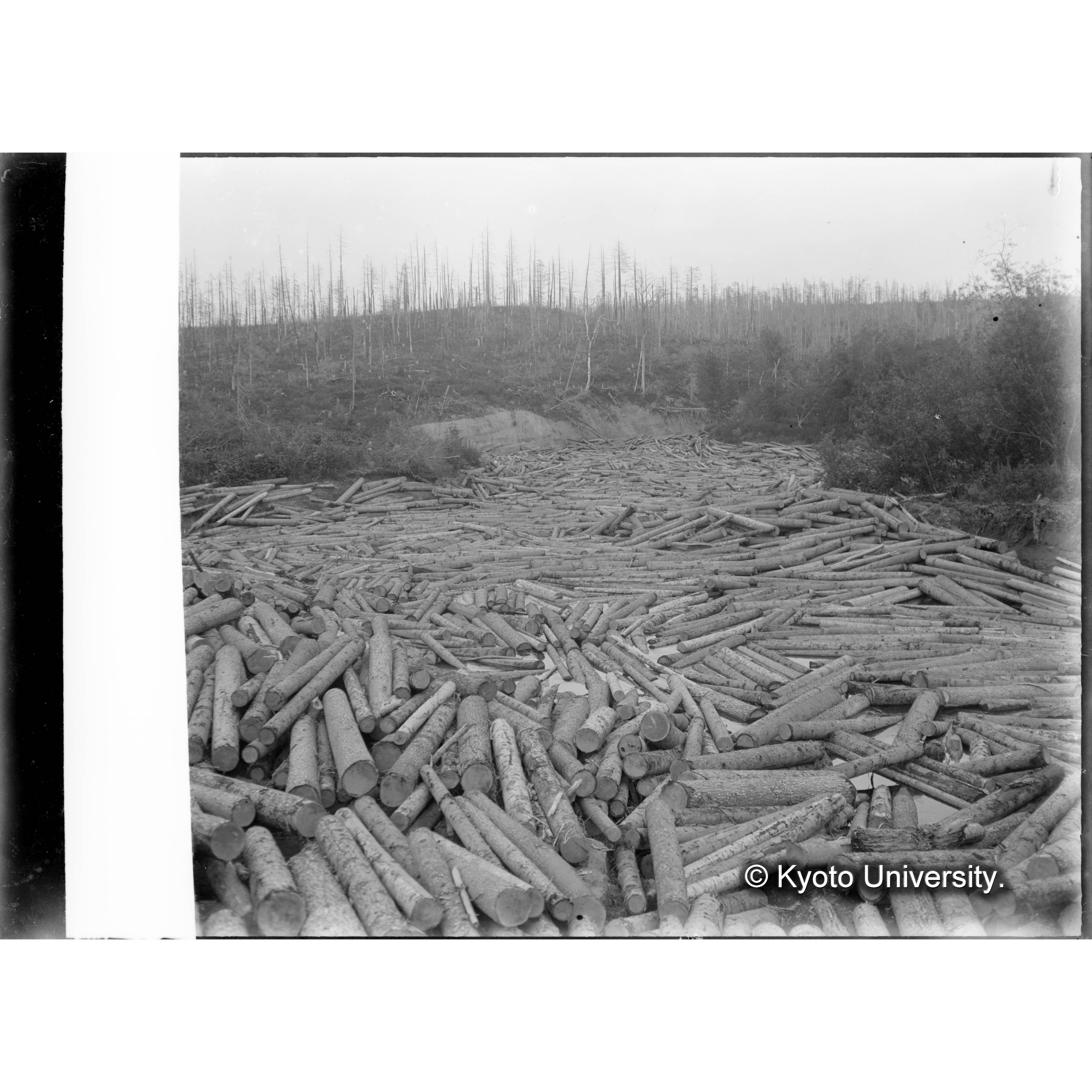 古丹岸川氷雪上に造林木を積揚げたる光景樺太保存写真 (3)