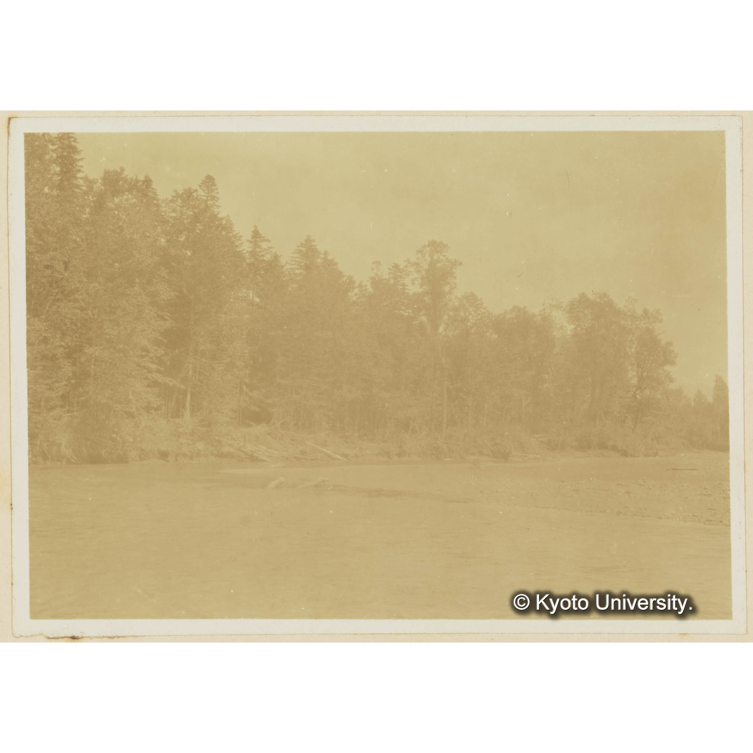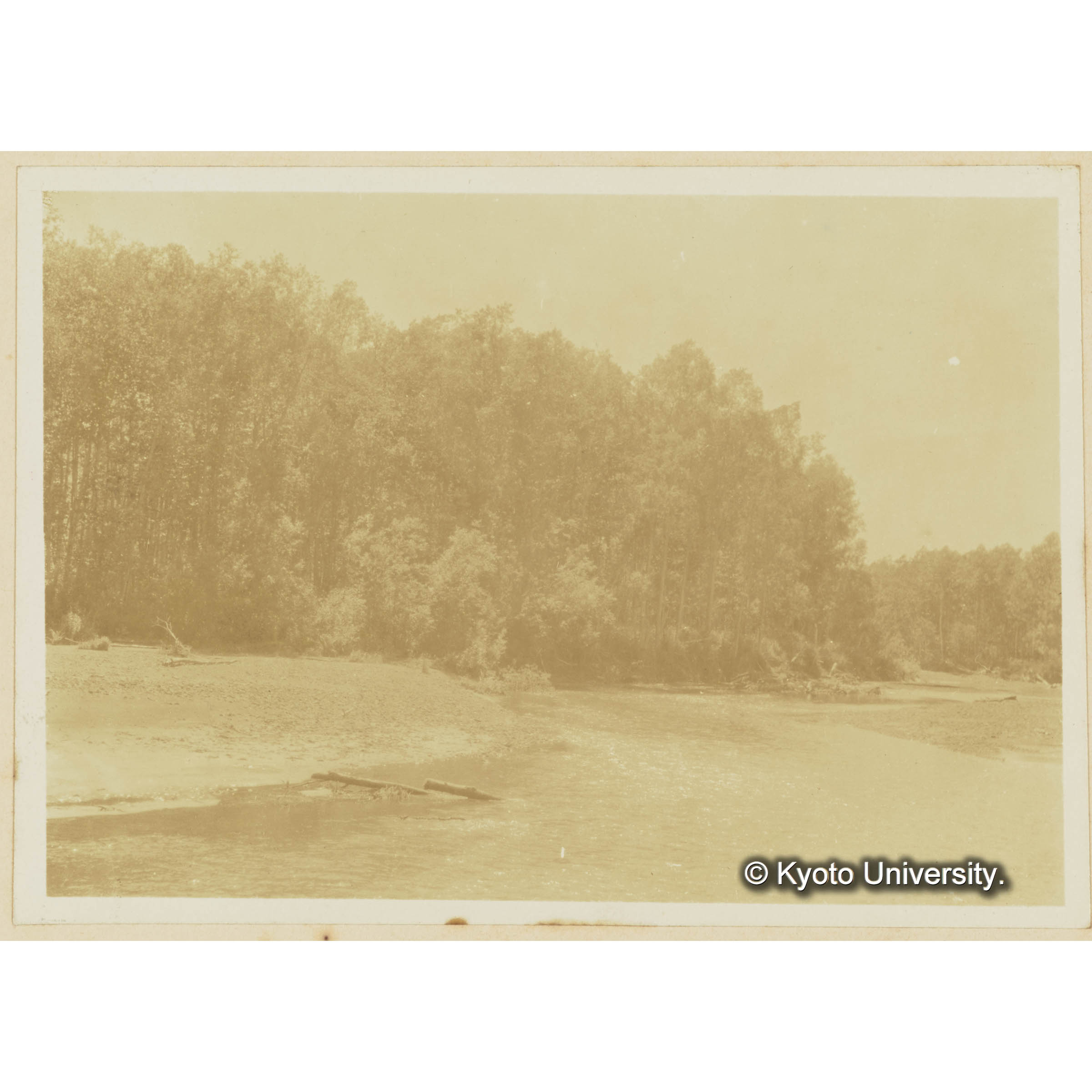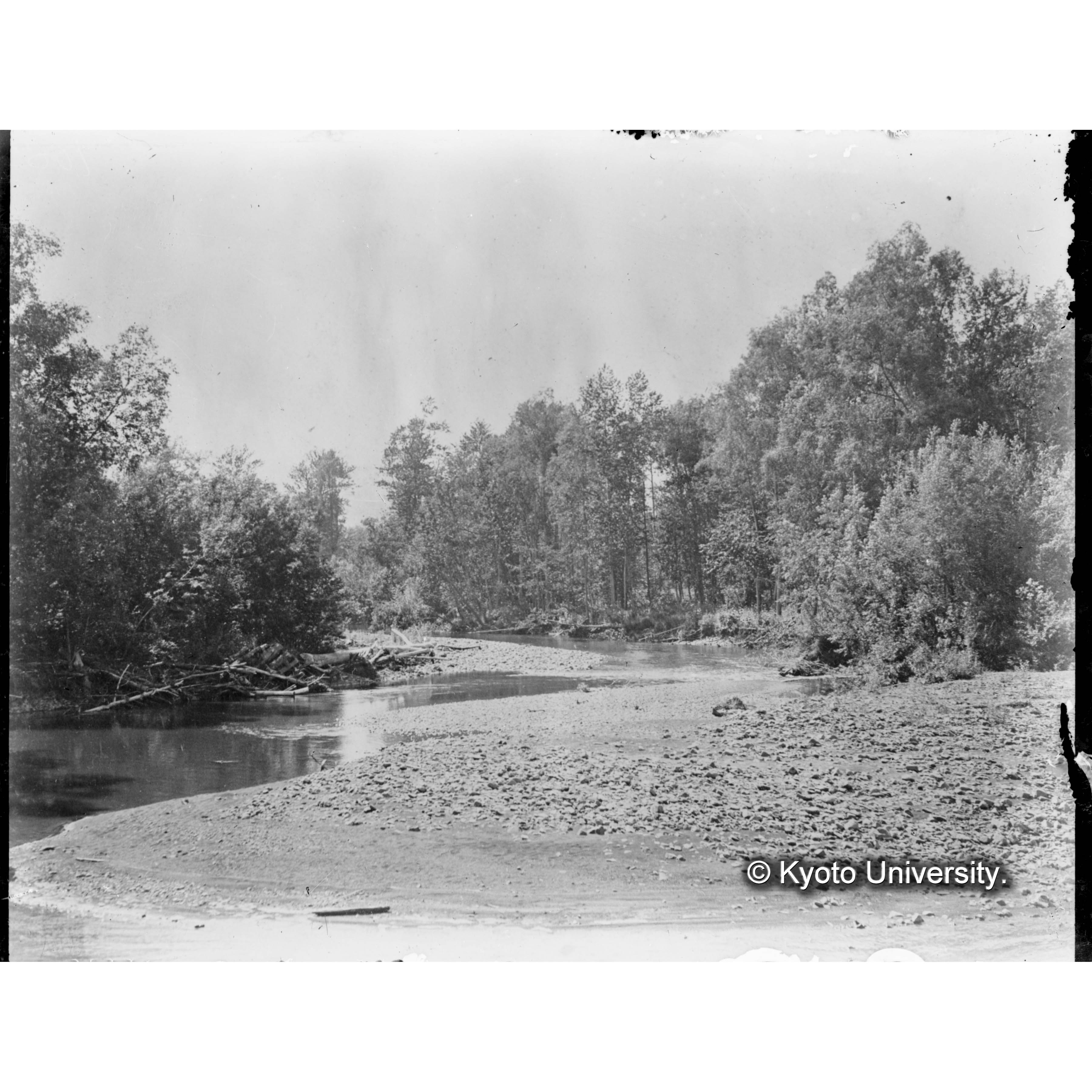 古丹岸川氷雪上に造林木を積揚げたる光景樺太保存写真 (1)
