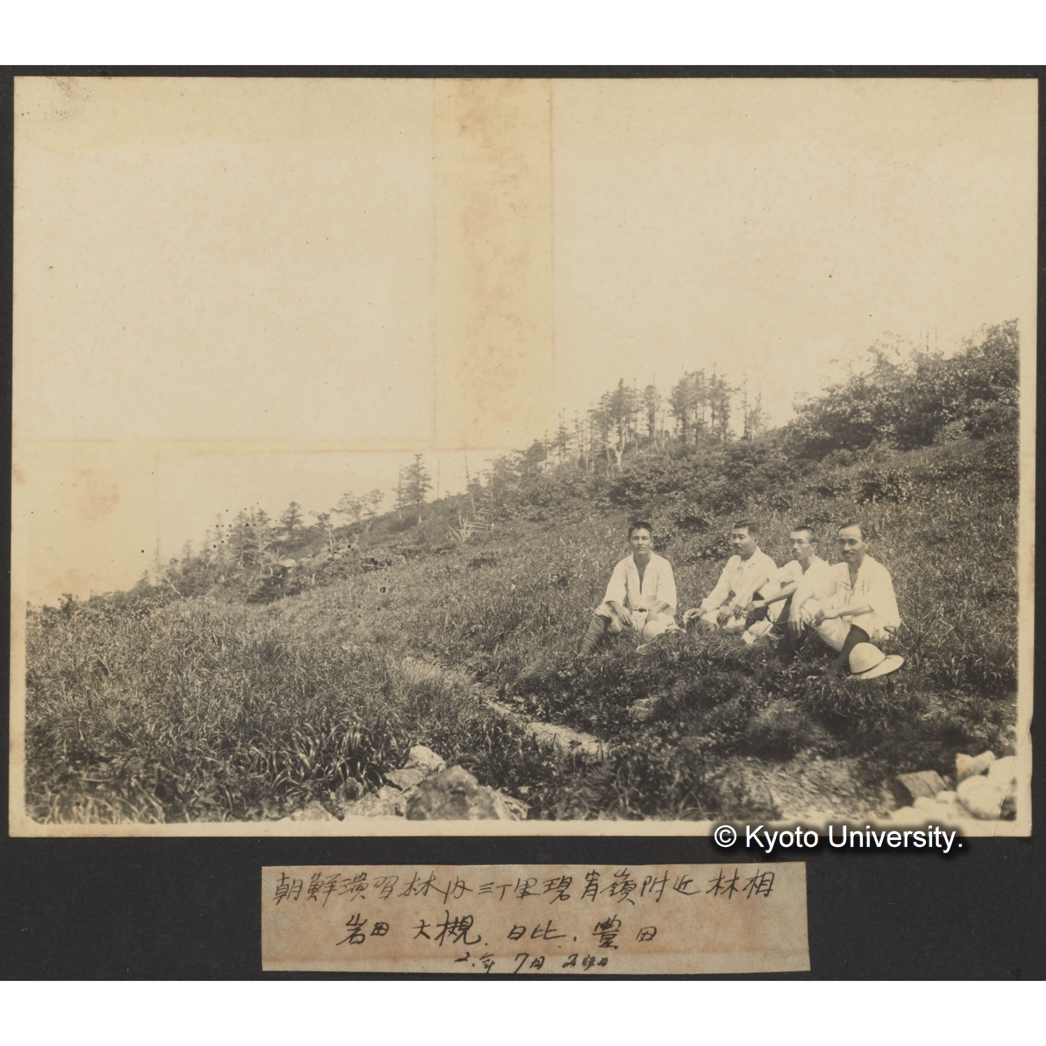朝鮮演習林内三丁里碧宵峰付近の林相 岩田、大槻、日比〔昌〕、豊田〔三郎〕 2年7月27日 (2)