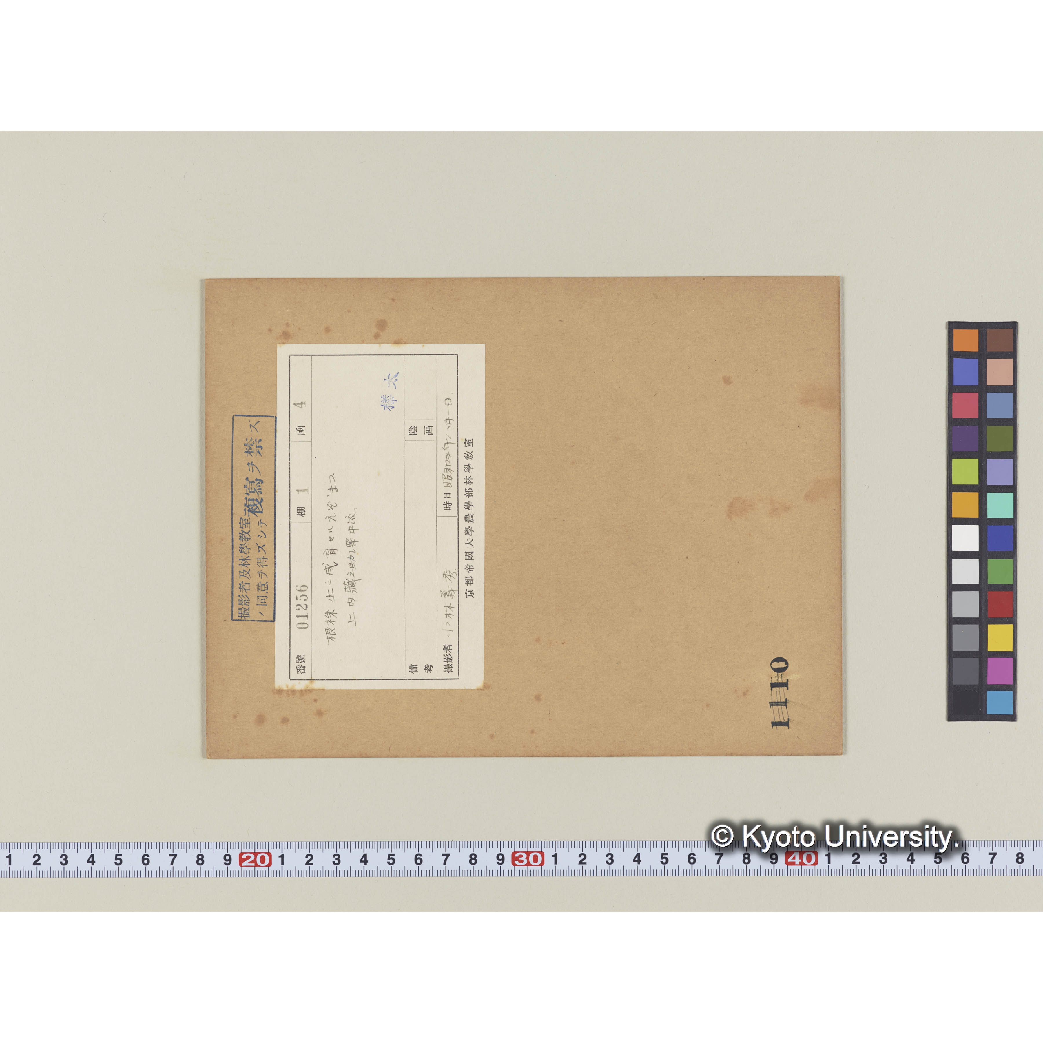 [国内演習林緑アルバム1957(緑色表紙)] PHOTO ALBUM (ラベル)「No.1 演習林本部 本部試験地 上賀茂育種試験地」., [1957年.]