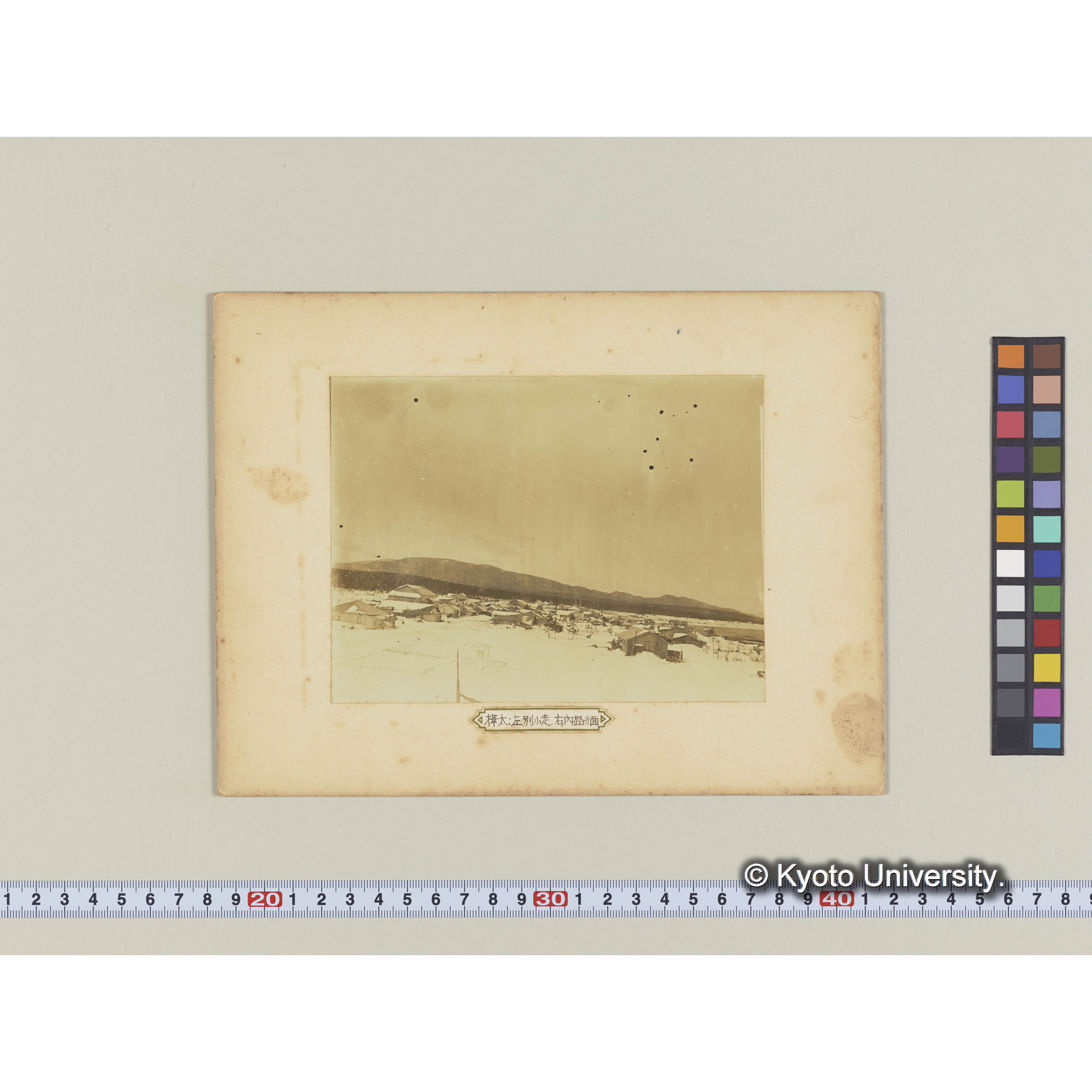 樺太演習林(古丹岸団地)事務所敷地より泊岸村を望む。左遠方は別小走、右方は内路方面の山岳也 (1)