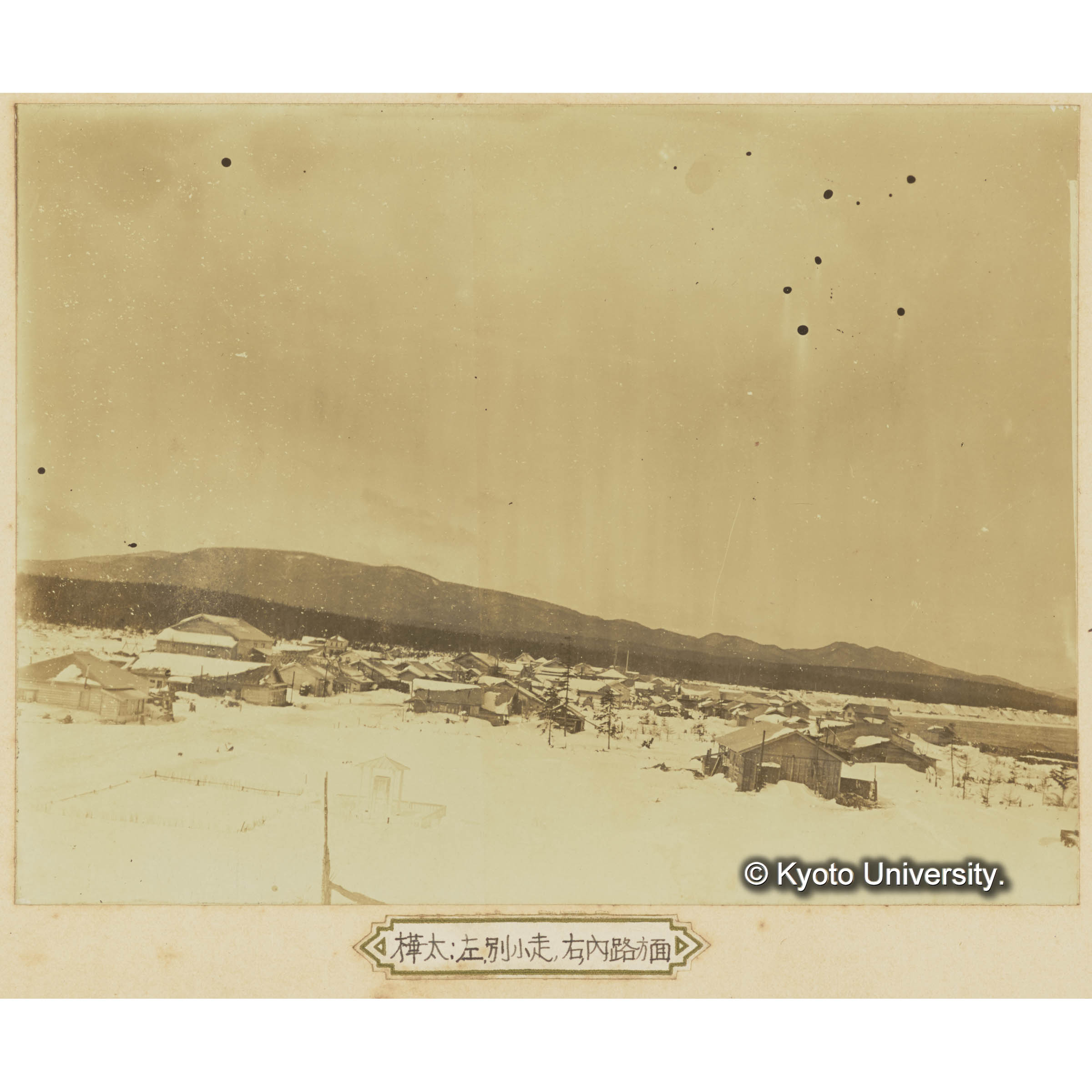樺太演習林(古丹岸団地)事務所敷地より泊岸村を望む。左遠方は別小走、右方は内路方面の山岳也 (3)