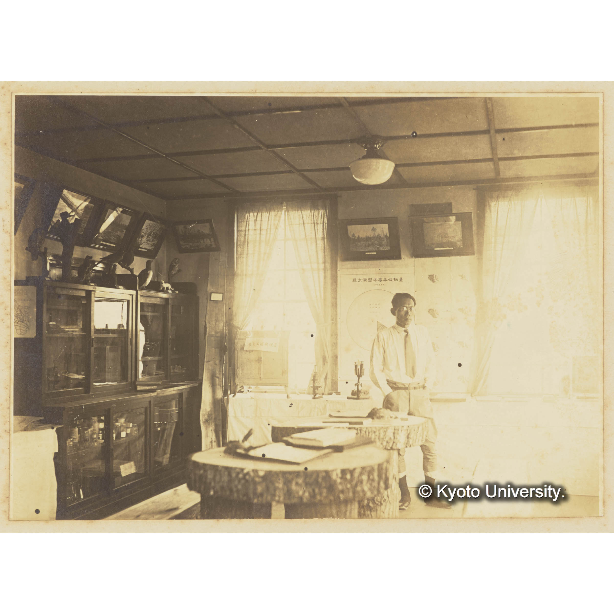 樺太演習林新築庁舎の内部と市河教授 (2)