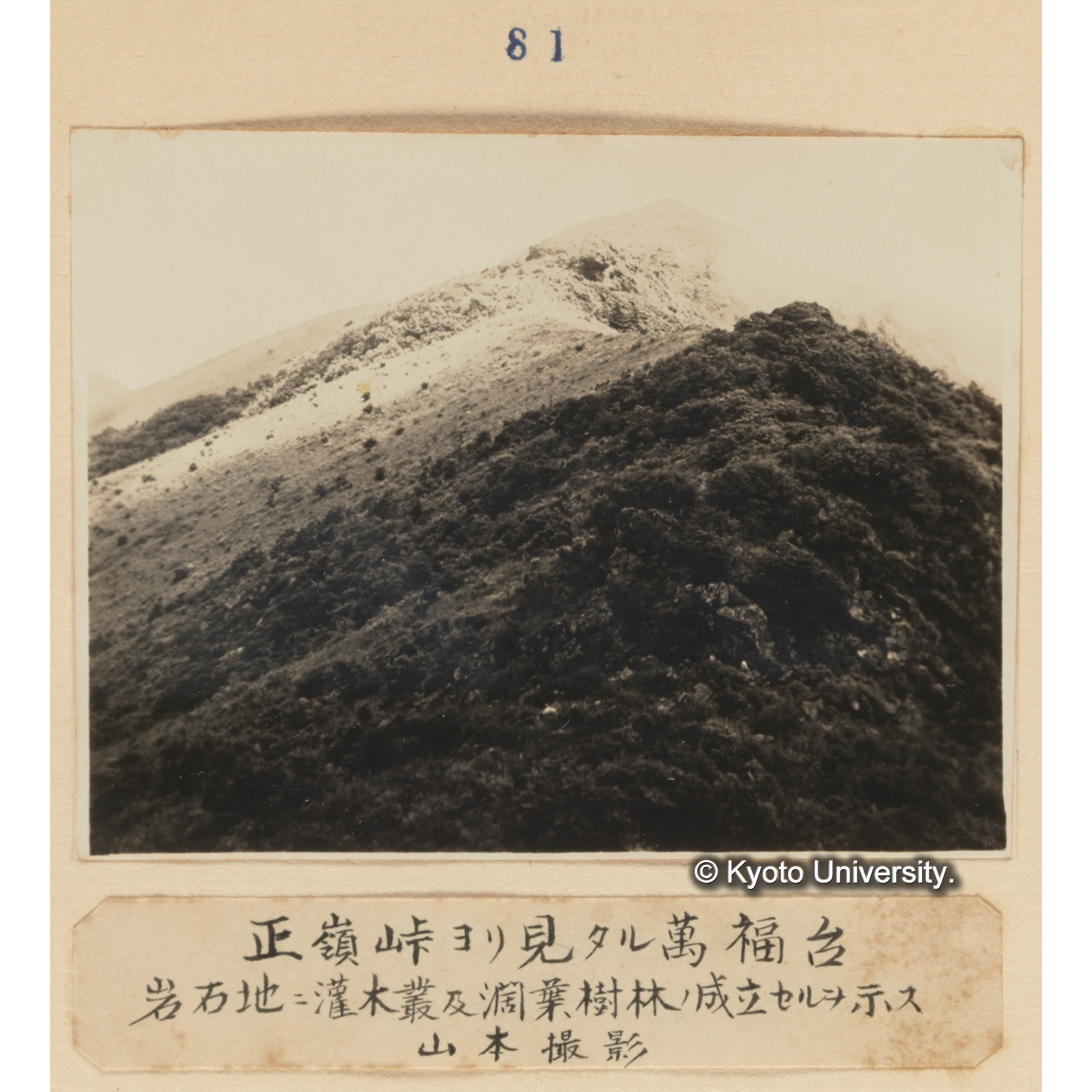 正嶺峠より見たる萬福台/岩石地に灌木叢及闊葉樹林の成立せるを示す 山本撮影 (2)
