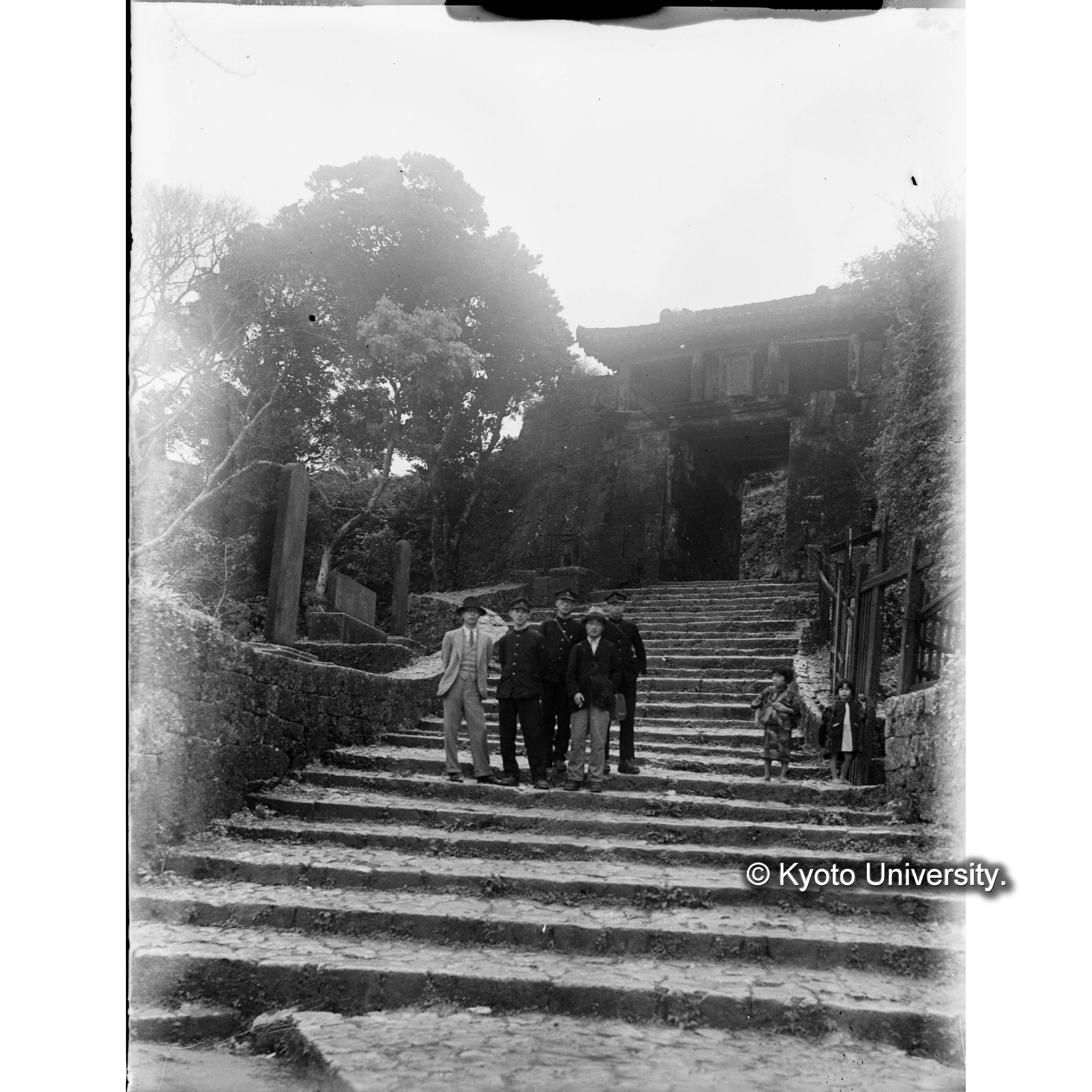 沖縄 首里城 瑞泉門における学生ら5人の記念写真 (1)