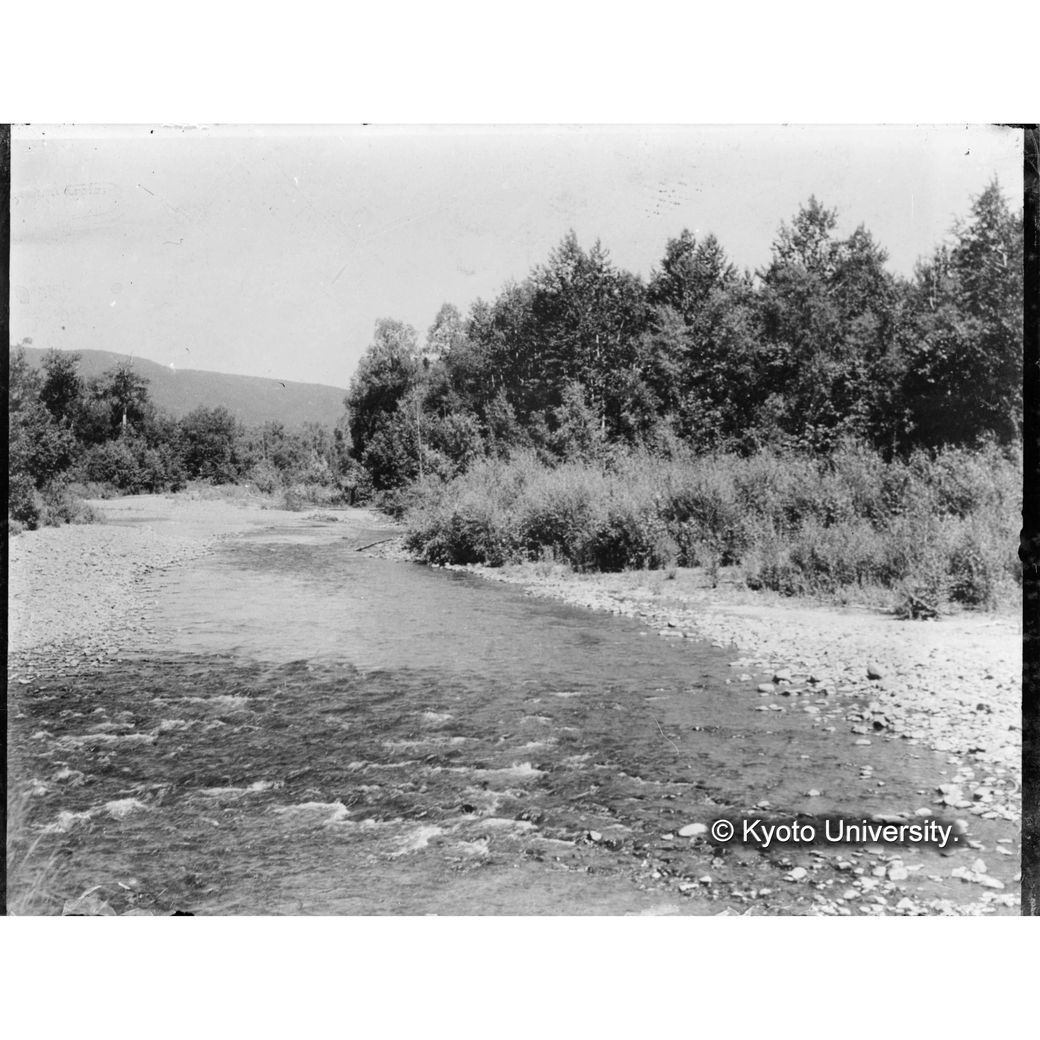 河岸に迫る洪積地の針葉樹林と沖積地の闊葉樹林 (1)