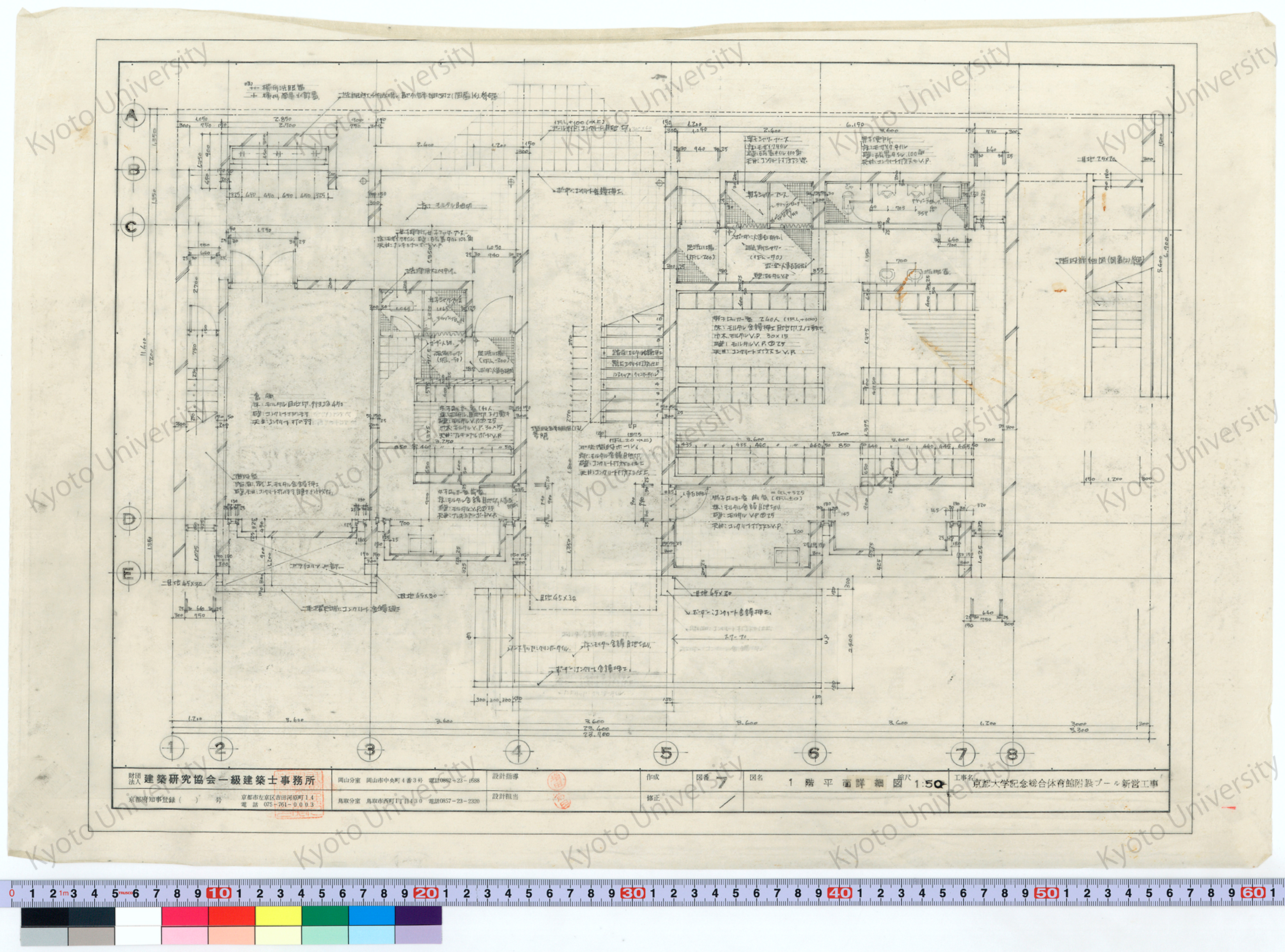 京都大学記念総合体育館附設プール新営工事_1階平面詳細図_1:50_7_増田(設計指導), 前田