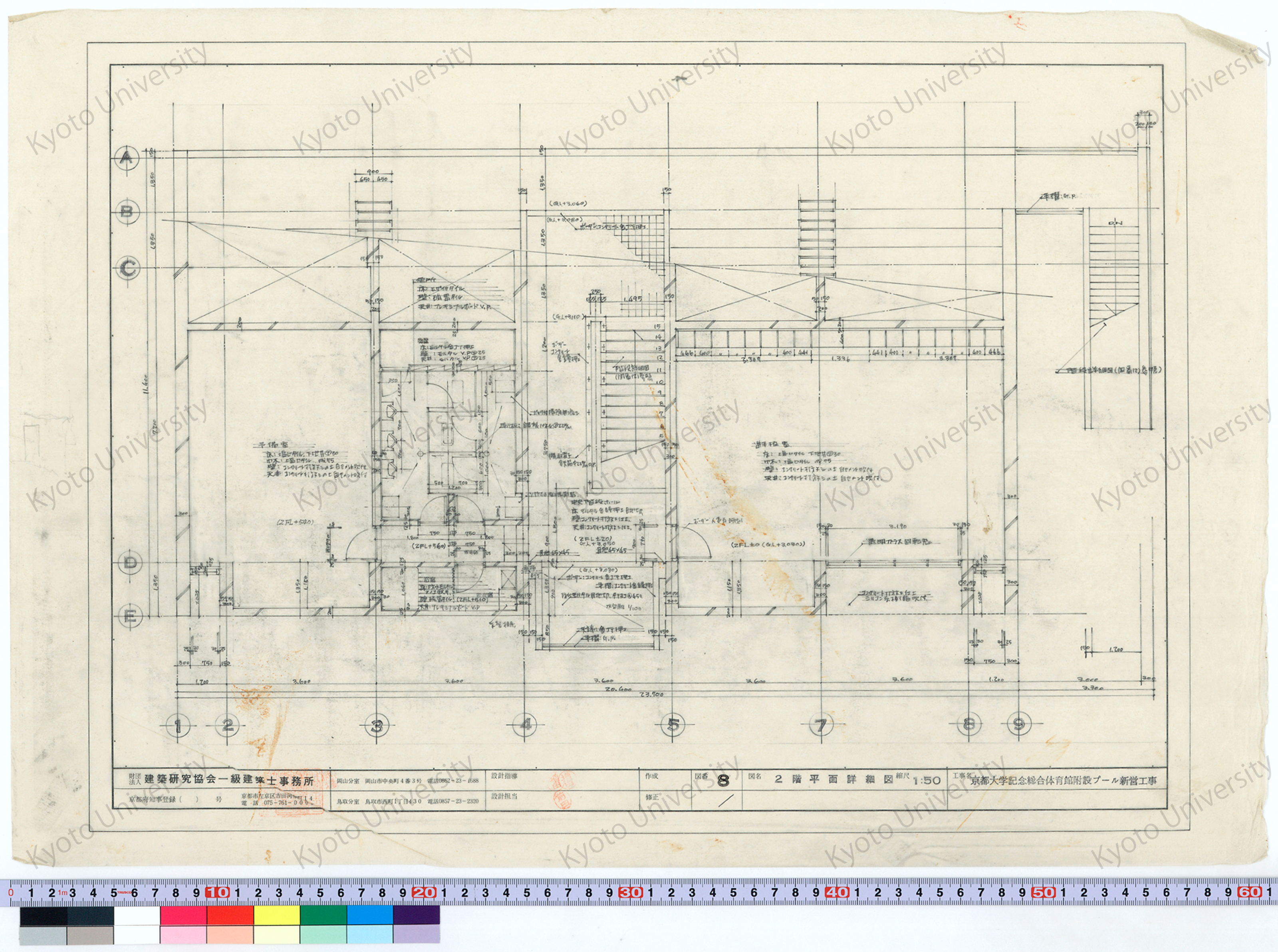 京都大学記念総合体育館附設プール新営工事_2階平面詳細図_1:50_8_増田(設計指導), 前田