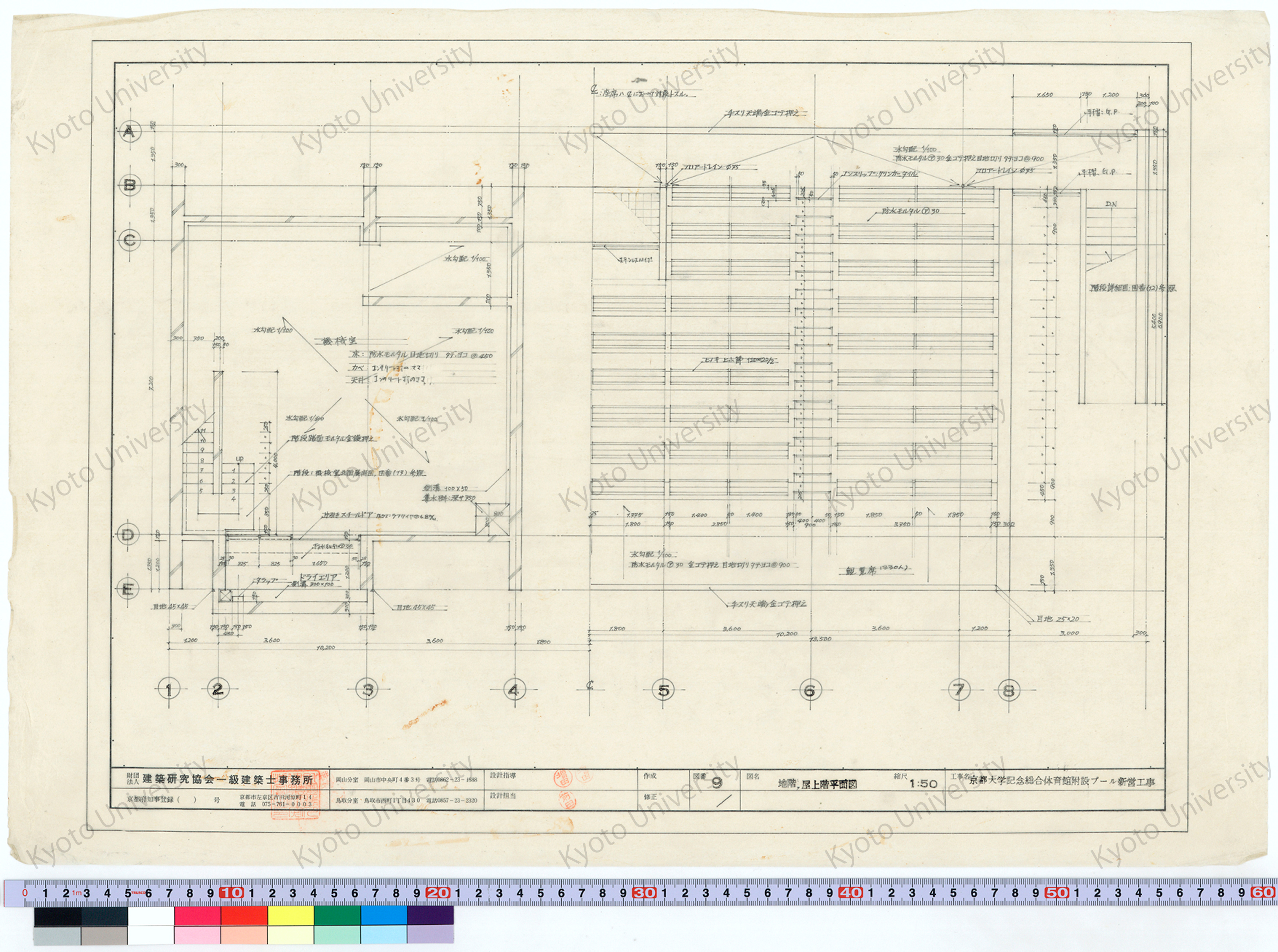 京都大学記念総合体育館附設プール新営工事_地階, 屋上階平面図_1:50_9_増田(設計指導), 前田 (1)