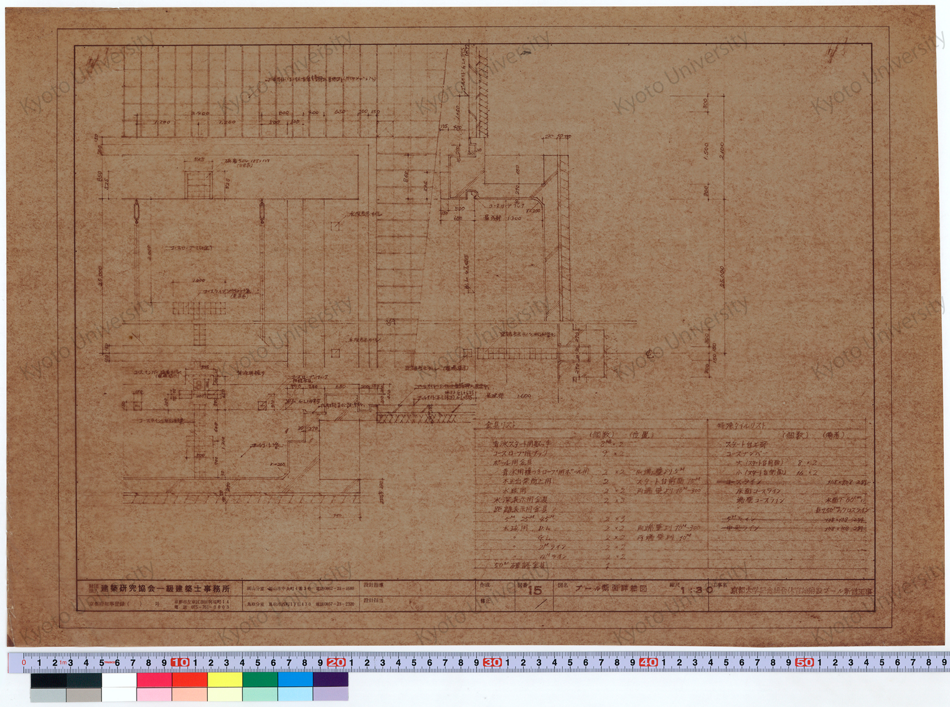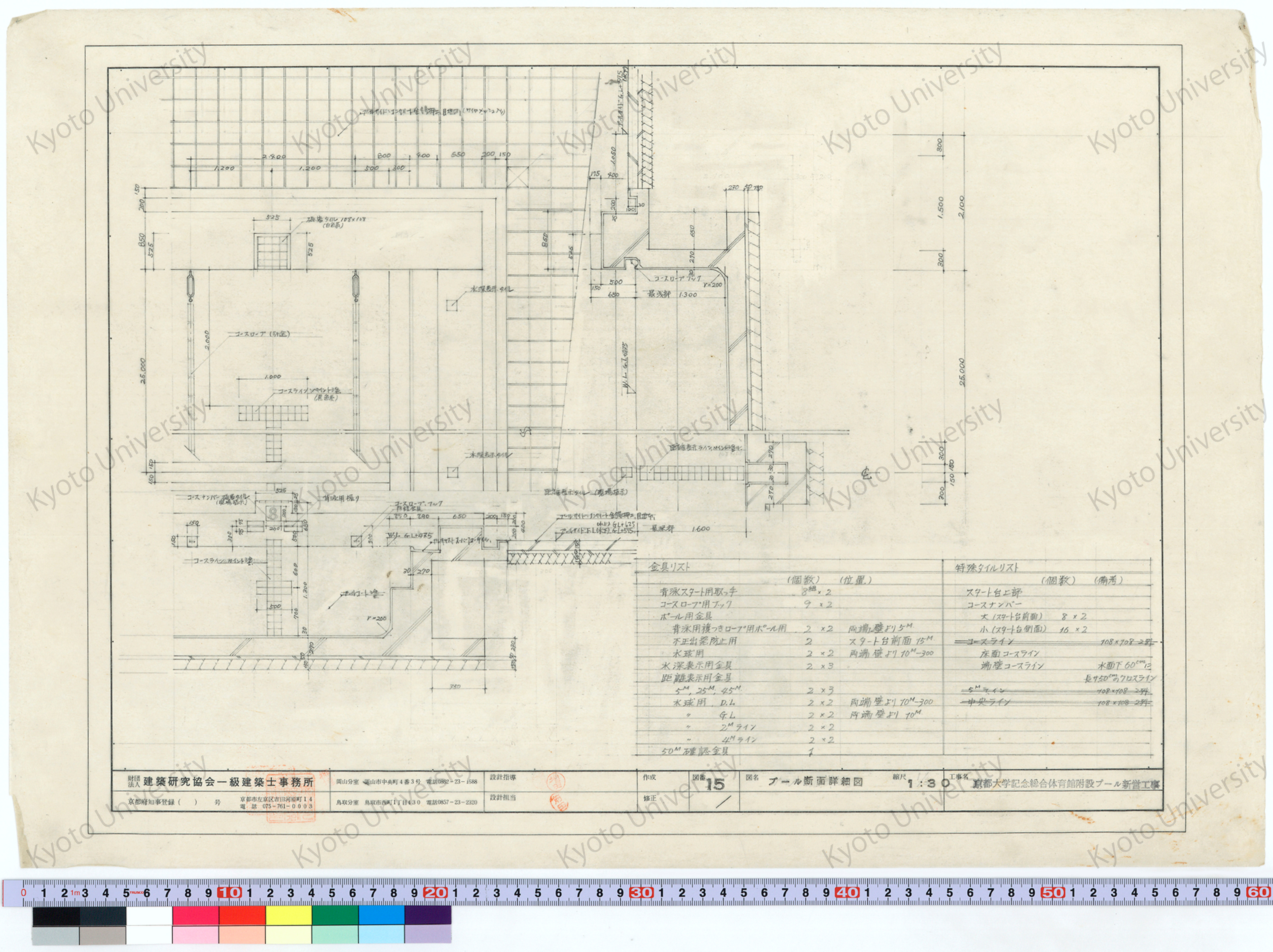 京都大学記念総合体育館附設プール新営工事_プール断面詳細図_1:30_15_増田(設計指導), 前田